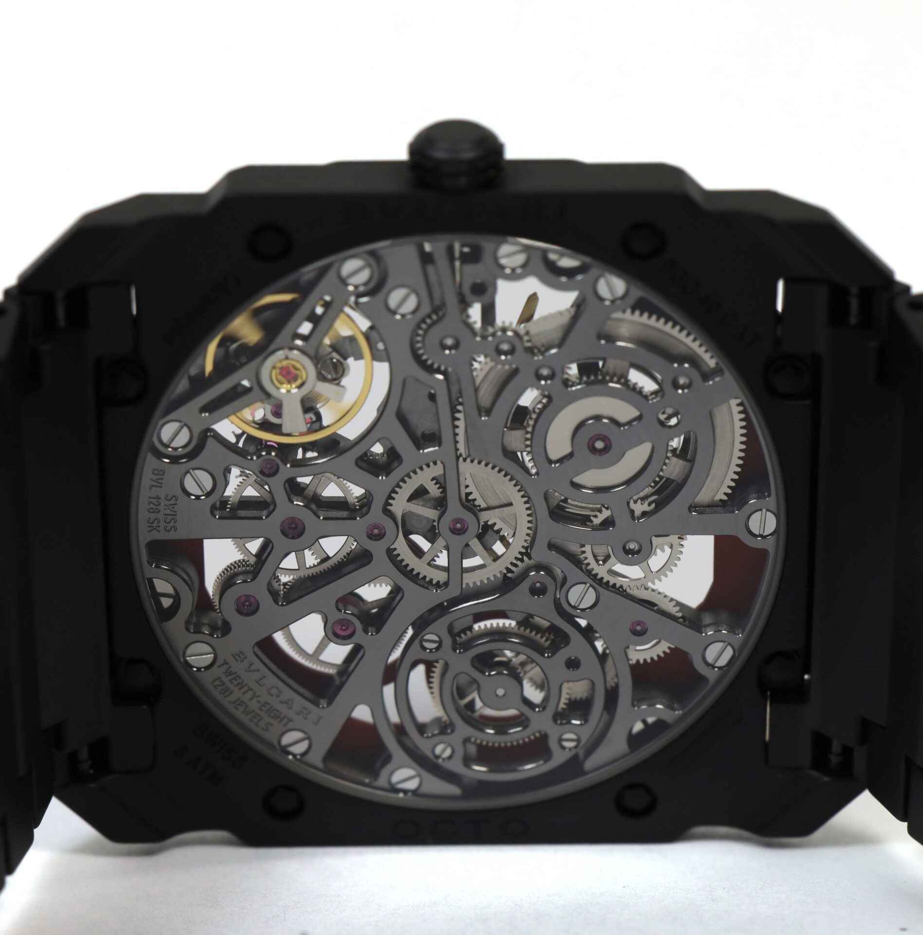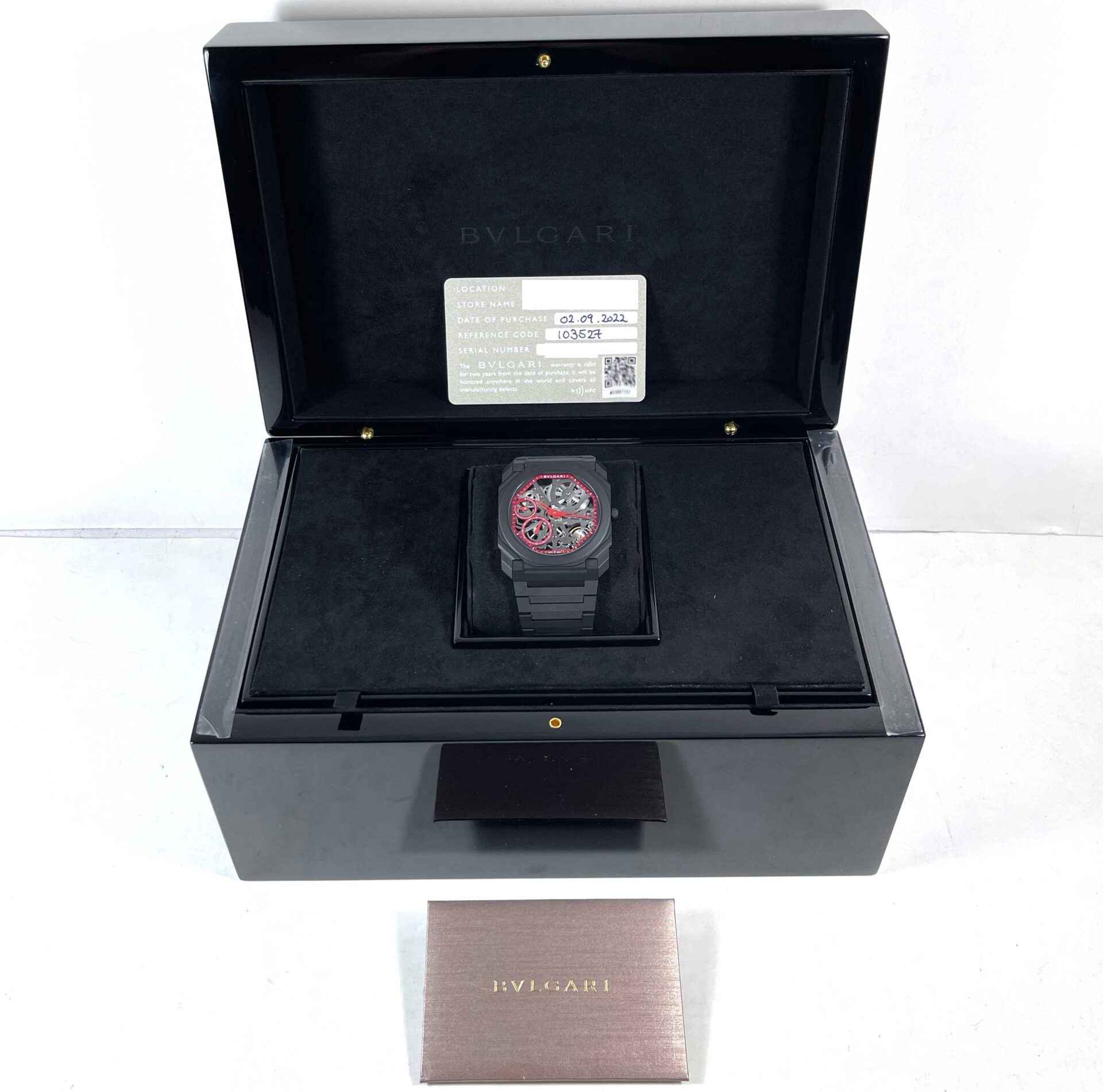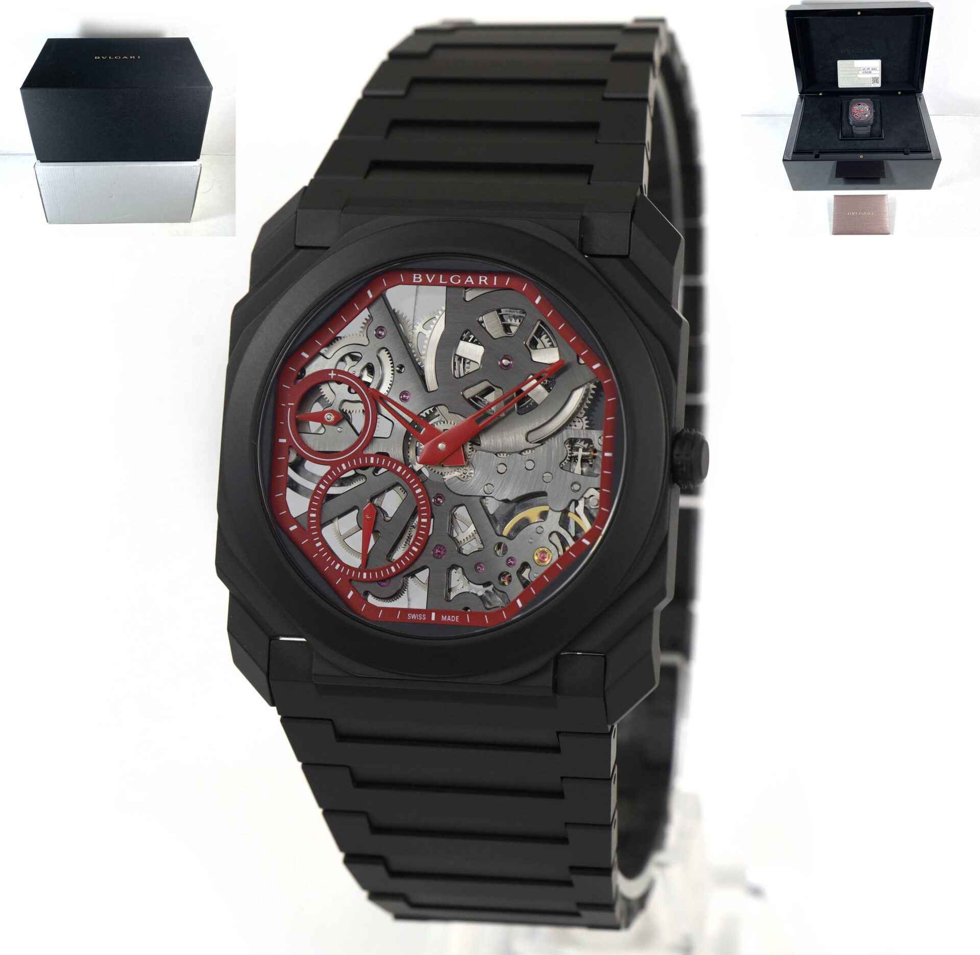 Read Morethis bulgari is new and comes with its box, bulgari microfiber cloth, and warranty card dated february 9th, 2022. This watch features an ultra-thin ceramic case/bracelet and surrounds a skeleton dial. This bulgari wears extremely light and comfortable on the wrist! this watch is in stock and available to ship immediately!