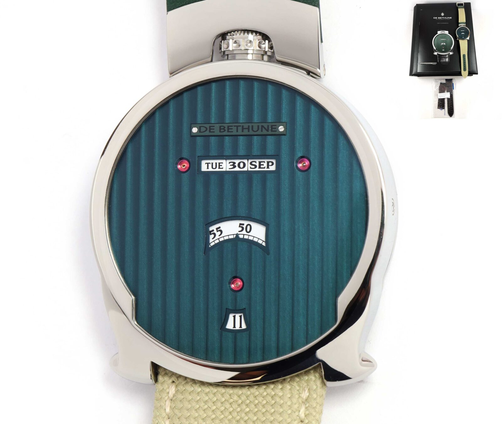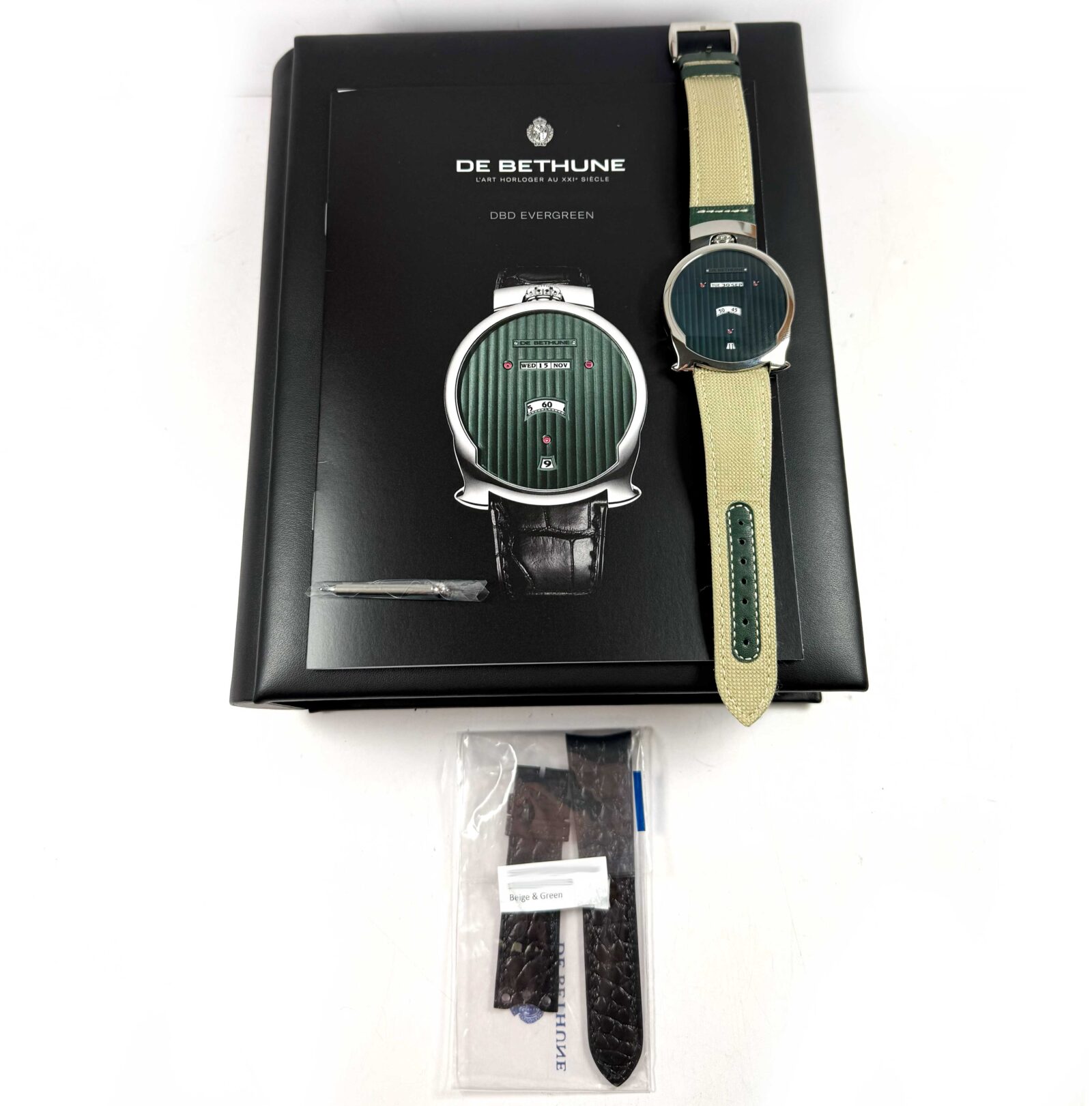 Read Morethis de bethune watch is new and comes with its box, booklet, watch tool, one additional strap, and warranty paper. This watch is part of a limited edition with only 20 total prices produced in this model. This watch is in stock and available to ship immediately!