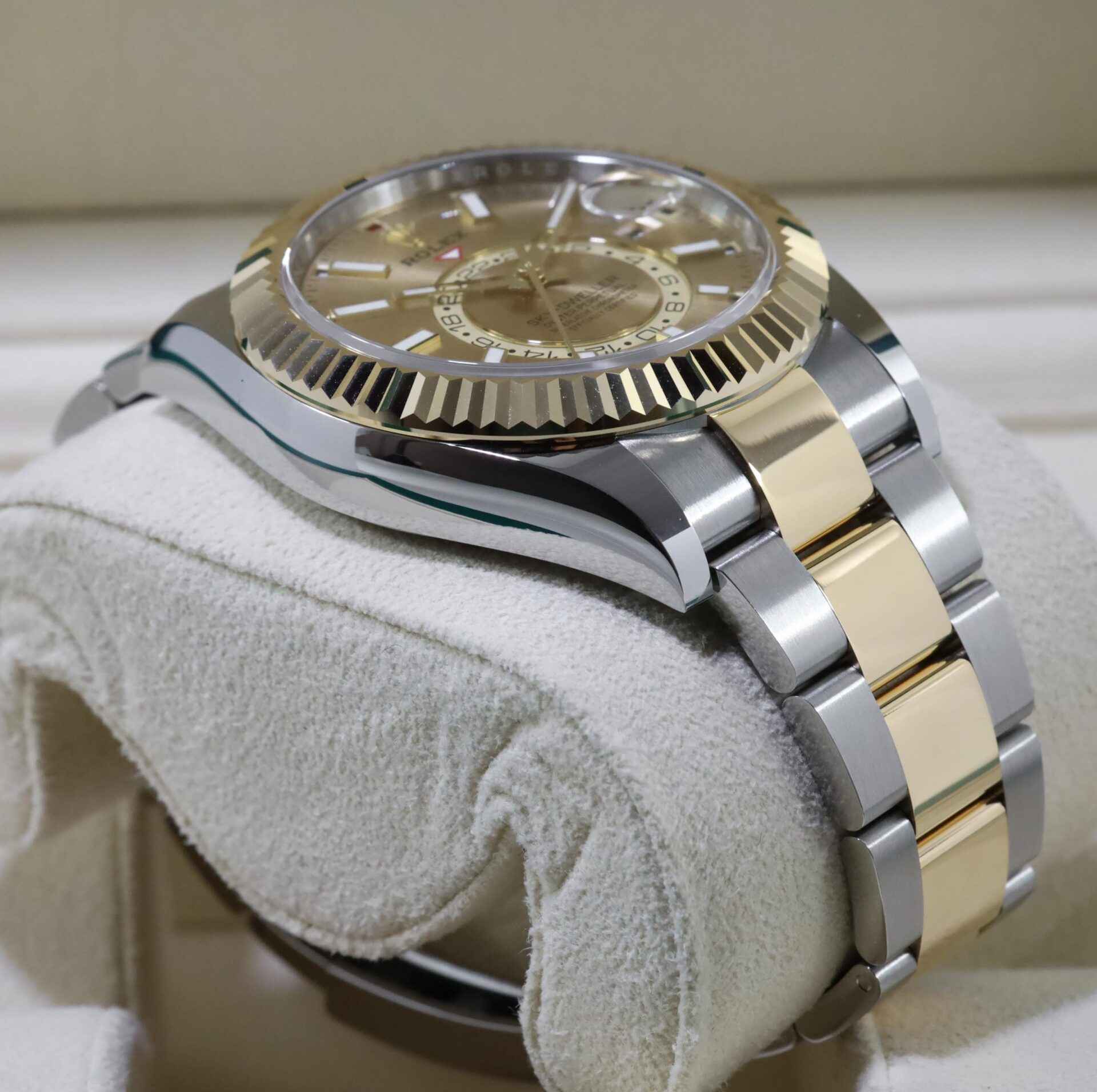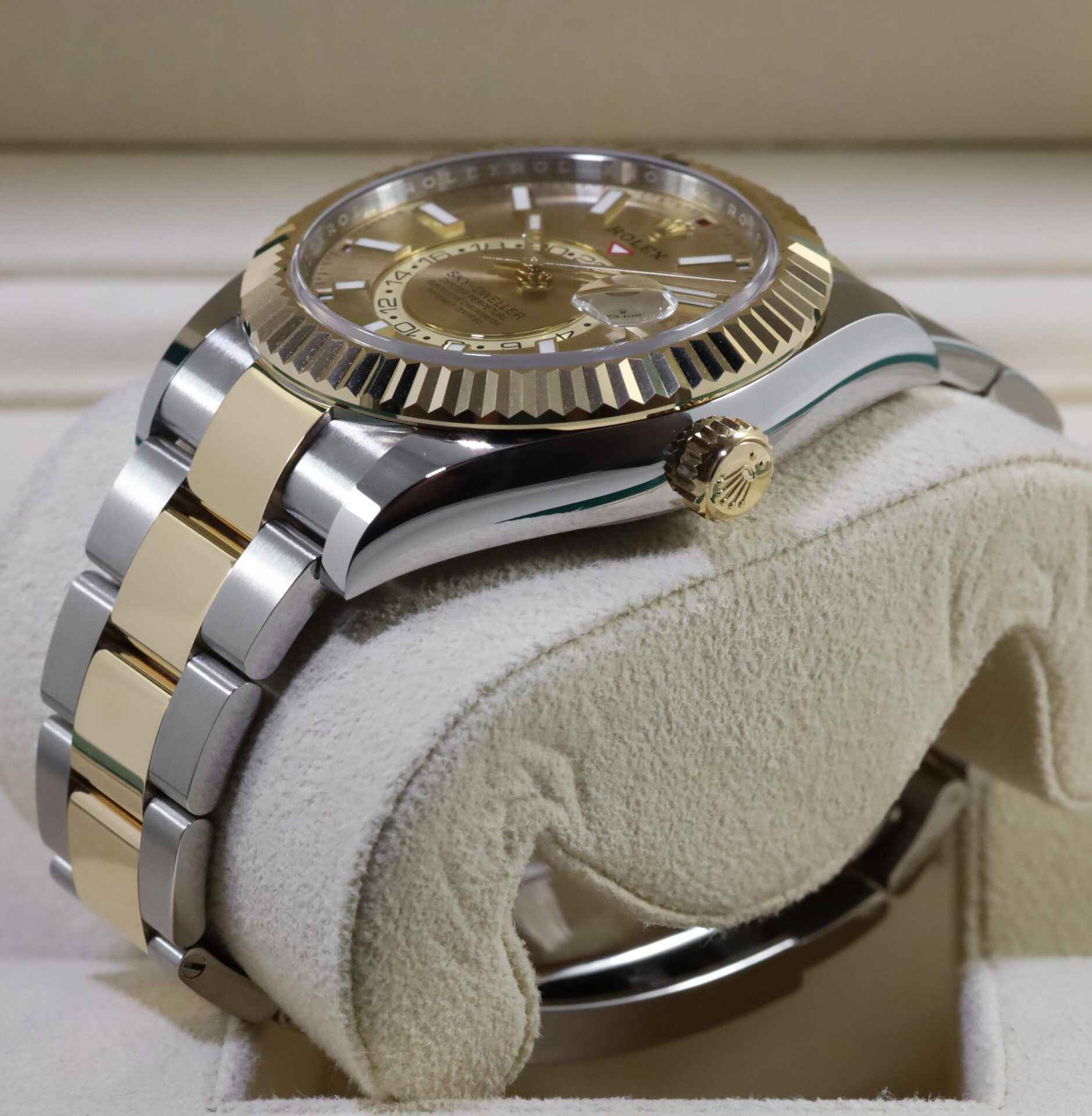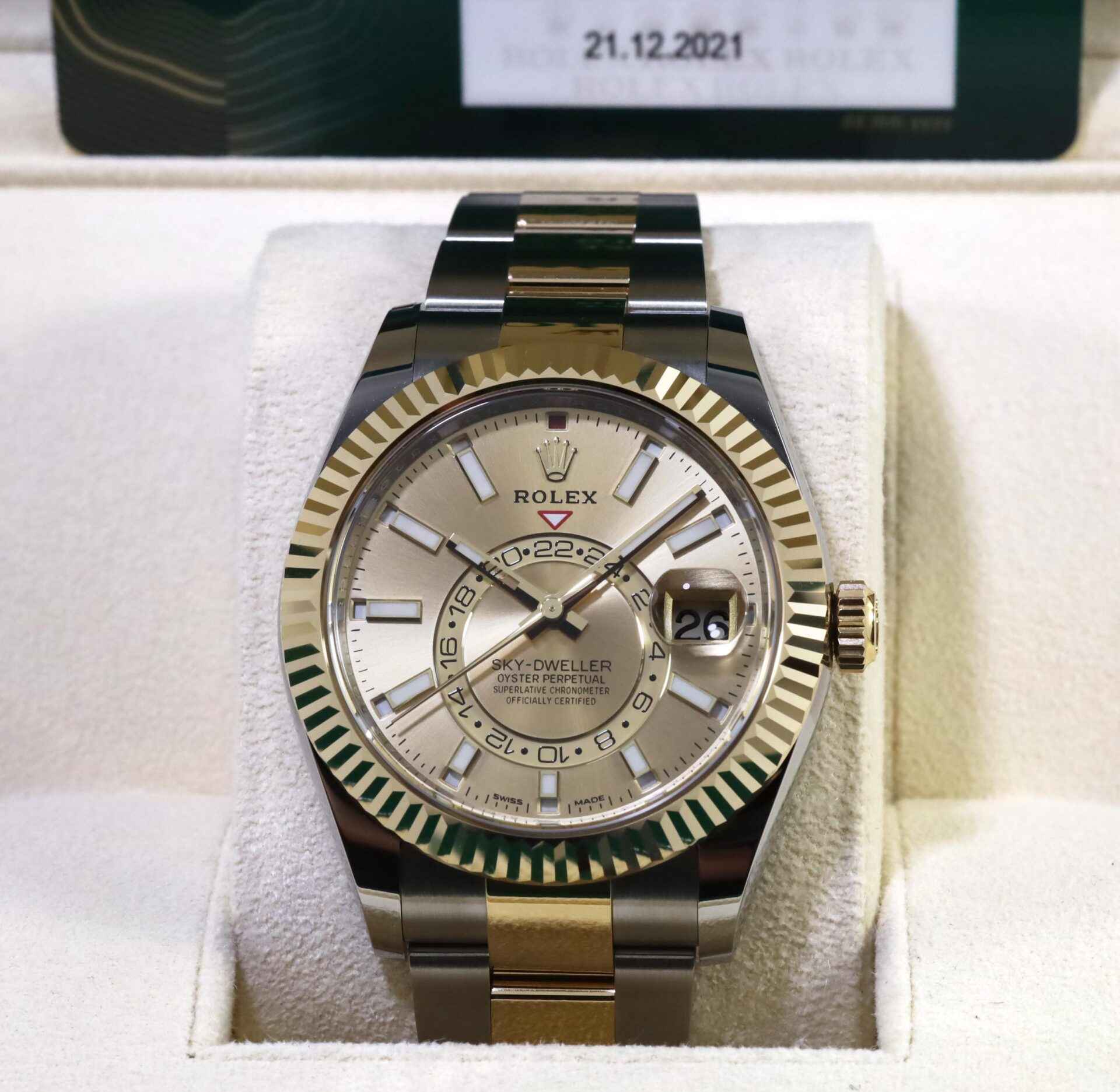 This Rolex is new and comes with box, papers, hang tags, and warranty card dated December 21st, 2021. This watch is in stock and available to ship immediately!