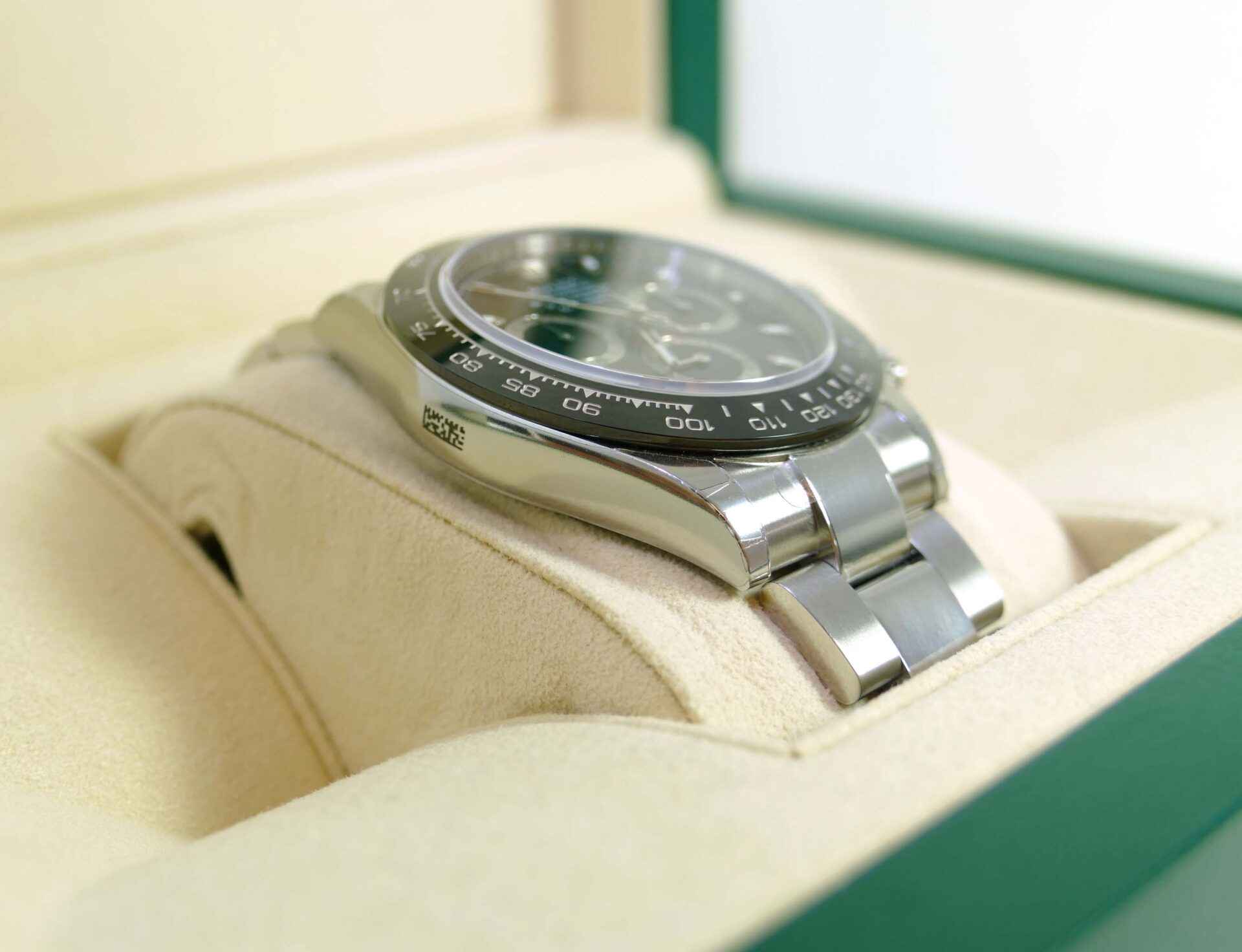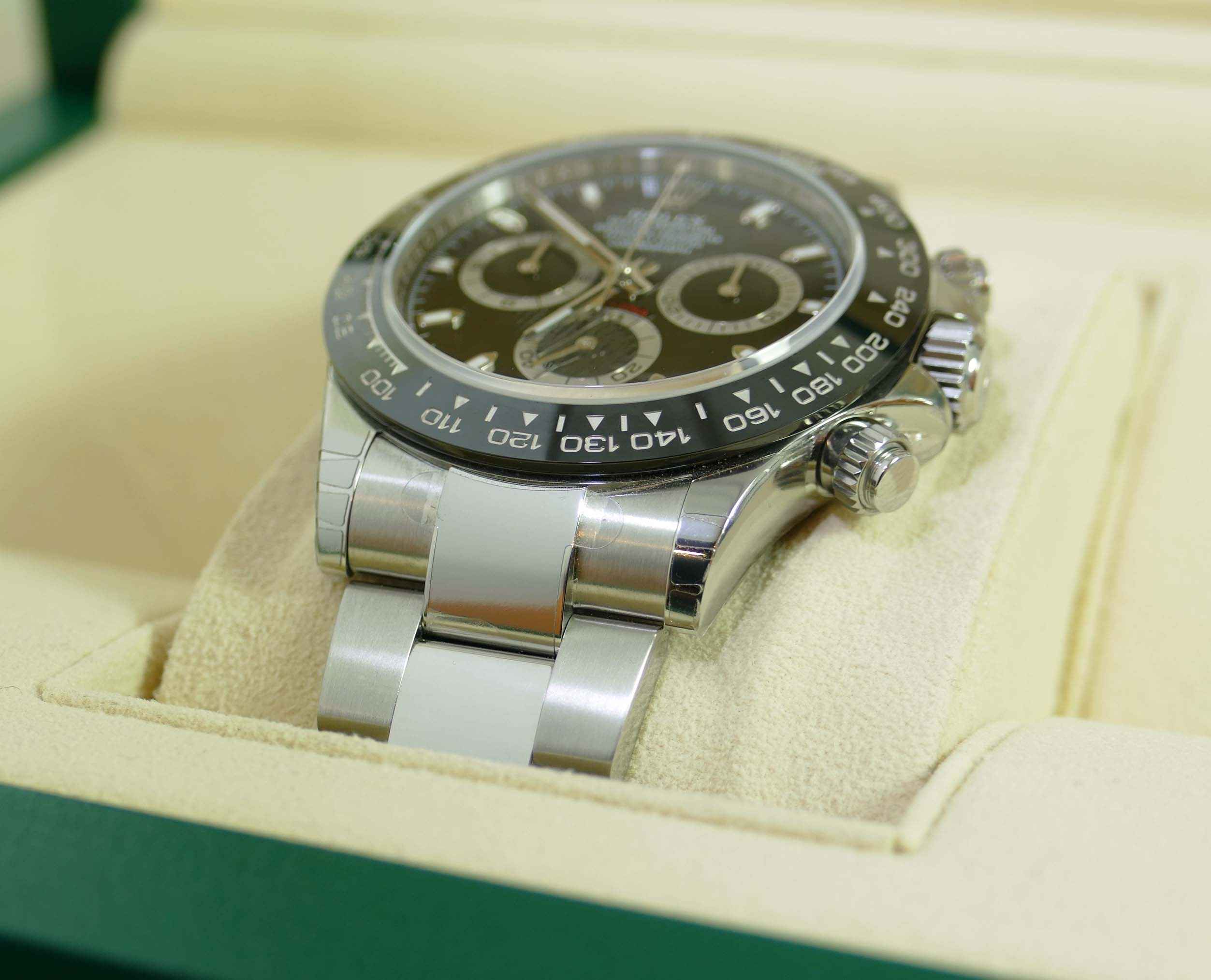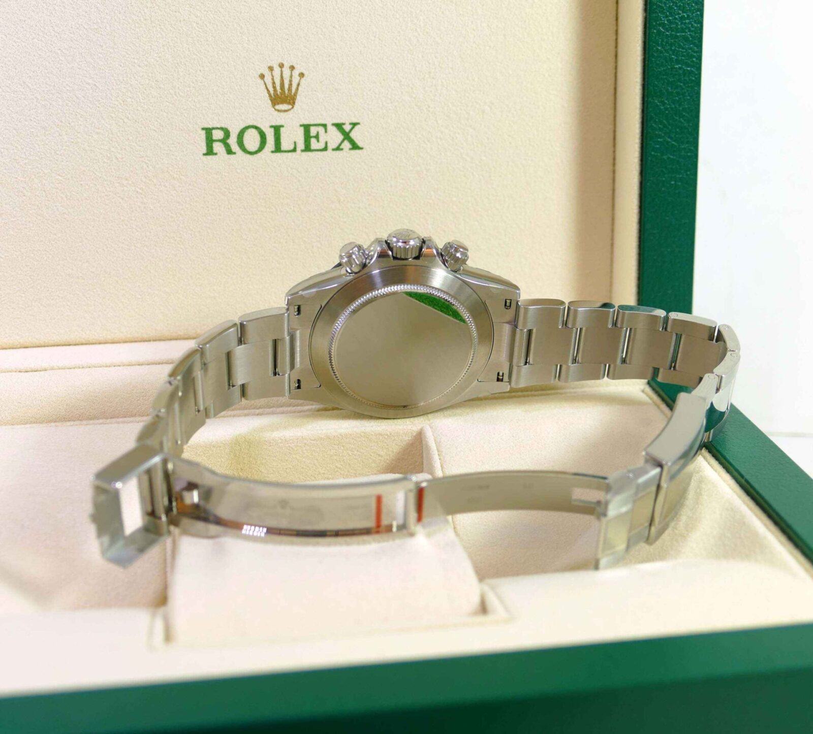 This watch is 100% new and unworn, and has all of its original stickers never removed from the watch. The warranty card is undated and unnamed, we will have to fill this information out upon the sale.
