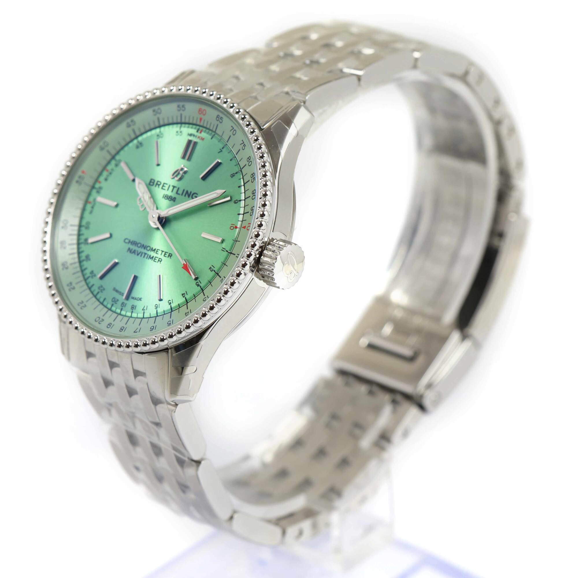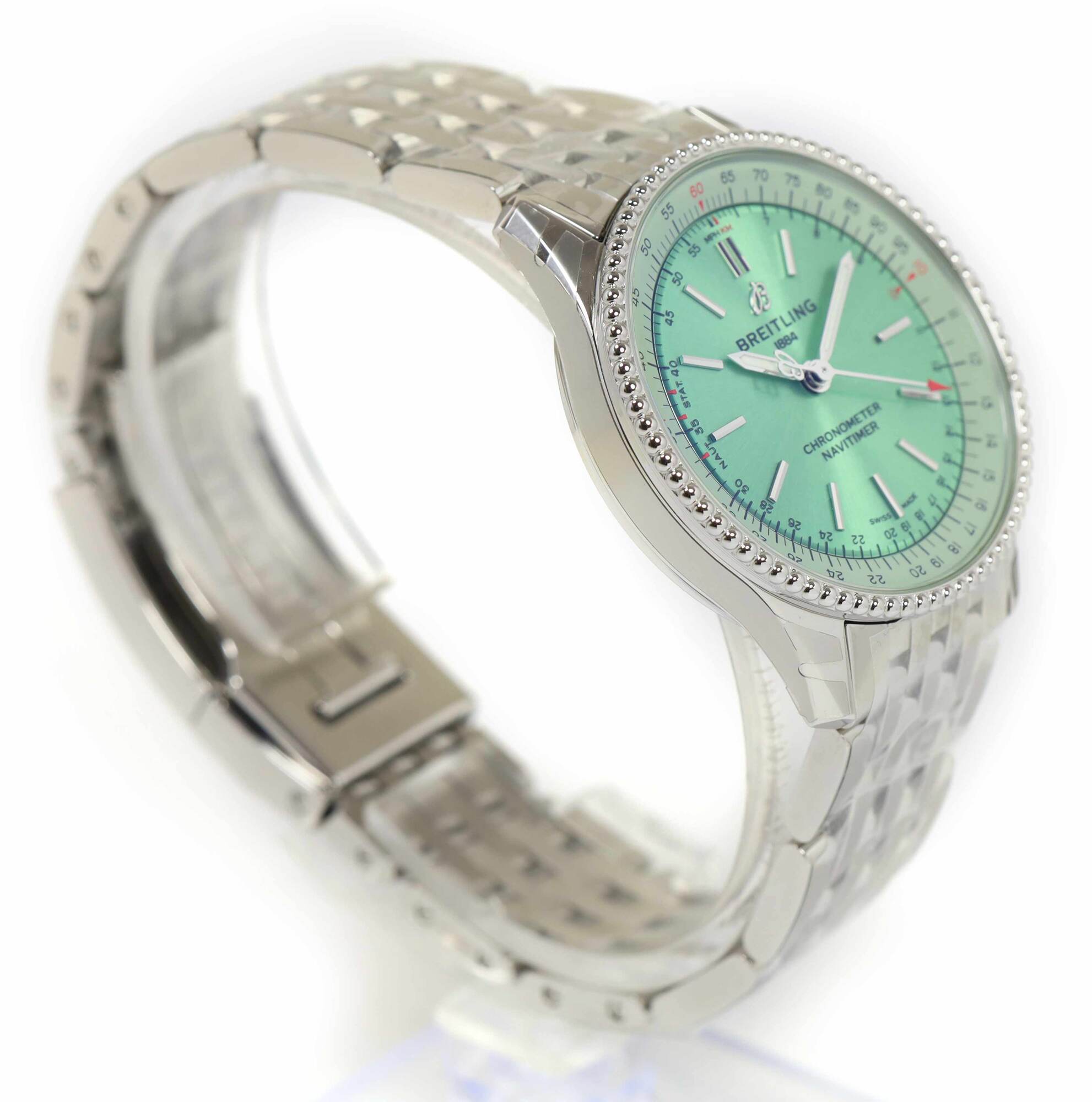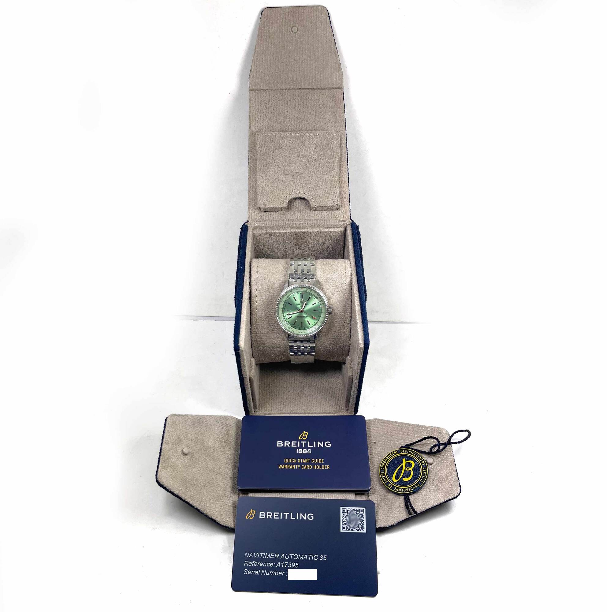 THIS BREITLING IS NEW WITH STICKERS AND COMES WITH ITS BOX, BOOKLET, HANG TAG, AND WARRANTY CARD AS SHOWN IN THE PICTURES ATTACHED. THIS WATCH IS IN STOCK AND AVAILABLE TO SHIP IMMEDIATELY!