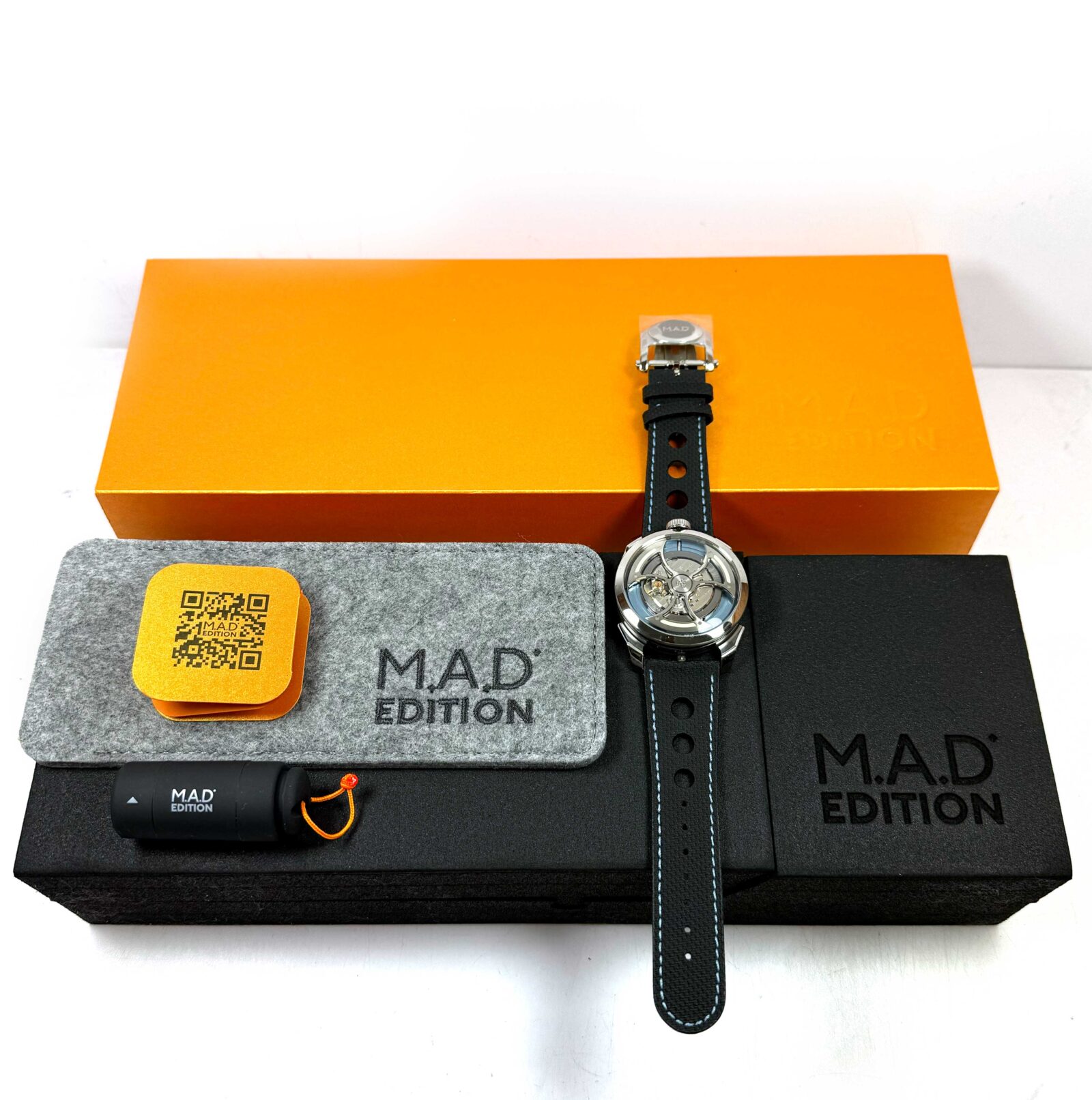 this mb&f watch is new with some stickers attached and comes with its box and qr code tag as shown in the pictures attached. This watch is in stock and available to ship immediately!