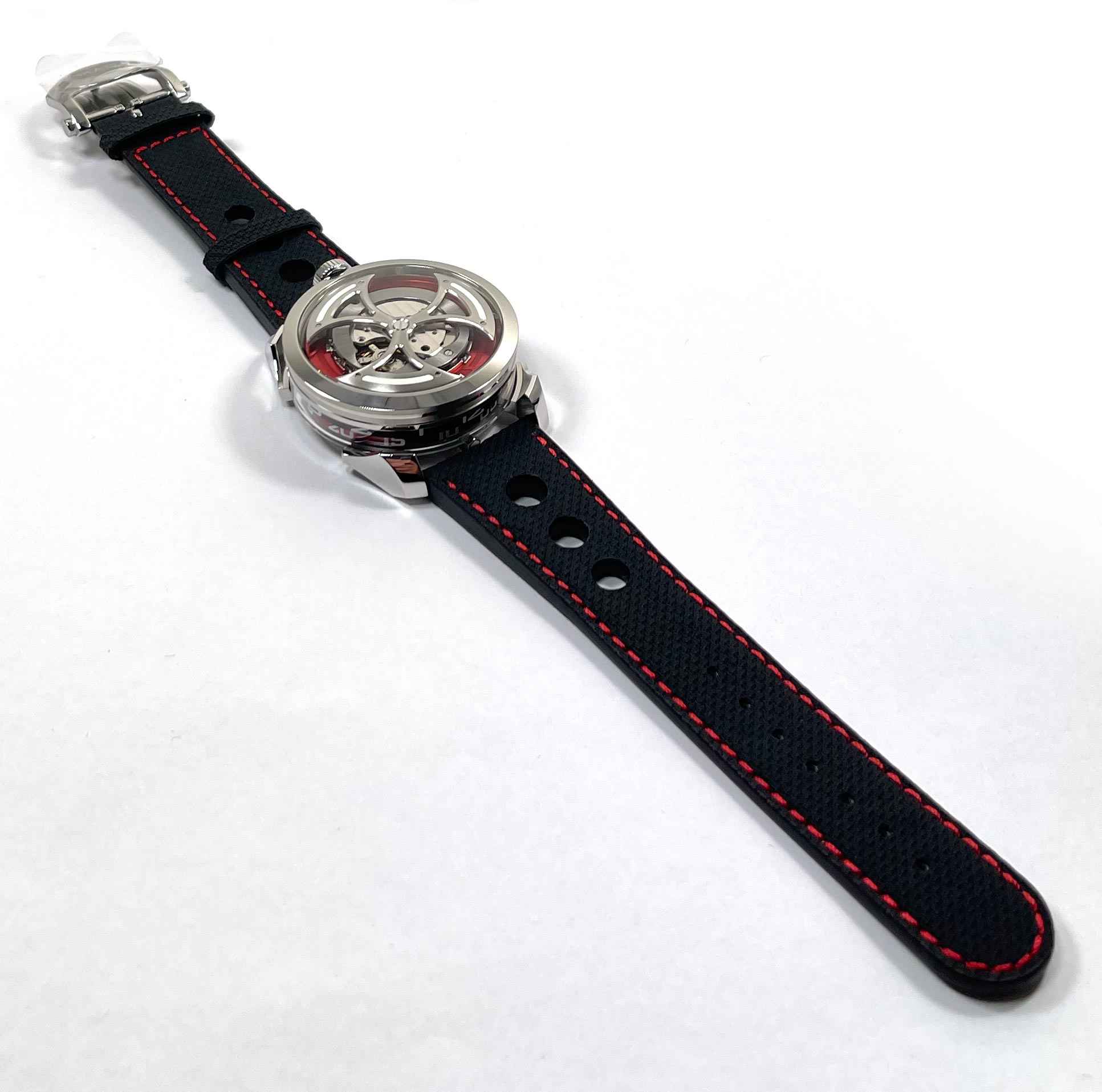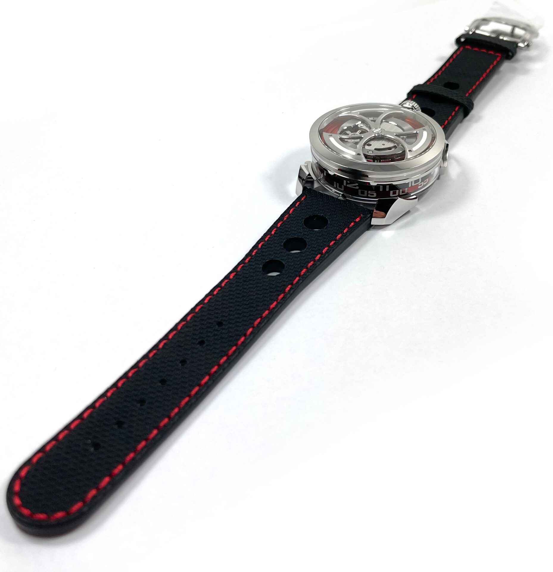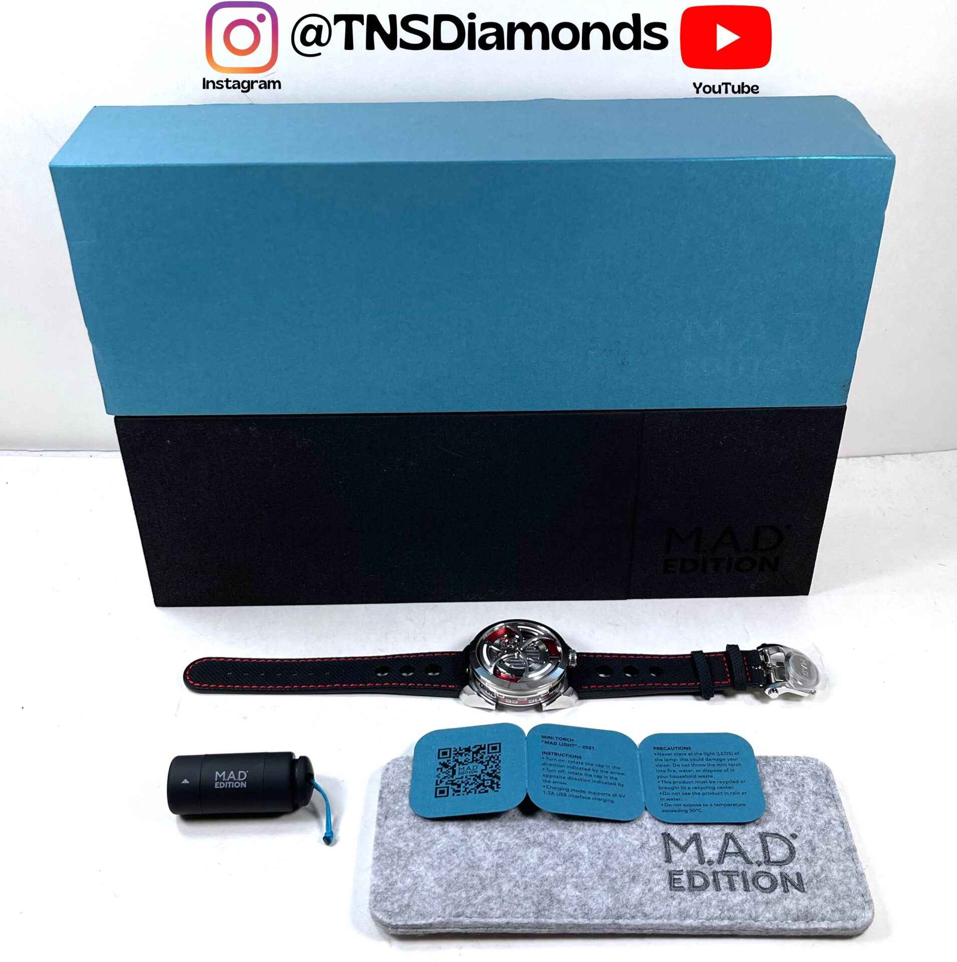 This MB&F M.A.D 1 watch is new with stickers as shown in the pictures attached. This watch comes with its box, travel pouch, and Mini Torch Bluelight. This watch is in stock and available to ship immediately! <...