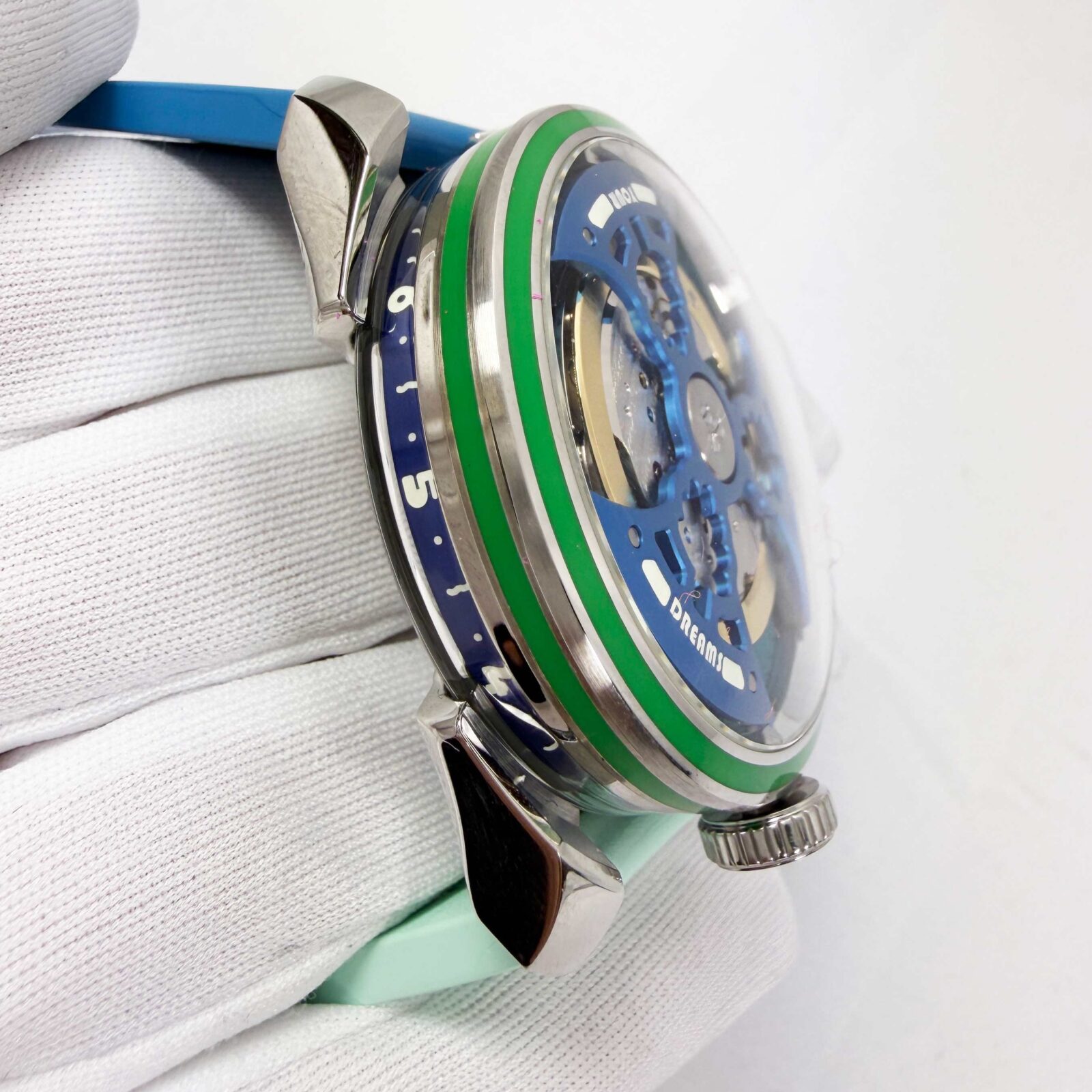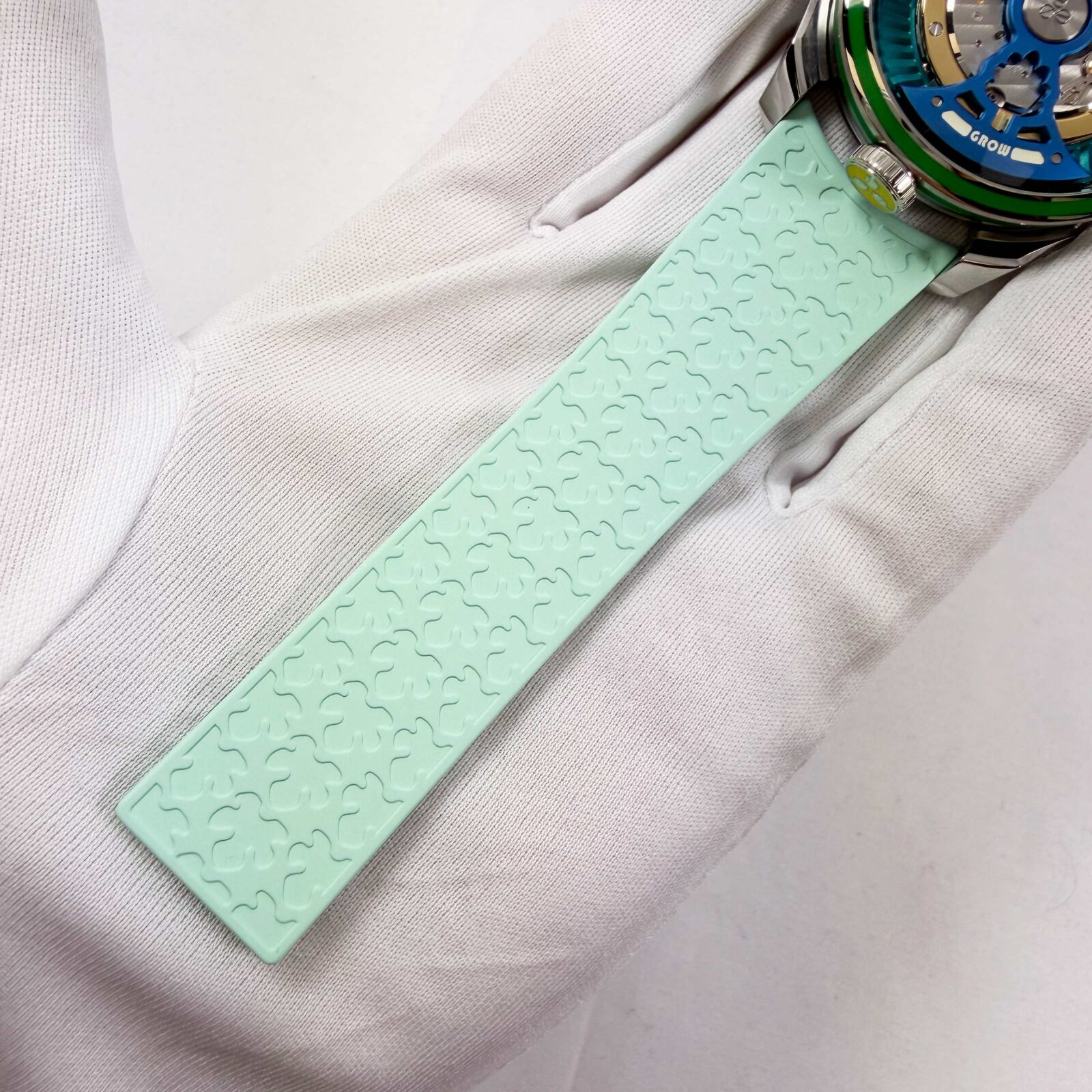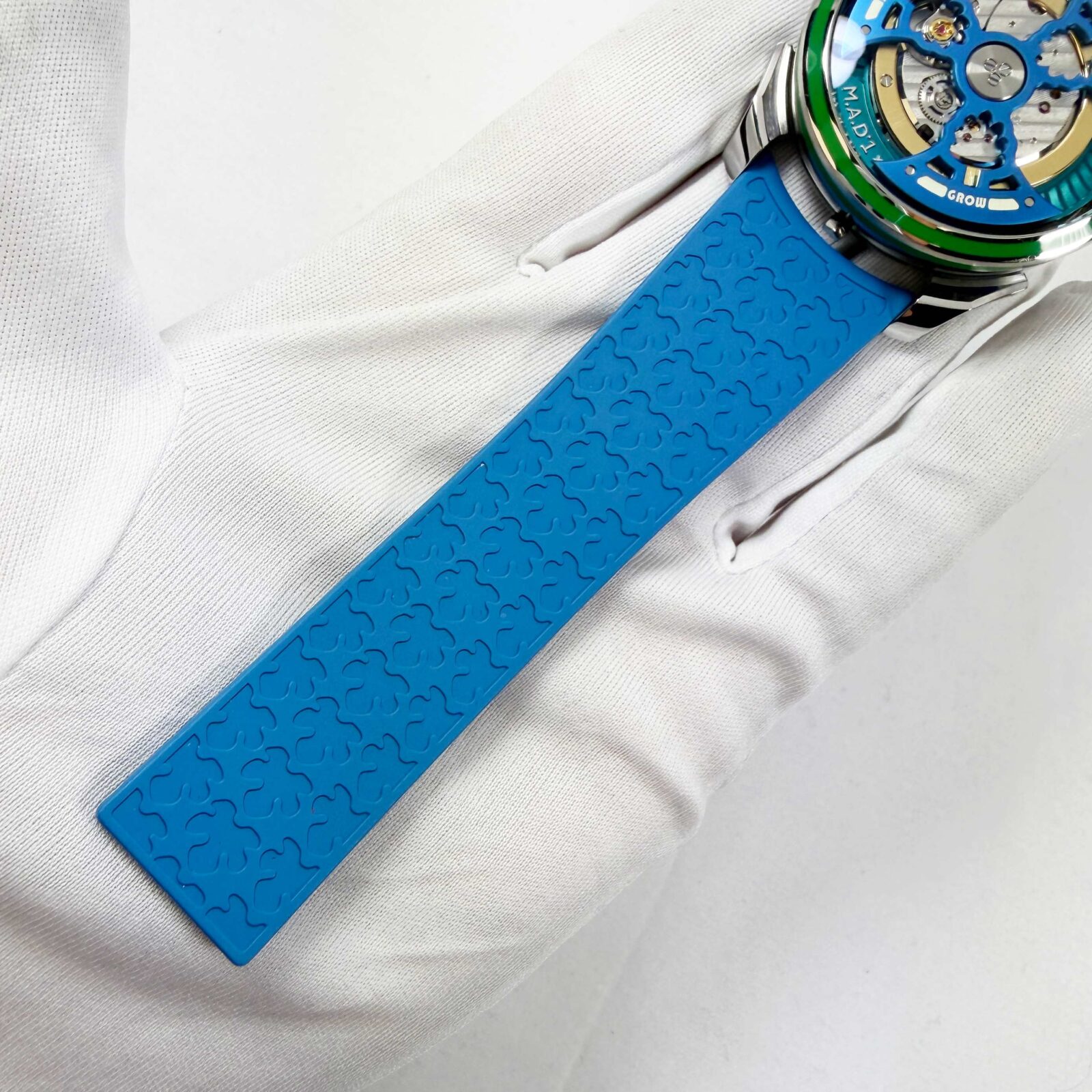 this mb&f watch is new and comes with its box, qr code tag, one white rubber strap/clasp, and watch accessories as shown in the pictures attached. This watch is in stock and ready to ship immediately!