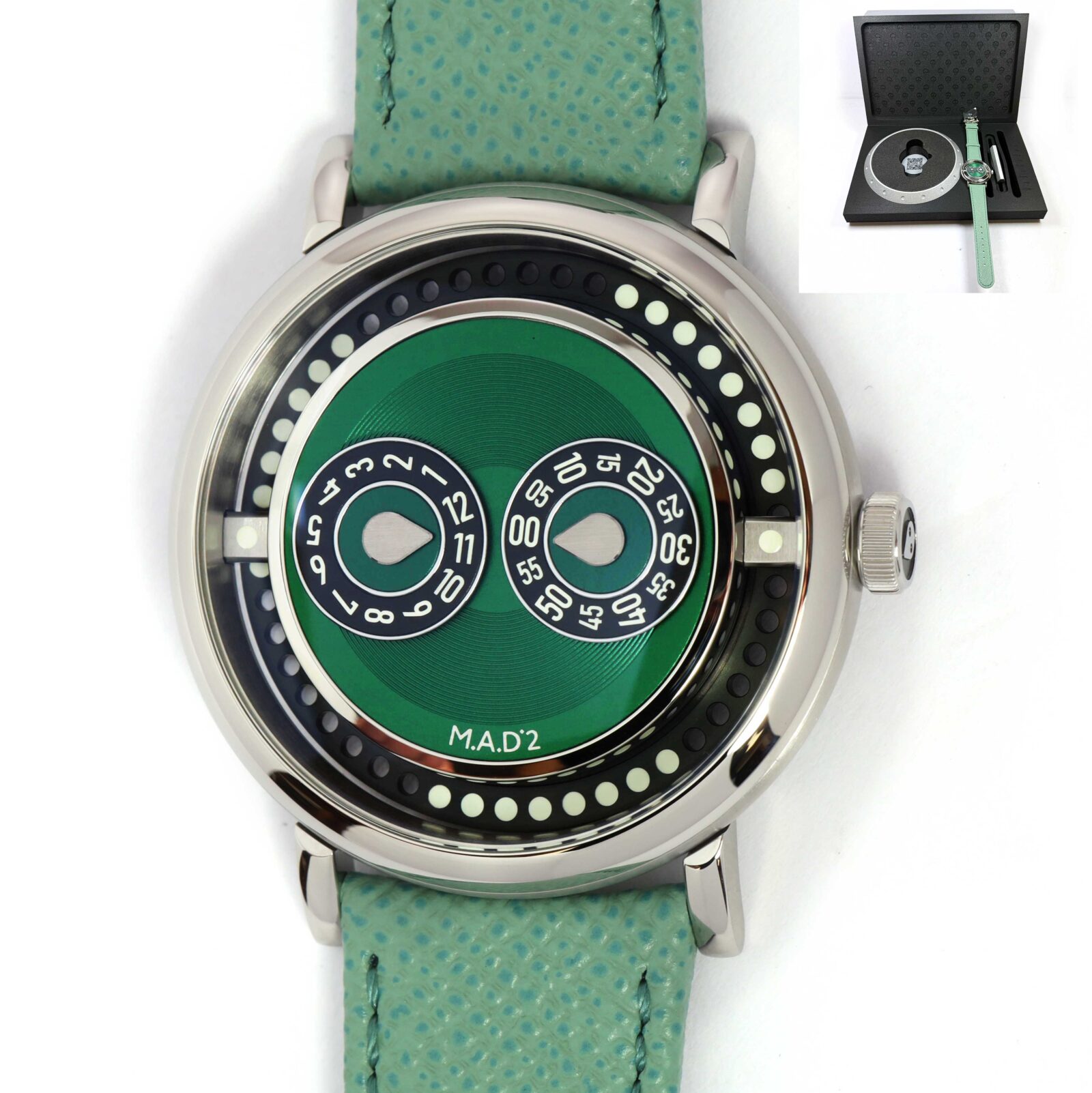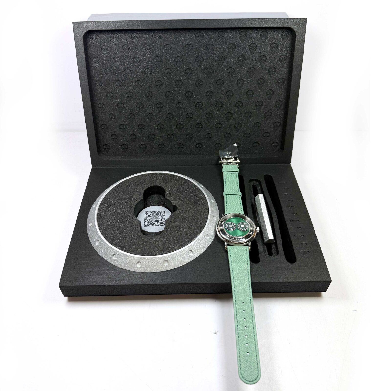 This MB&F watch is new and comes with its box and QR tag as shown in the pictures attached. This watch is in stock and available to ship immediately!