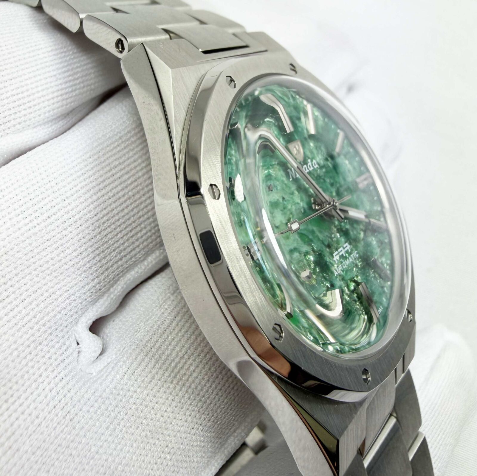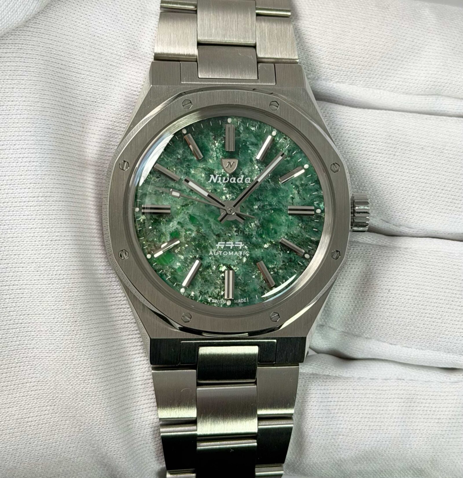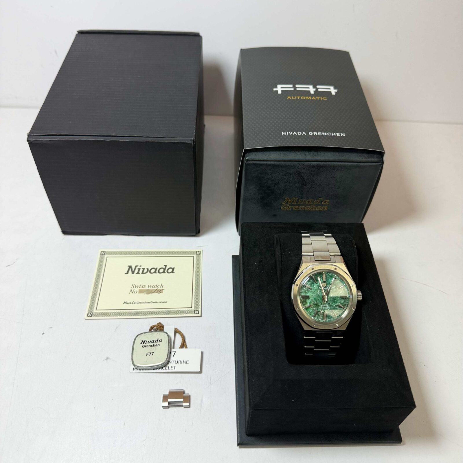 New Nivada Grenchen F77 Green Aventurine MK1 37MM Stainless Steel Box Papers
