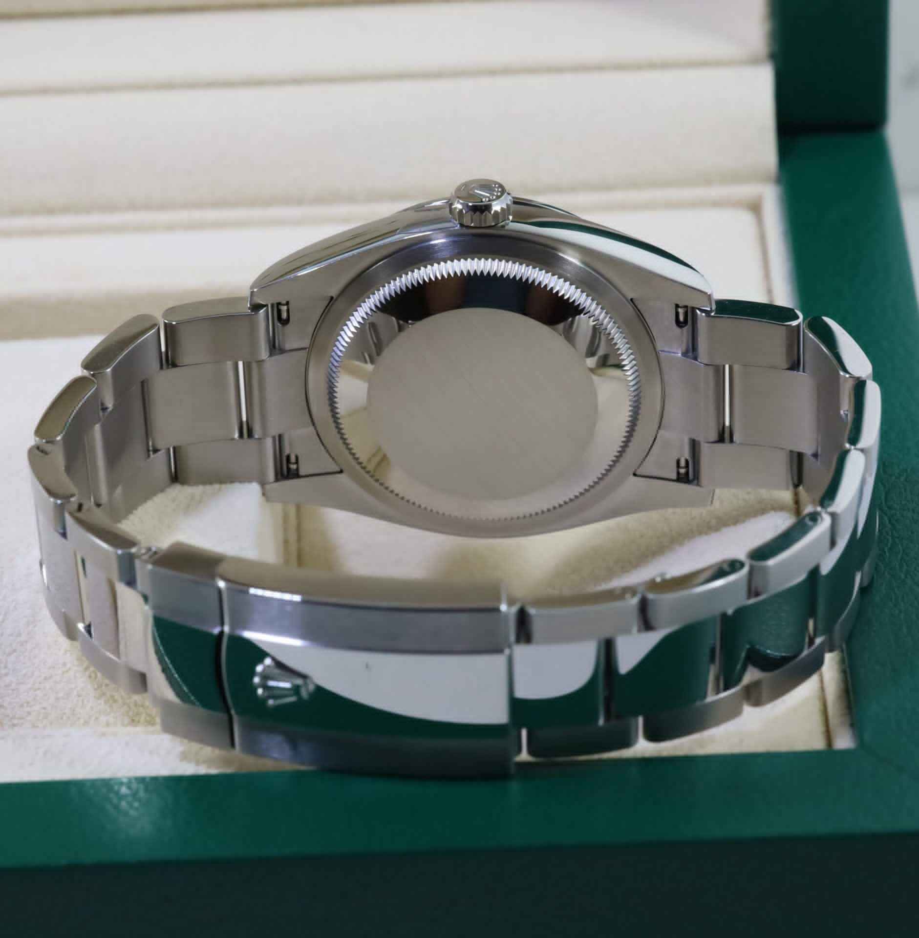 This Rolex is new and comes with box, papers, hang tag, and warranty card dated November 29th, 2021. This watch features a Green Motif Palm Dial with a stainless-steel smooth bezel on a steel oyster band. This watch is i...