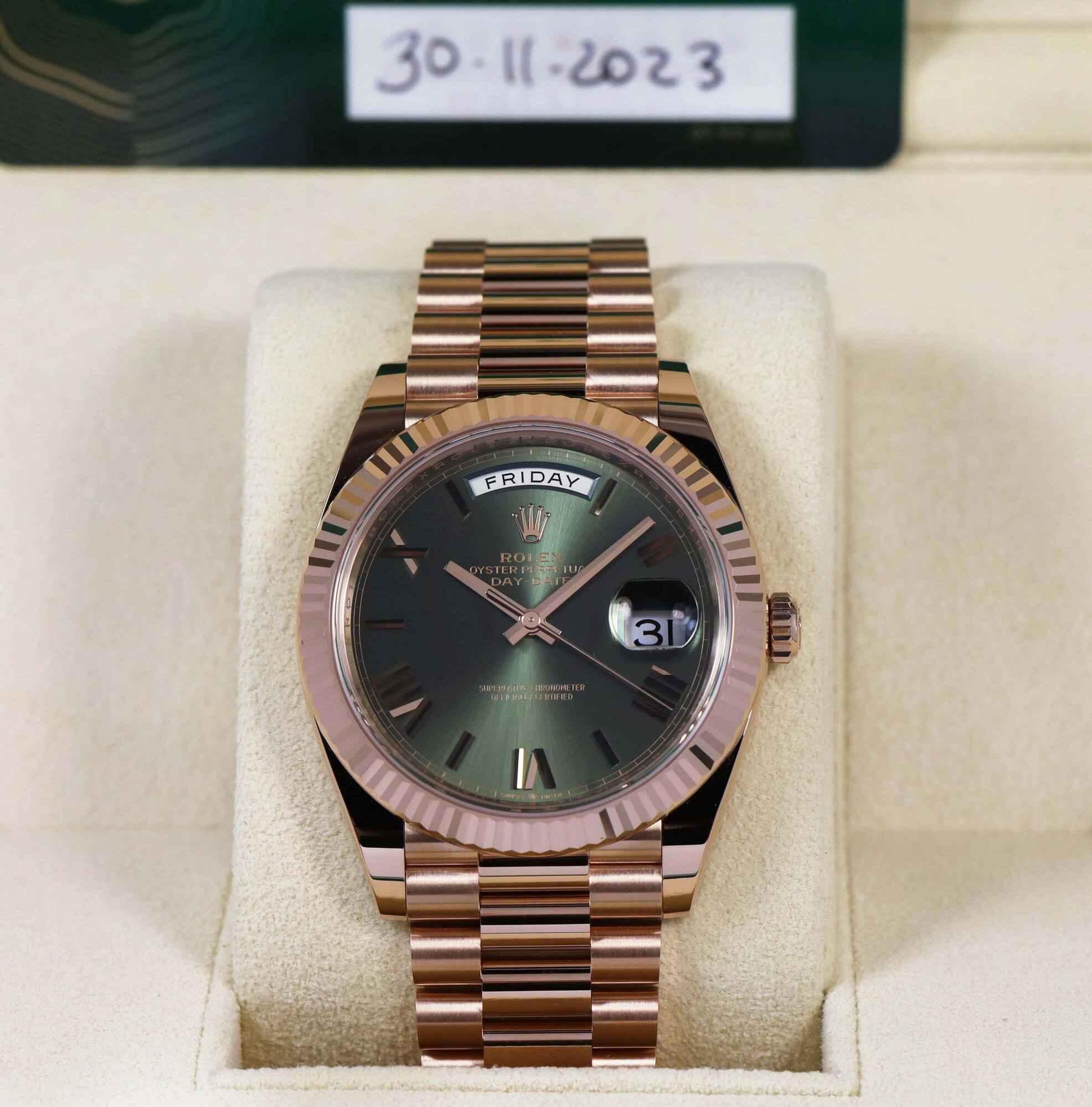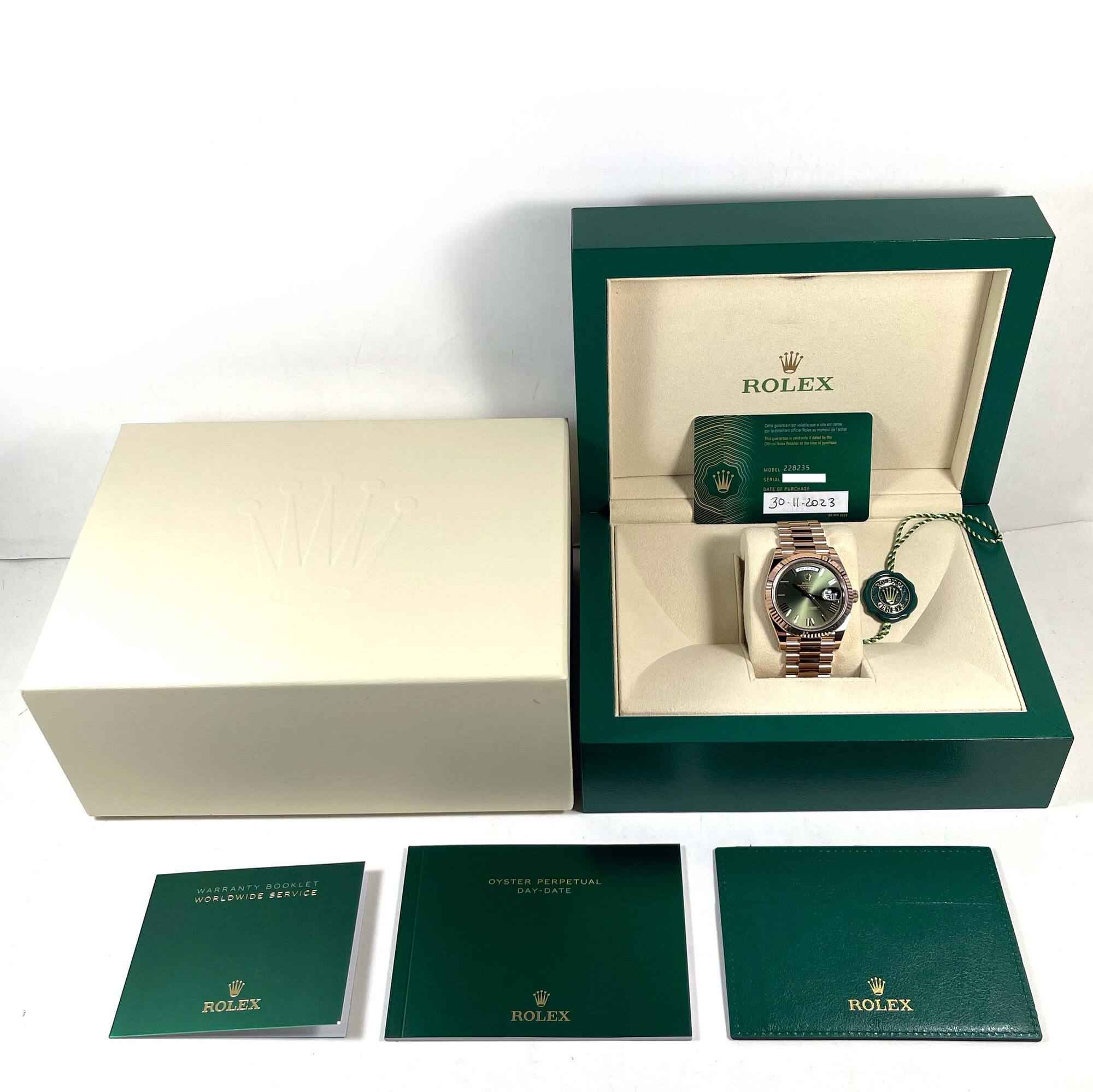 this rolex is brand new and comes with its box, booklets, hang tag, and warranty card dated november 30th, 2023 as shown in the pictures attached. This watch is in stock and available to ship immediately!