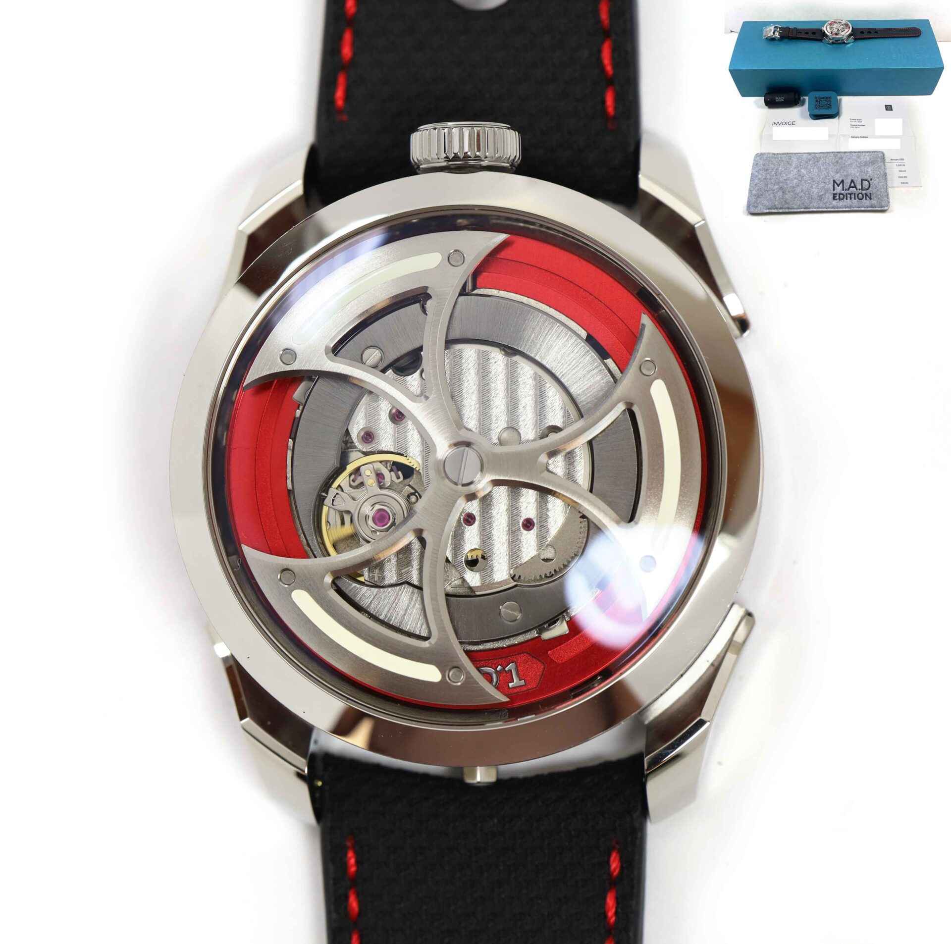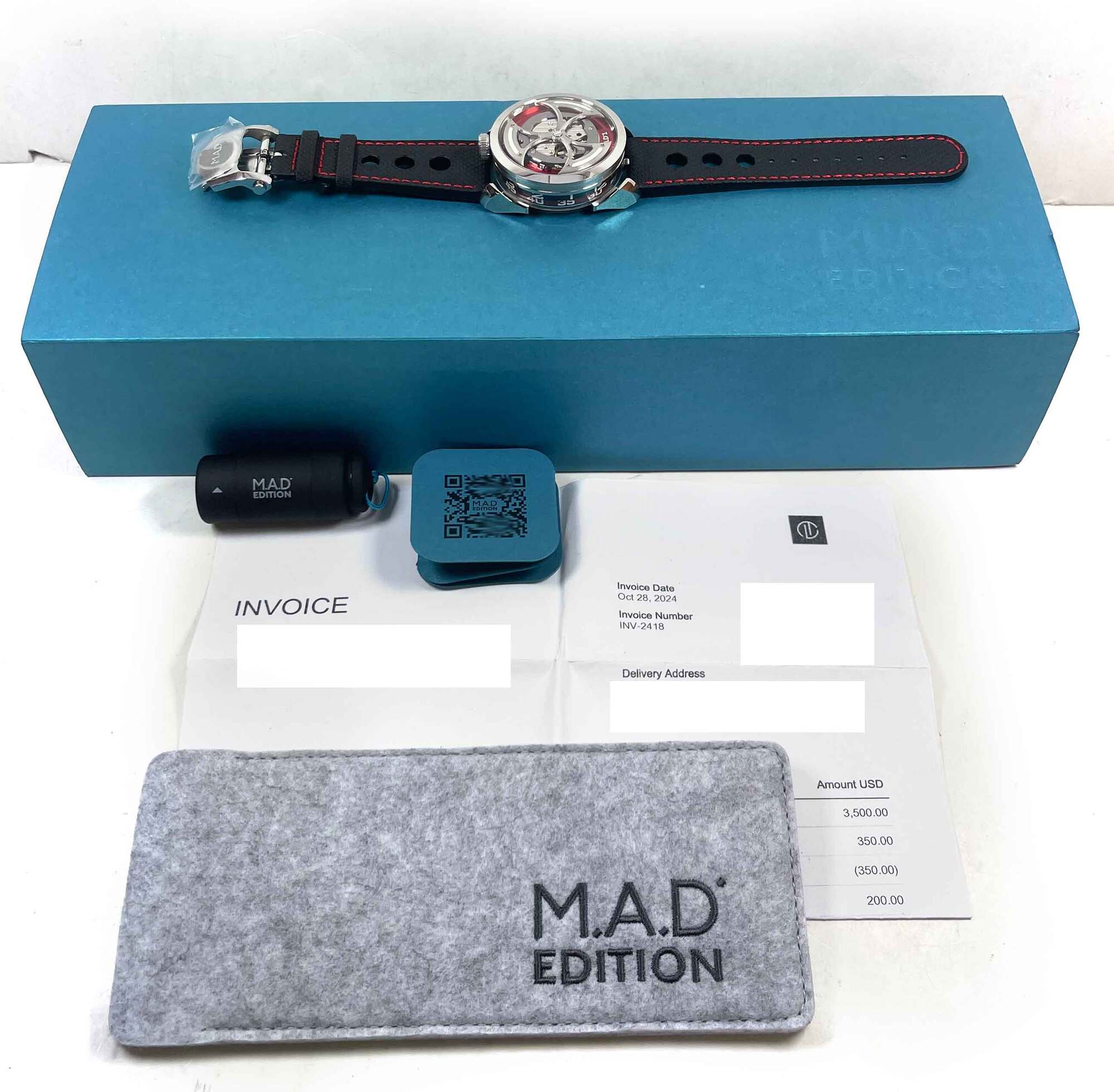 THIS MB&F WATCH IS NEW AND COMES WITH ITS BOX, QR CODE TAG, AND ORIGINAL PURCHASE RECEIPT DATED OCTOBER, 2024. THIS WATCH IS IN STOCK AND AVAILABLE TO SHIP IMMEDIATELY!