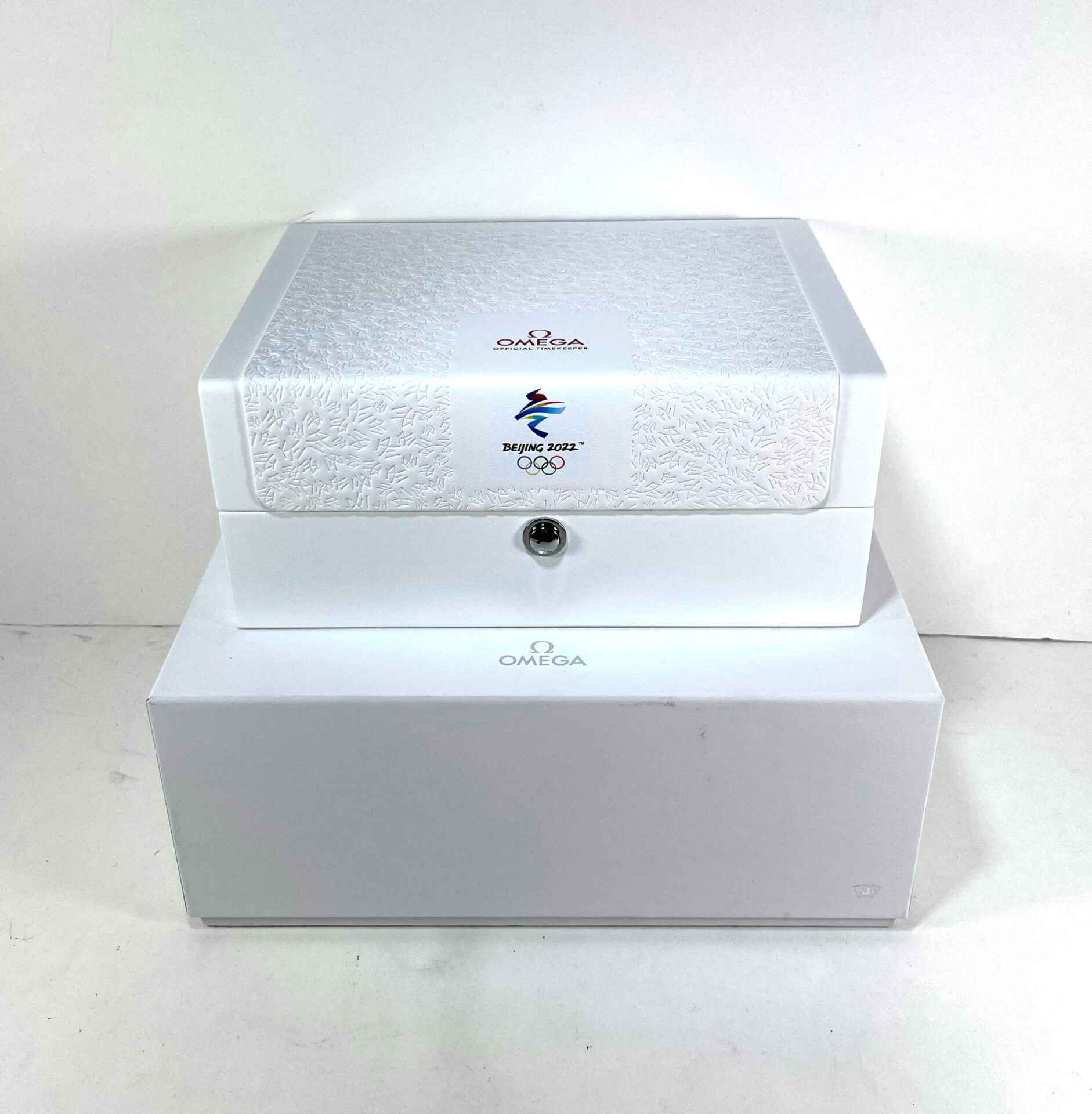 Read Morethis omega is new and comes with box, papers, hang tag, and warranty cards as shown in the pictures attached. This watch was produced to celebrate the beijing 2022 olympics and features a white ceramic dial with a special frosted finish pattern on a stainless steel 41mm case and bracelet. This watch is in stock and available to ship immediately!