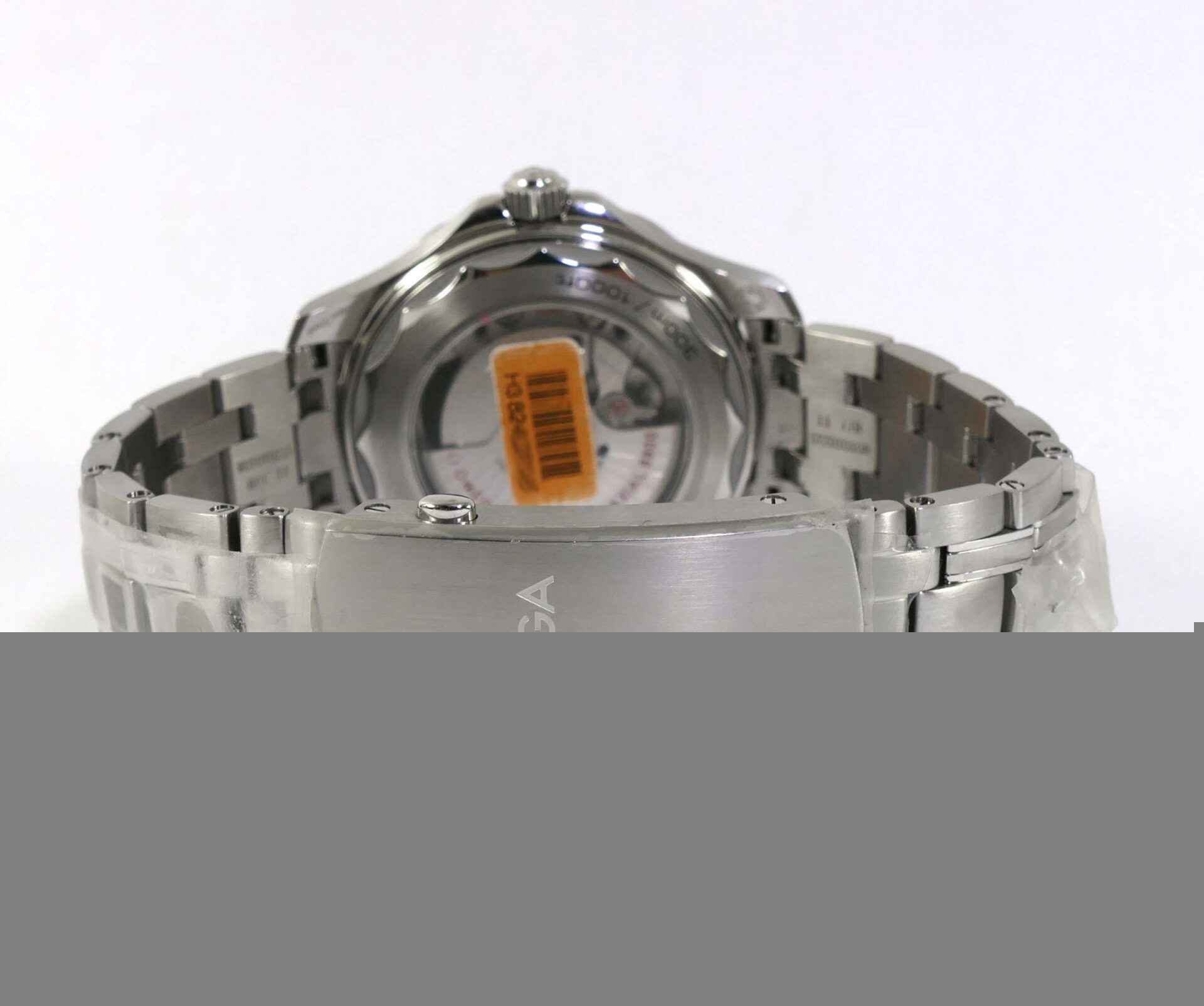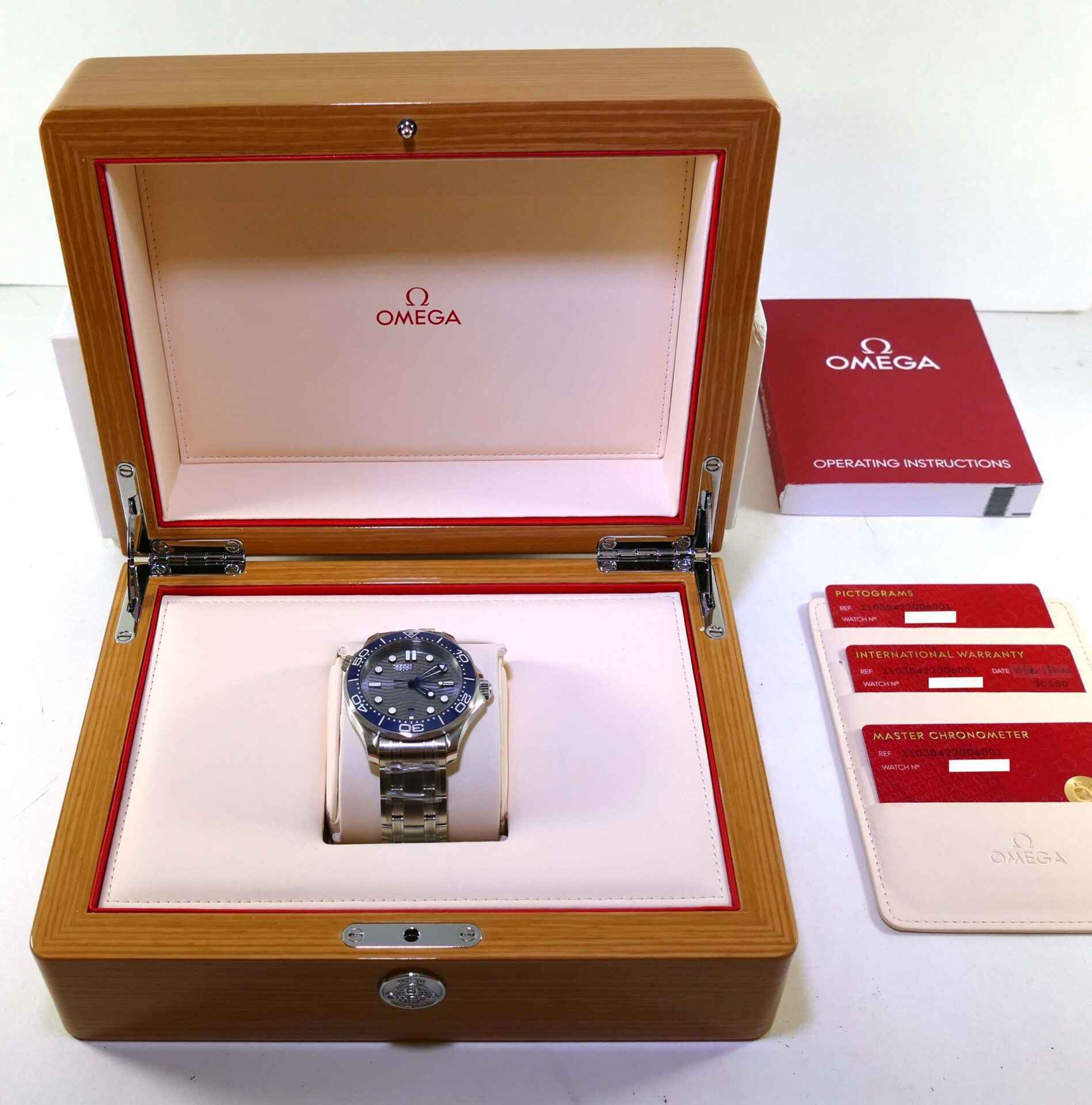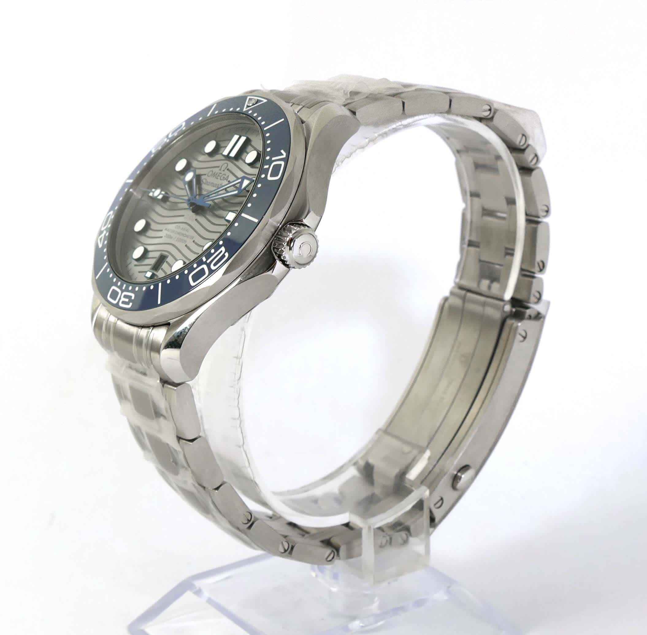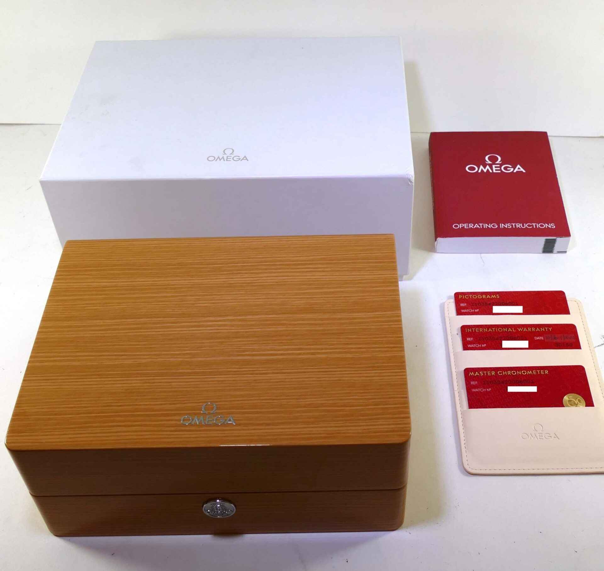 This Omega watch is New/Unworn with its original plastic still on the watch. It comes with its original box and papers, the warranty card is dated October 2020.