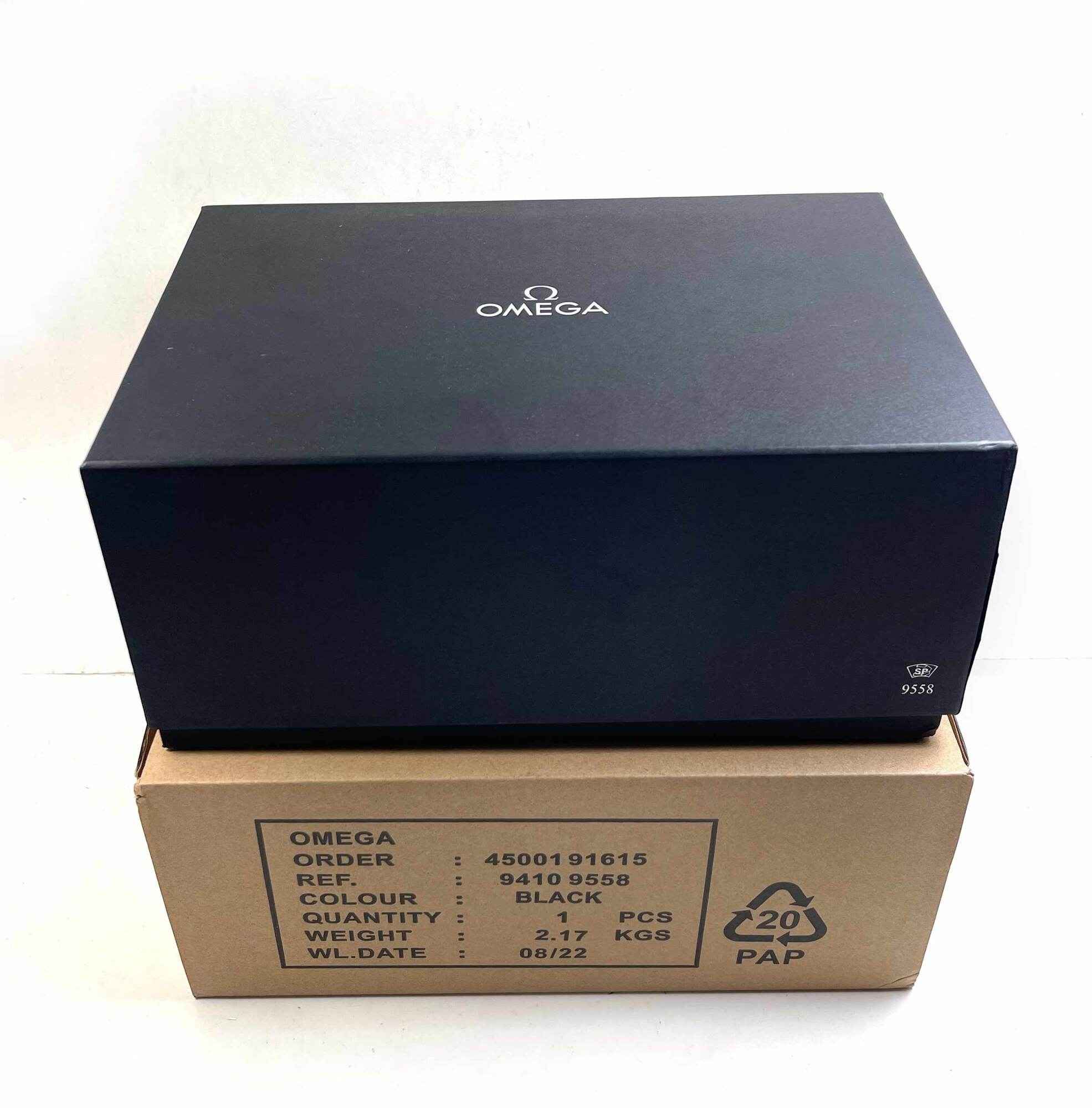 THIS OMEGA IS NEW WITH THE CASEBACK STICKER ATTACHED AND COMES WITH ITS BOX, BOOKLETS, HANG TAG, AND WARRANTY CARD DATED NOVEMBER 9TH, 2023 AS SHOWN IN THE PICTURES ATTACHED. THIS WATCH IS IN STOCK AND AVAILABLE TO SHIP IMMEDIATELY!