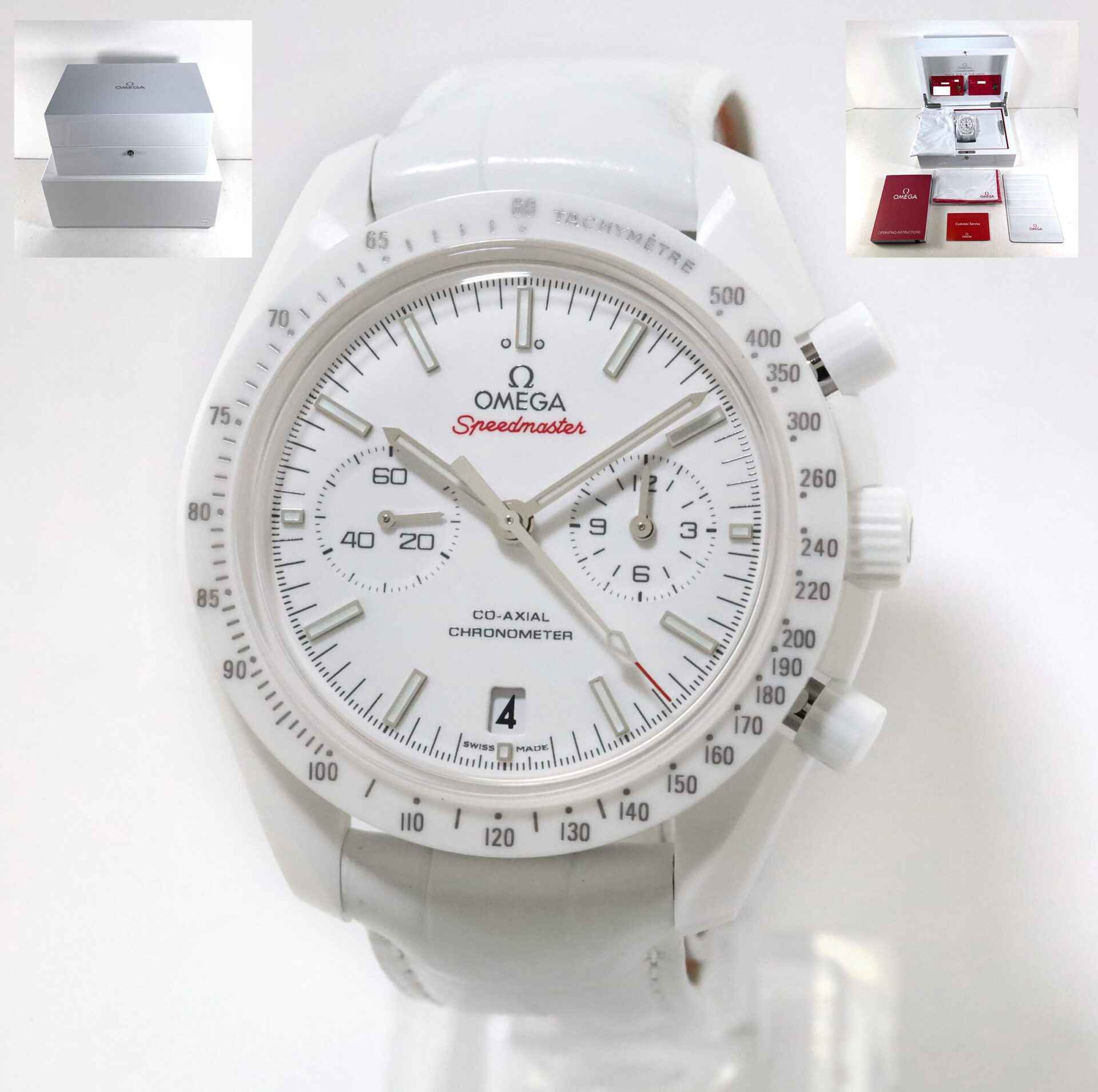 Read Morethis omega watch is new with stickers on the caseback and clasp of the watch as shown in the pictures attached. This watch comes with its set of boxes, papers, hang tag, microfiber cloth, and warranty cards dated 2022. The omega strap that came on this watch is a smaller size. This omega is in stock and available to ship immediately!