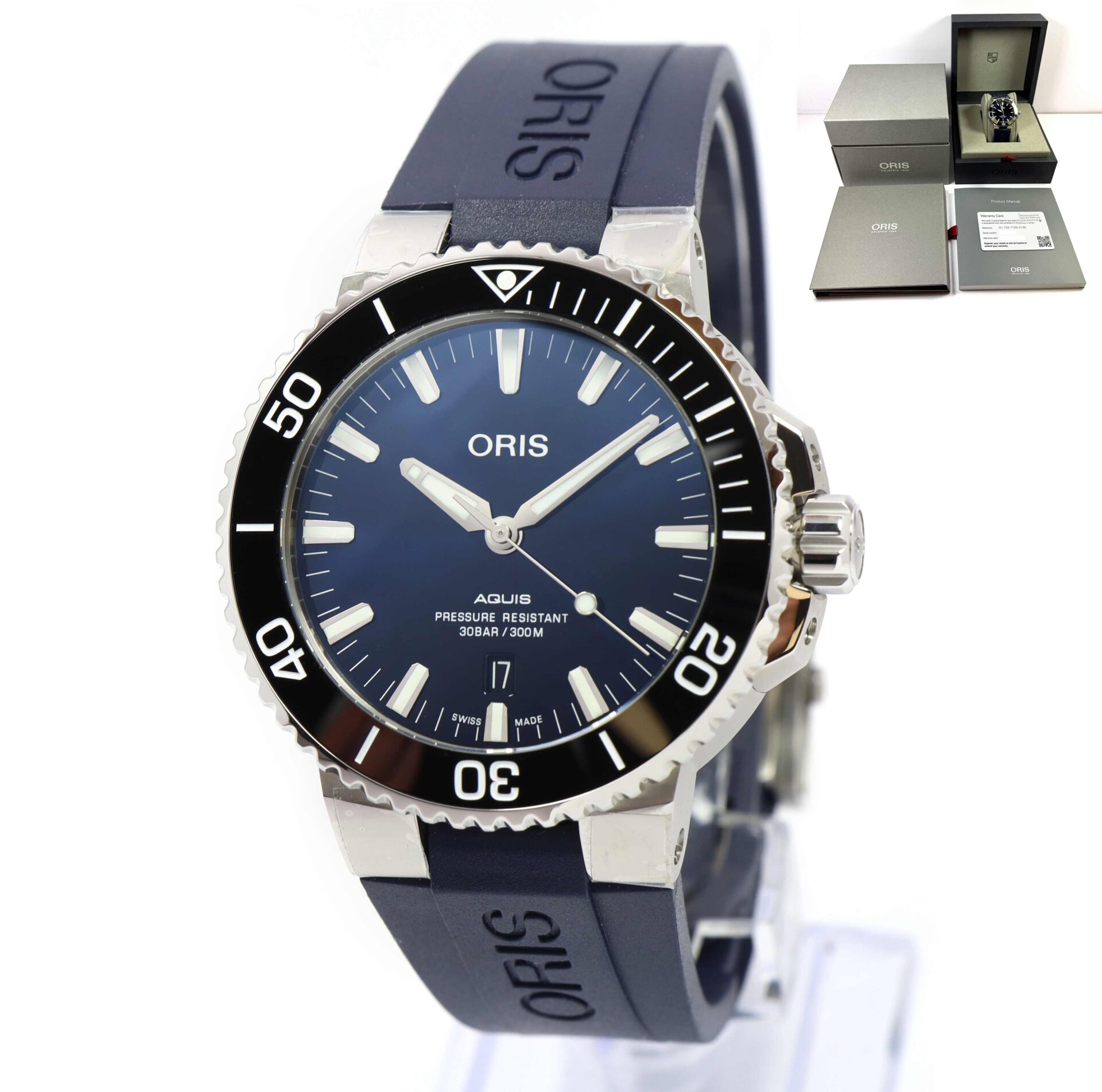New Oris Aquis Date 01 733 7730 4135 43.5MM Blue Dial Box Papers