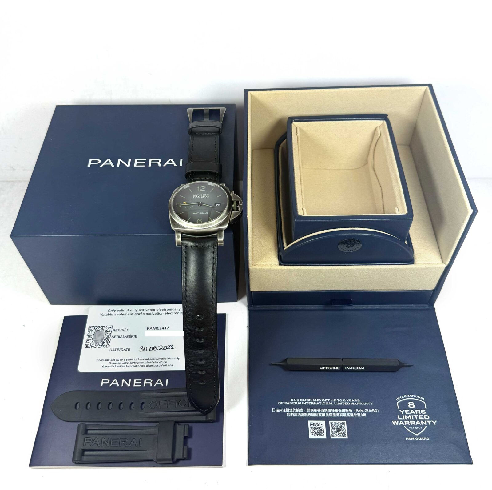 This Panerai watch is new and comes with its box, booklets, watch tool, one additional black rubber strap, and warranty card dated June 30th, 2023 as shown in the pictures attached. Please. note the inner box for this set is missing the watch pillow. This w...