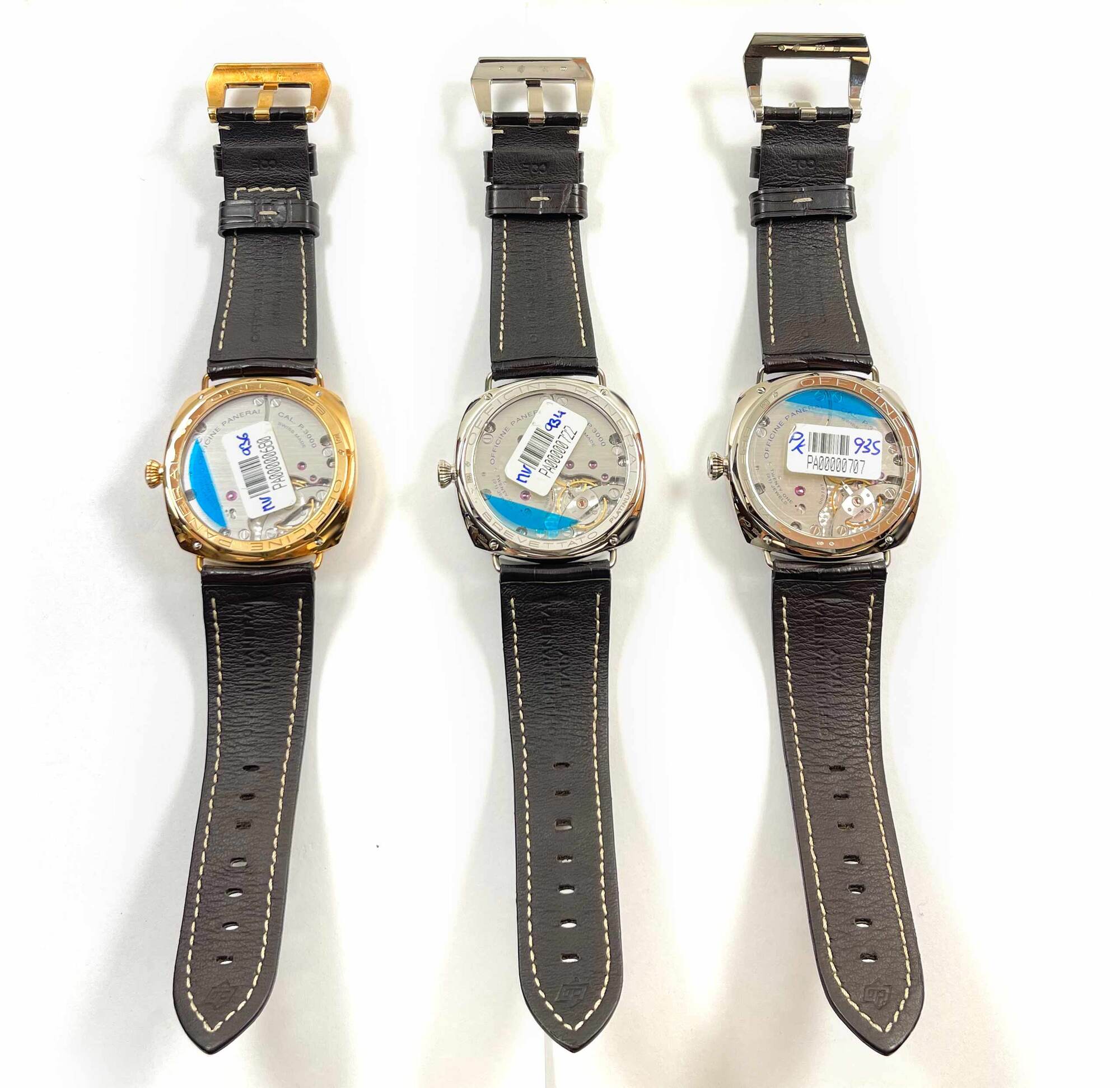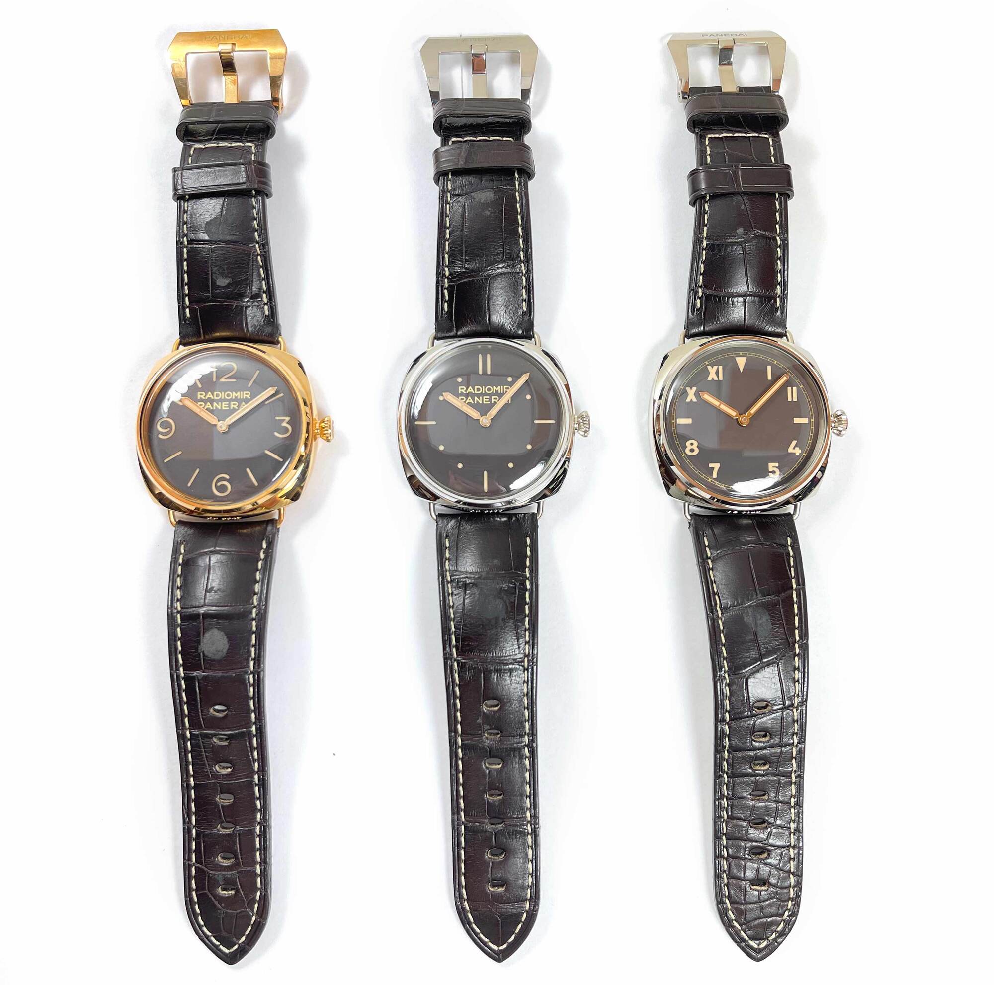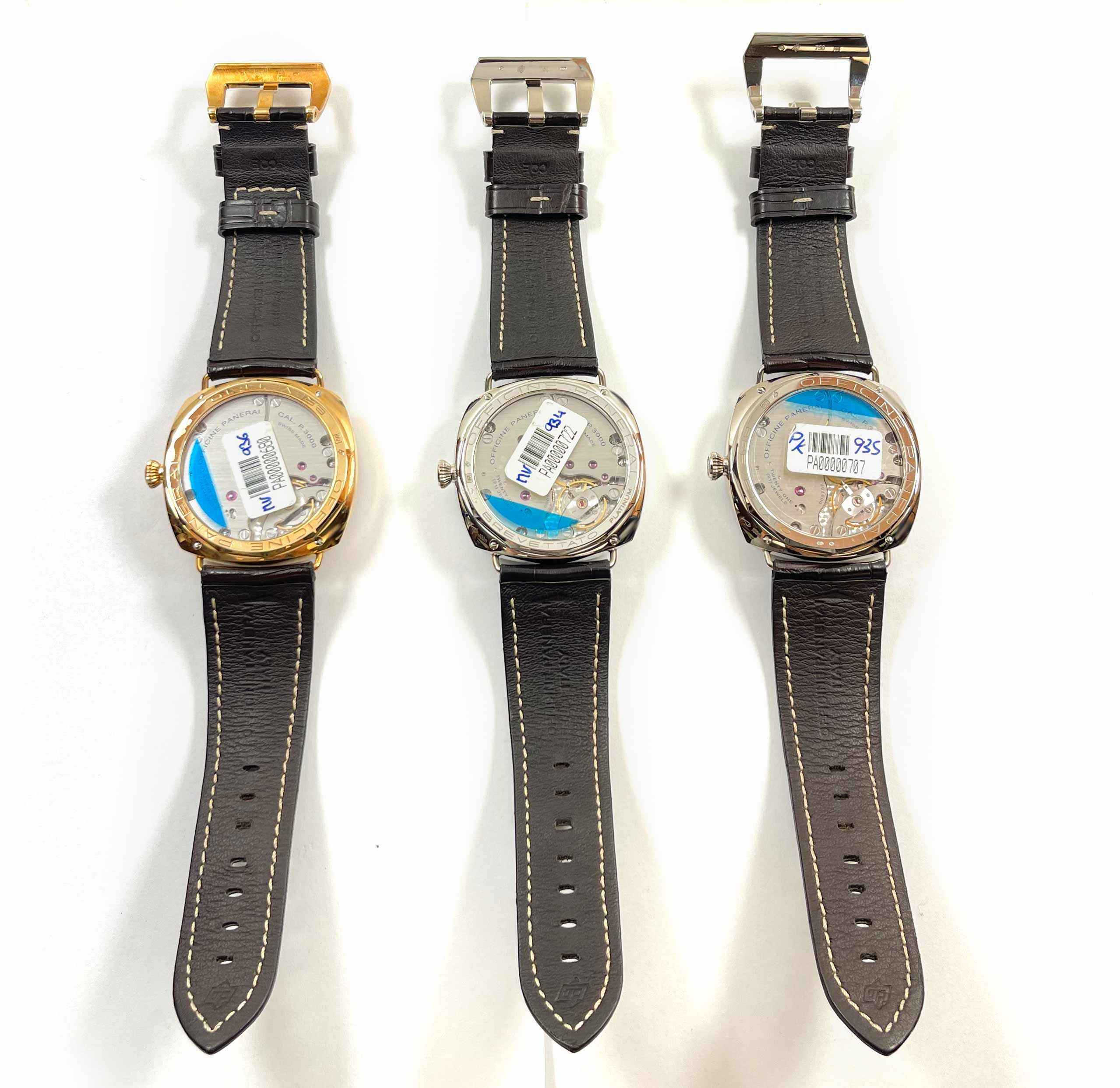 this panerai radiomir special edition set is new with the caseback sticker attached to all 3 watches. These come exactly as shown in the pictures attached which includes the box, booklets, bezel protector, warranty card, and warranty papers dated december 14th, 2011 as shown in the pictures attached. This set is apart of a limited edition with only 10 others produced and is in stock and available to ship immediately!