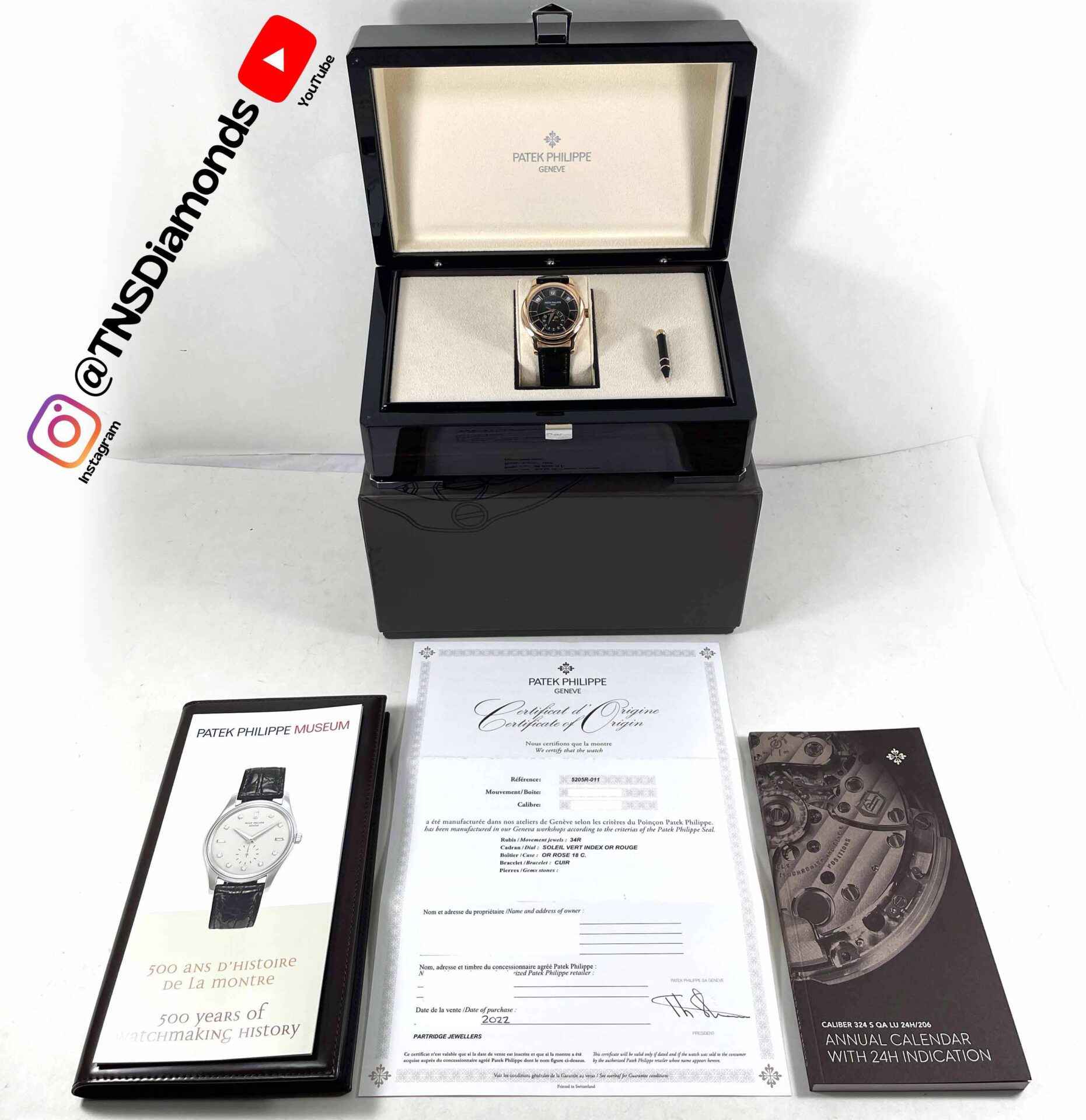This Patek Philippe is new and comes with its boxes, booklets, Patek pusher tool, and warranty papers dated June 27th, 2022. This Patek features a 40mm rose gold case that surrounds a beaut...