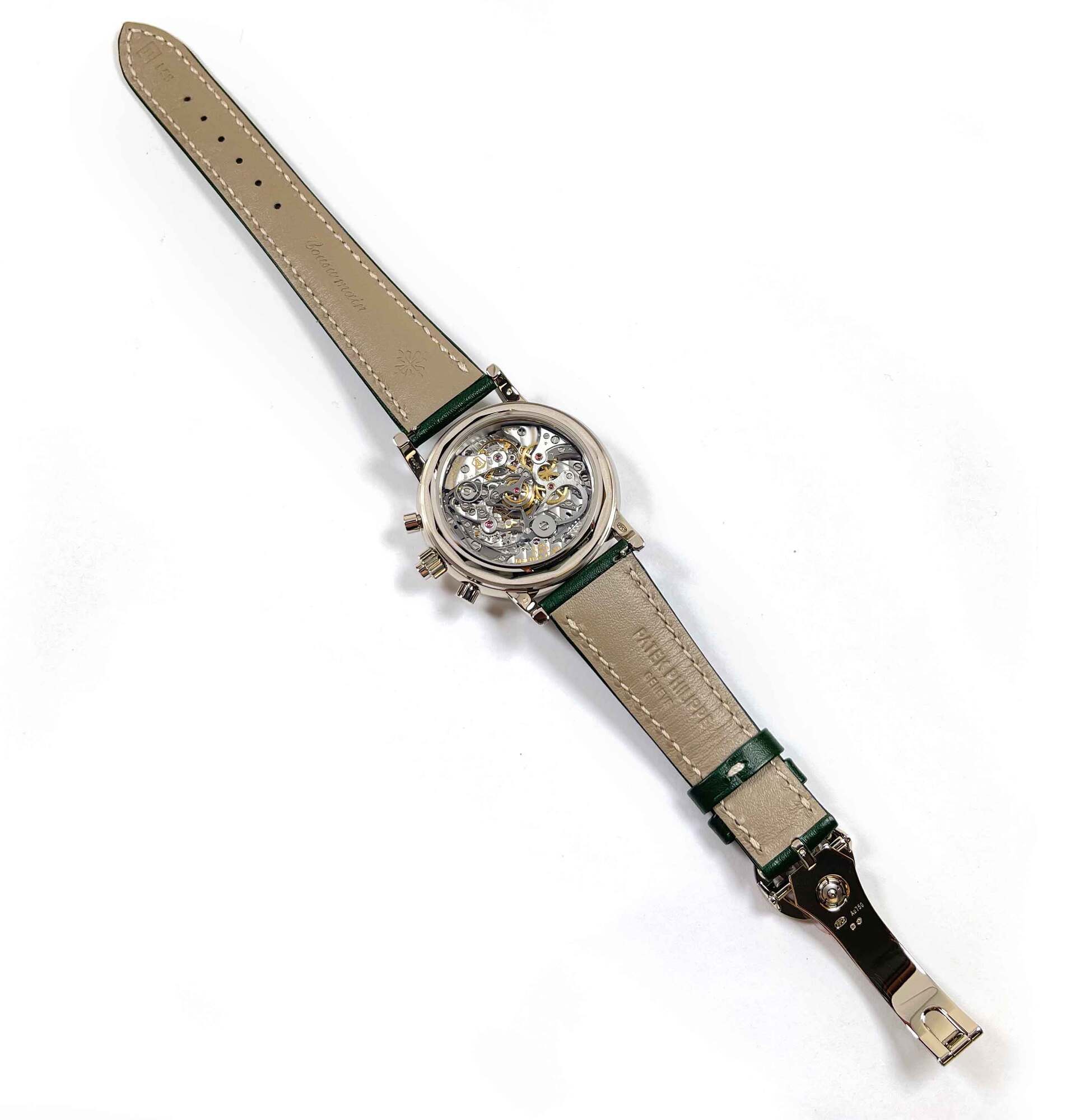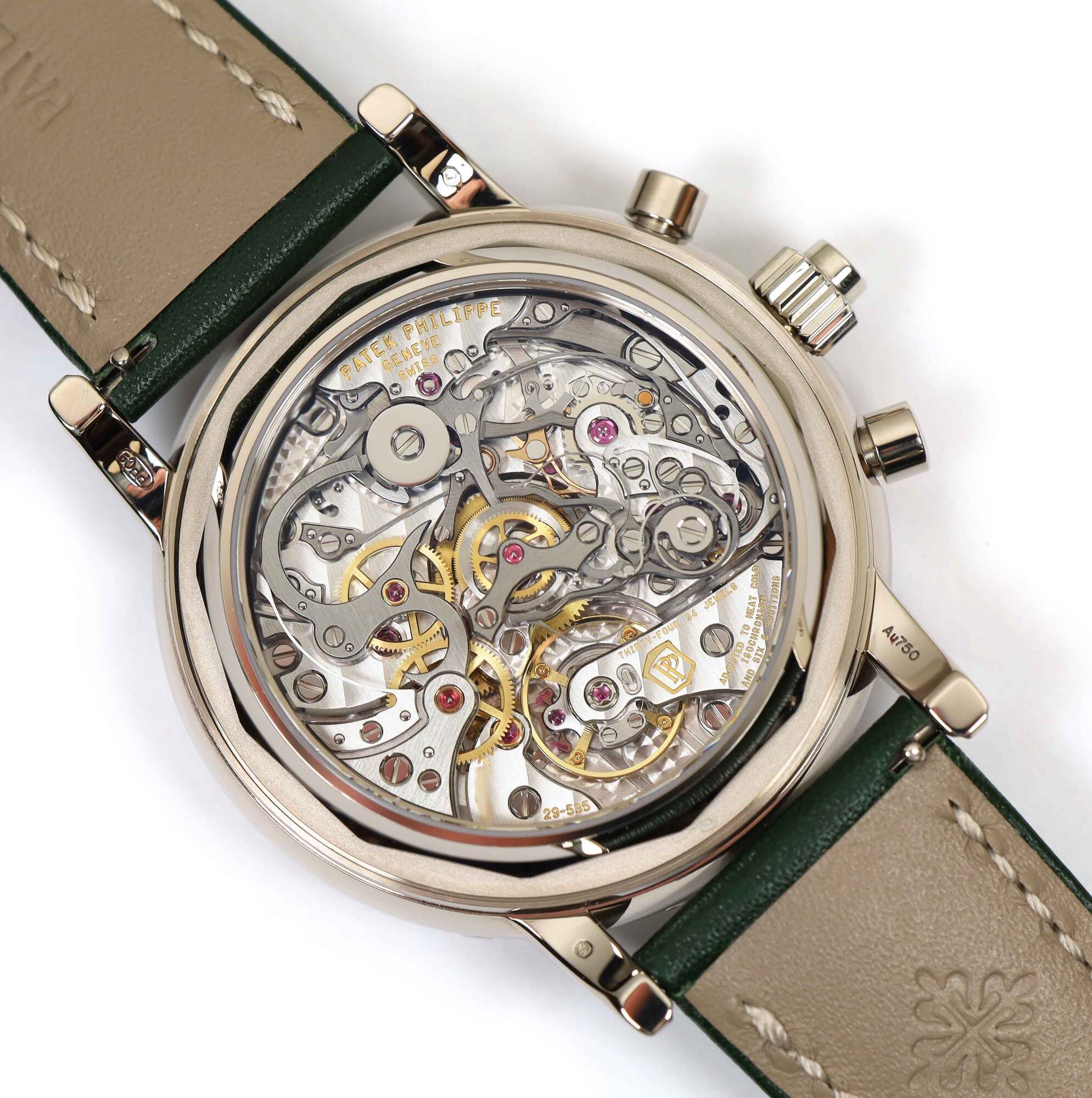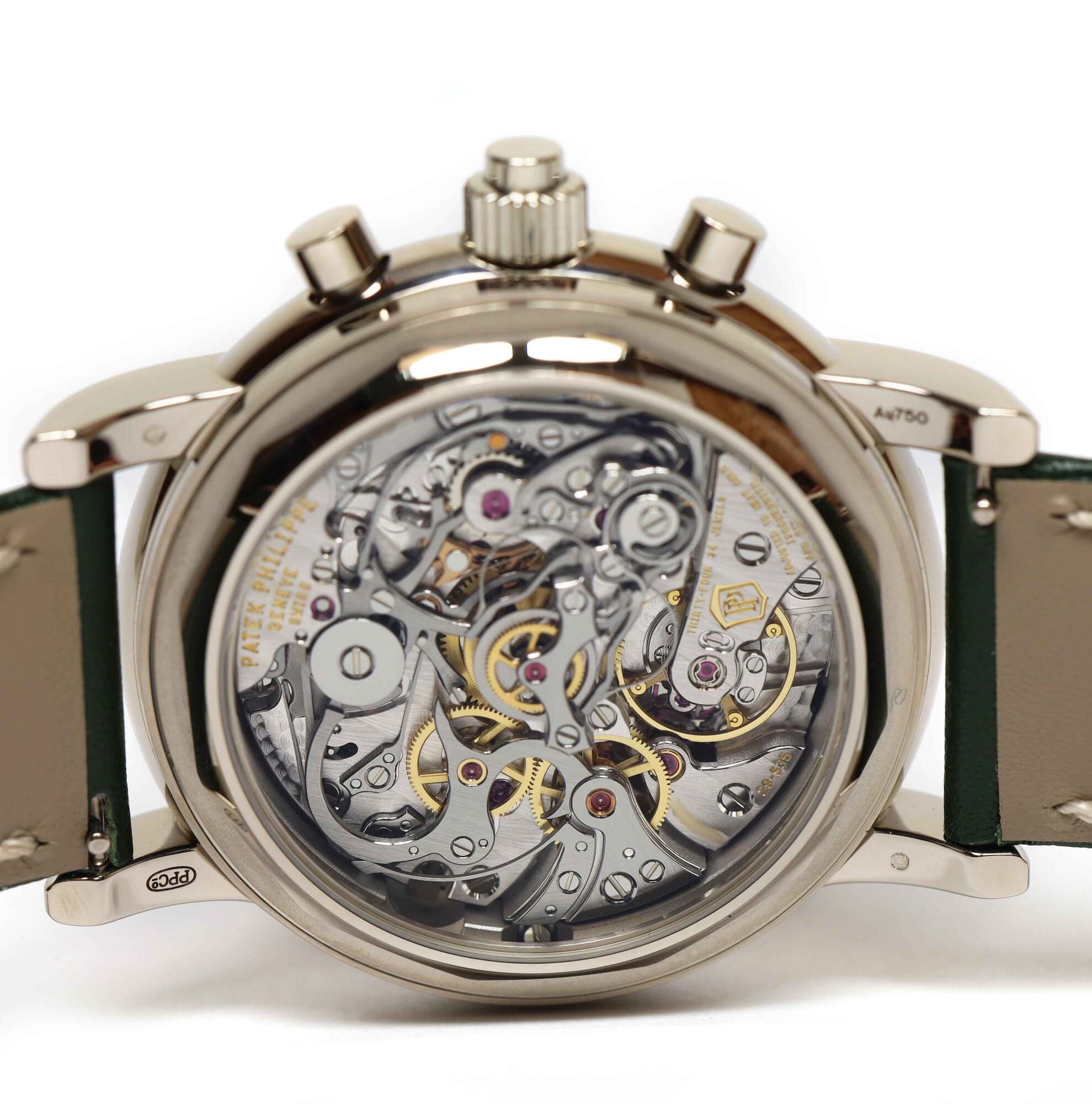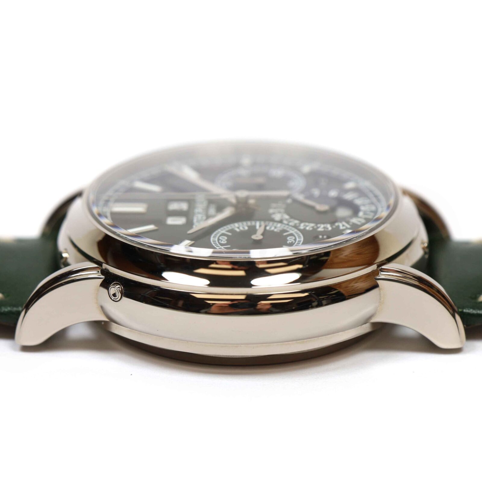 Read Morethis patek is new and comes with its box, booklets, and warranty paper dated late 2023. This watch features an 18k white gold case that surrounds a green dial and comes on a green leather strap. The watch functions include hours, minutes, small-seconds, day, date, month, moon phase, leap year indicator, split-second chronograph and perpetual calendar. This watch is in stock and available to ship immediately!
