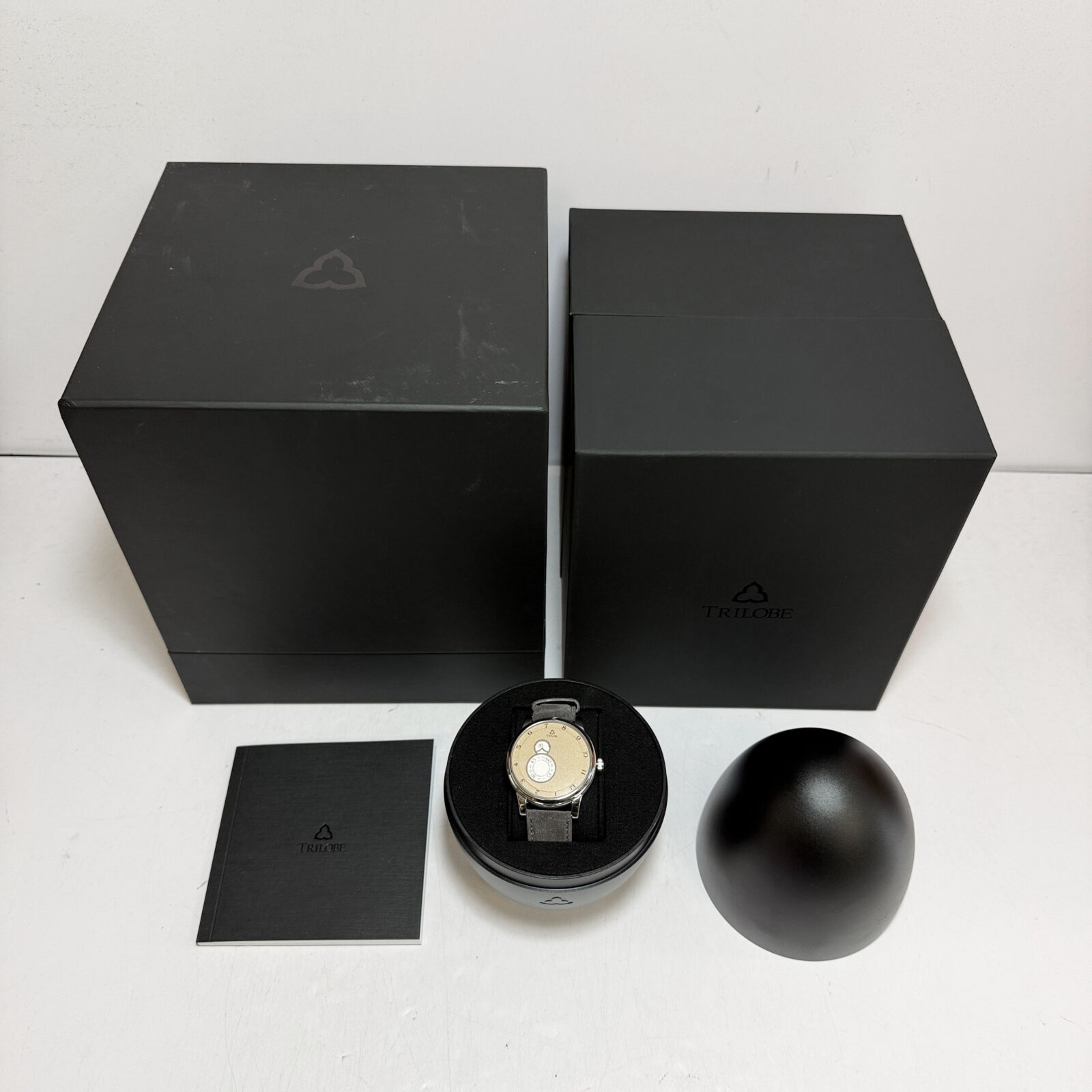 This Trilobe watch is new and comes with its box and warranty booklet dated September, 2024. The photos shown are of the exact watch being sold and accurately represent its condition. This watch is in stock and ready to ship immediately!