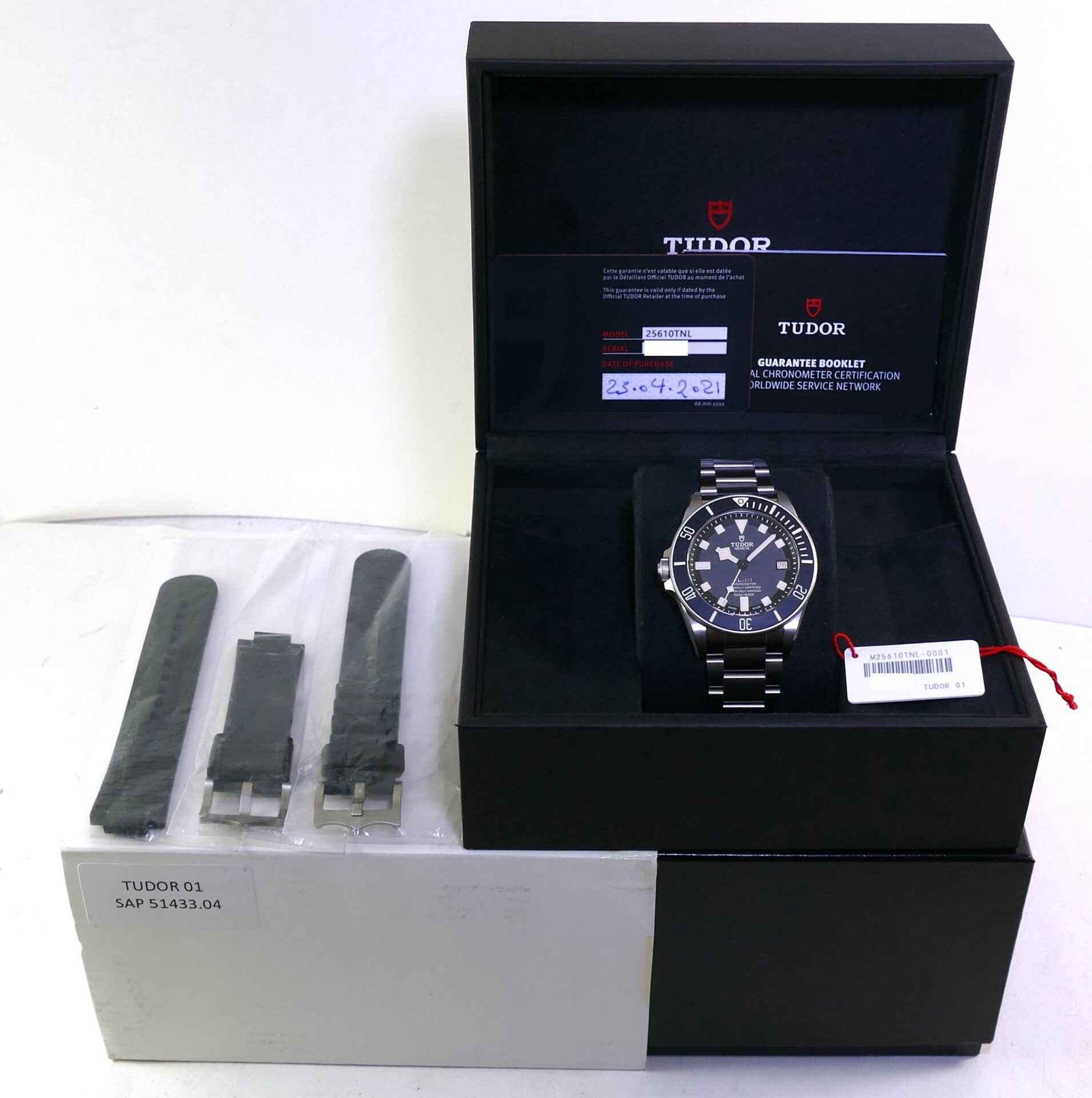 this watch is new and unworn, with all of its original stickers never removed, even it’s barcode sticker. It comes with its original box and serialized hangtag, however the warranty card was misplaced and unfortunately is not included. We will provide a 2 year warranty on this watch to compensate for the missing tudor warranty card.