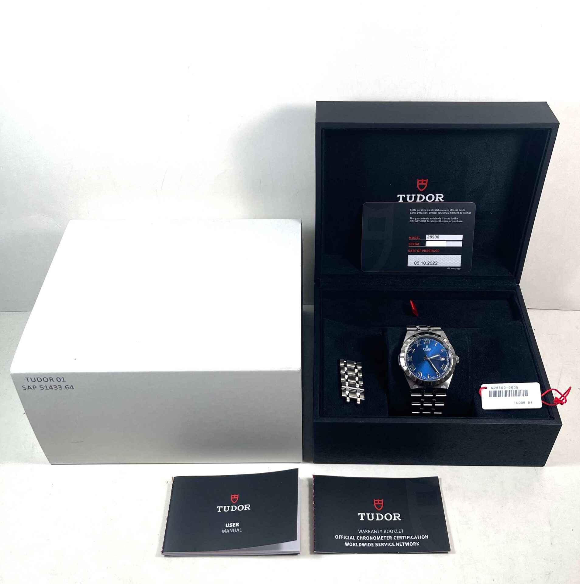 this tudor is new with stickers and comes with its box, booklets, hang tag, spare links, and warranty card dated october 6th, 2022. This watch is in stock and available to ship immediately!