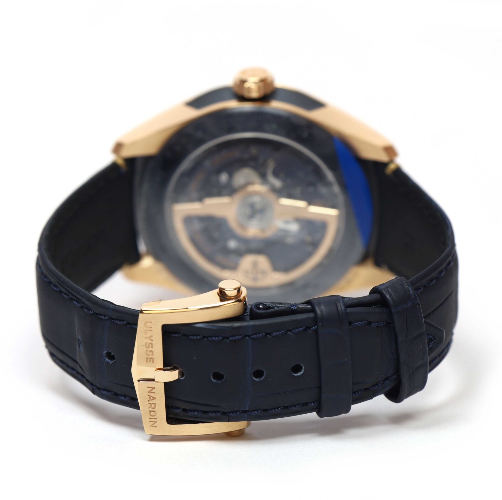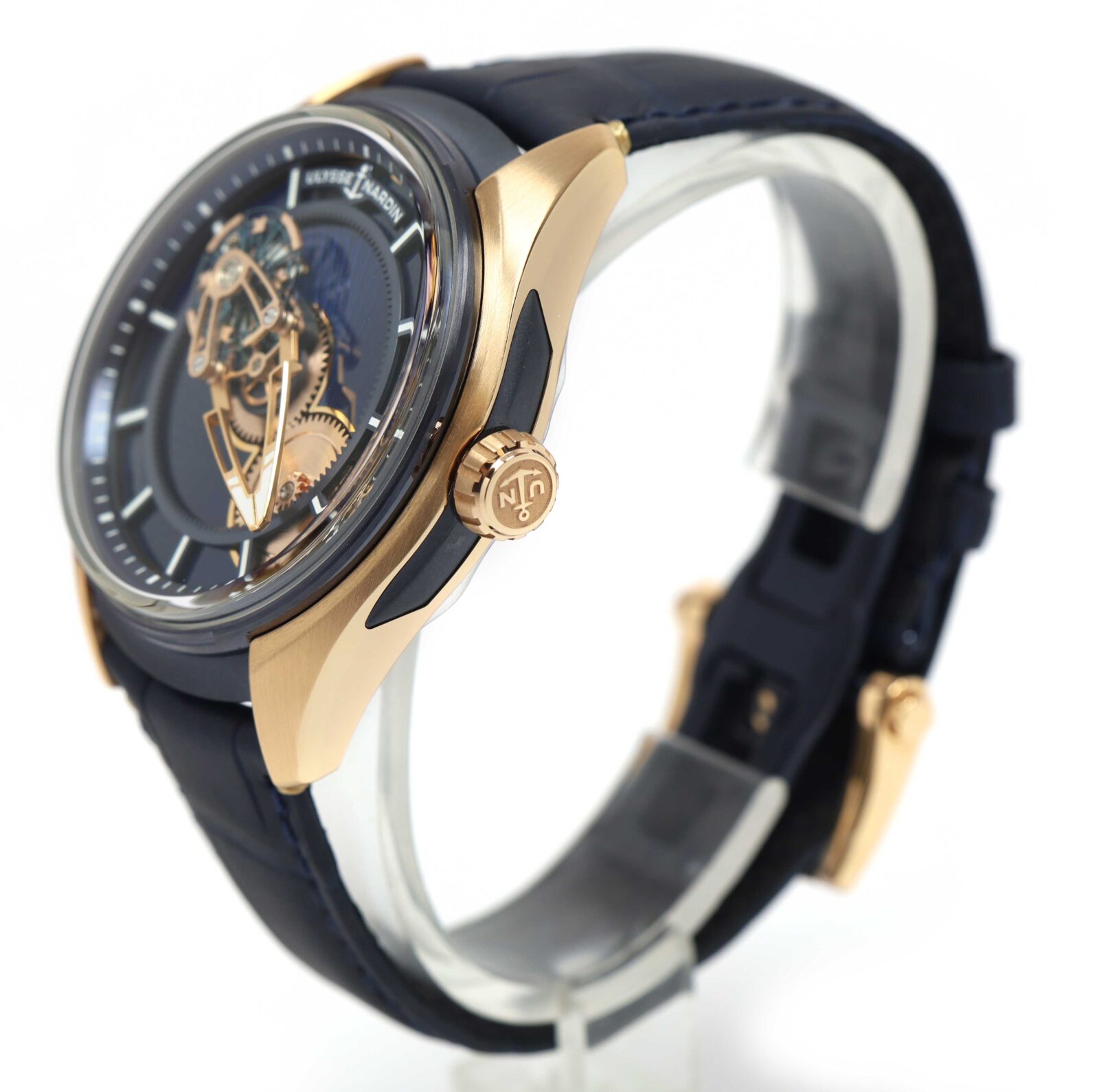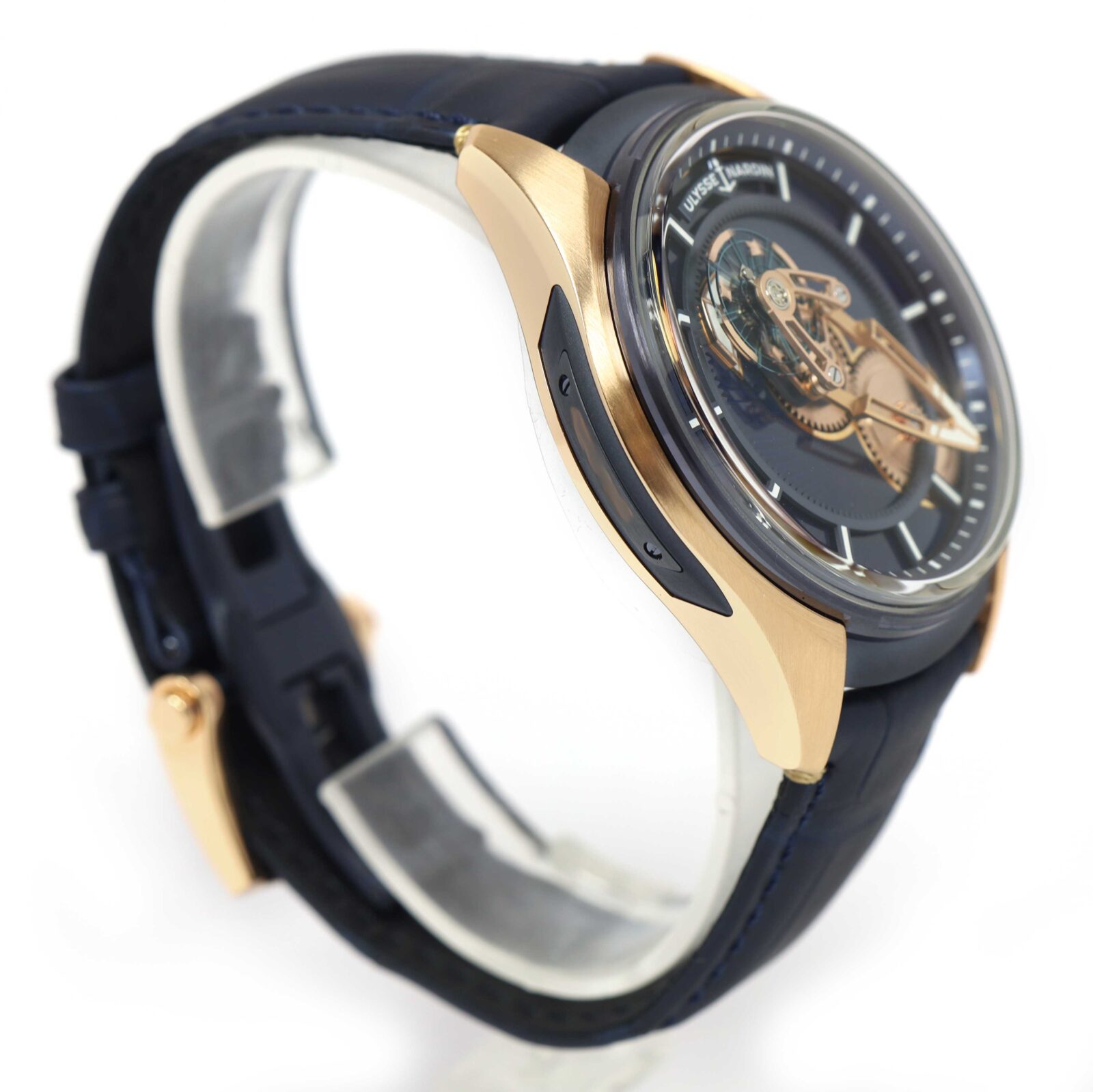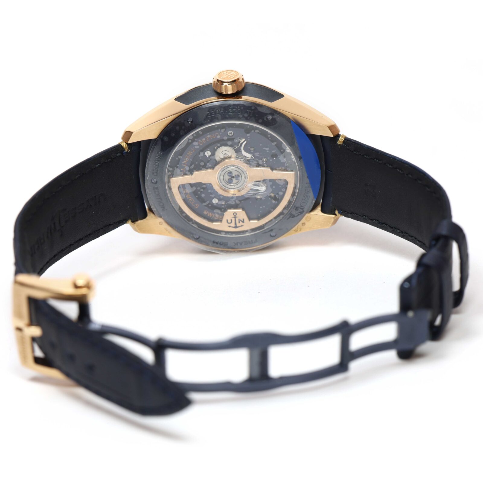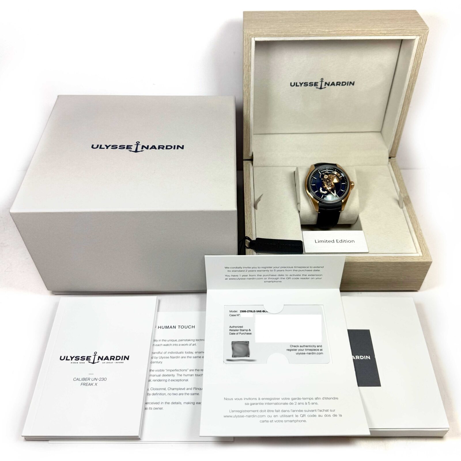 this ulysse nardin watch is new with the original sticker on the caseback attached. This comes with its box, booklets, hang tag, and warranty card as shown in the pictures attached. This watch is part of a very limited edition with only 120 total pieces produced in this model. This watch is in stock and available to ship immediately!