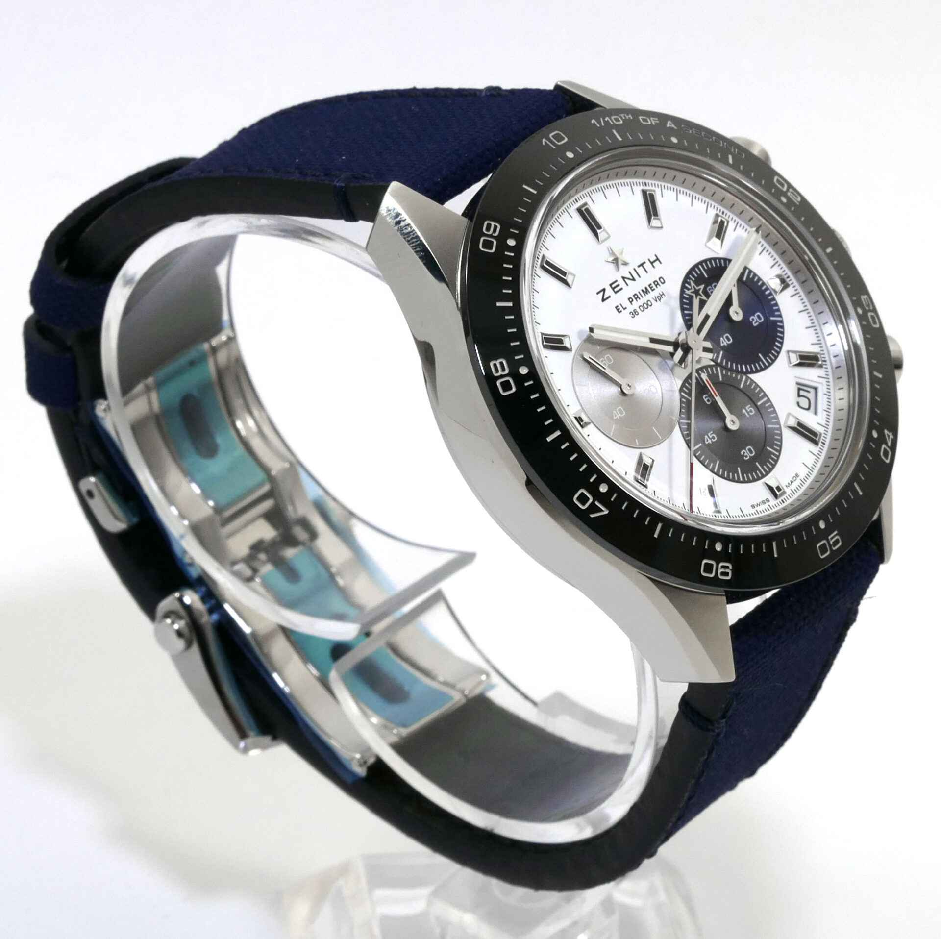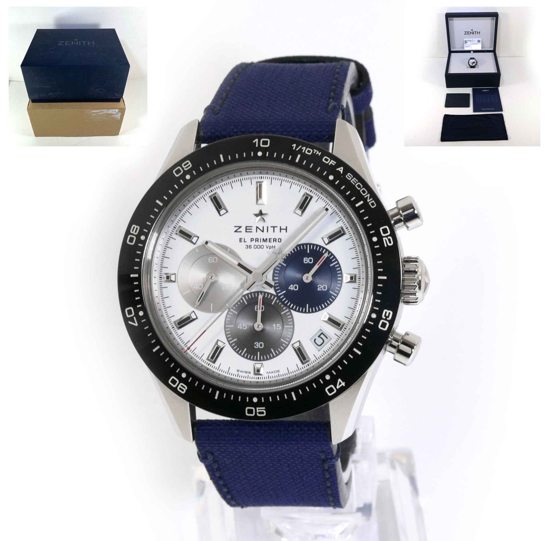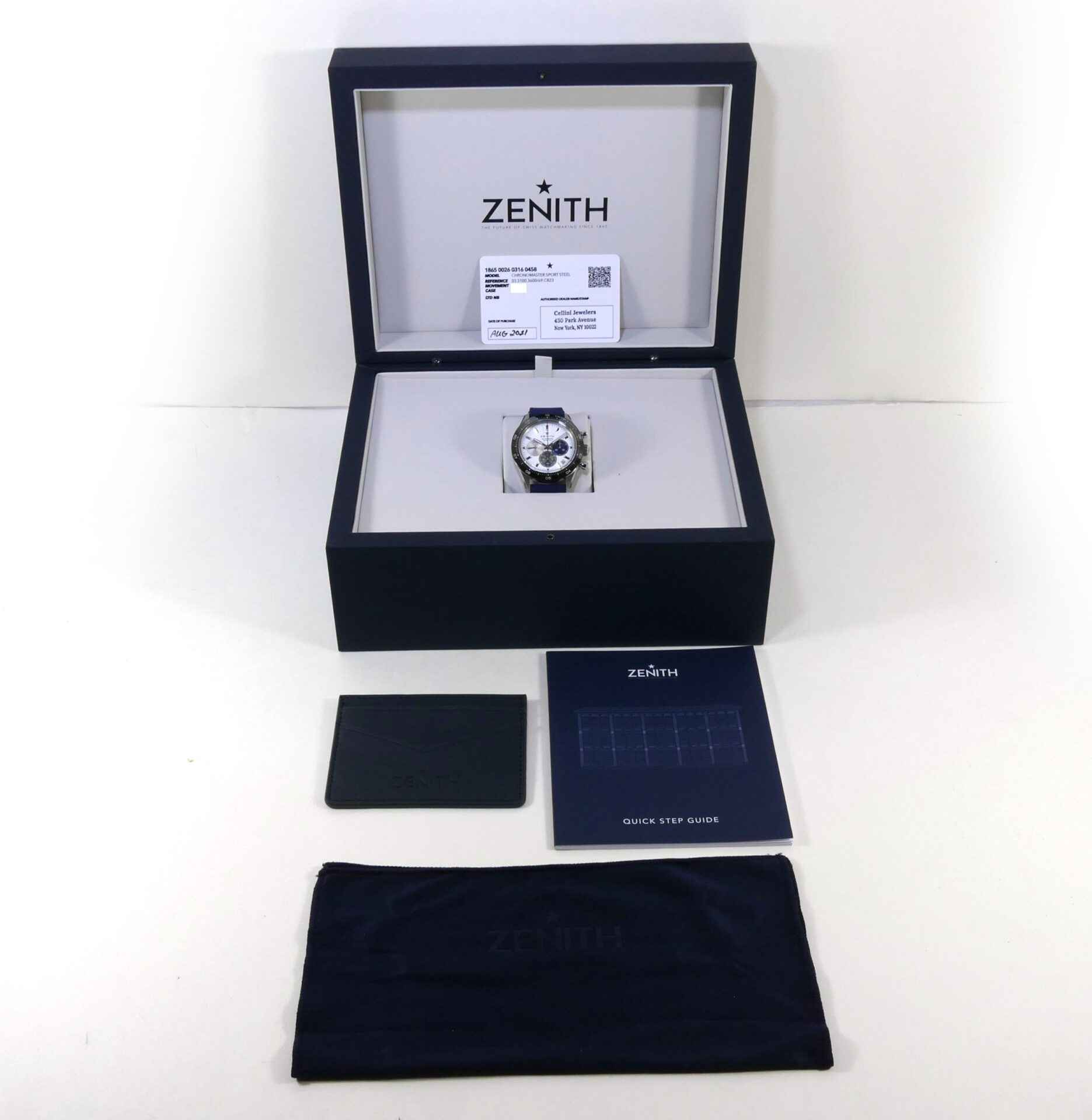 This Zenith watch is new with stickers still on the bracelet clasp as shown in the photos attached. This watch comes with its box, papers, Zenith microfiber cloth, and warranty card dated August, 2021. This watch is in s...