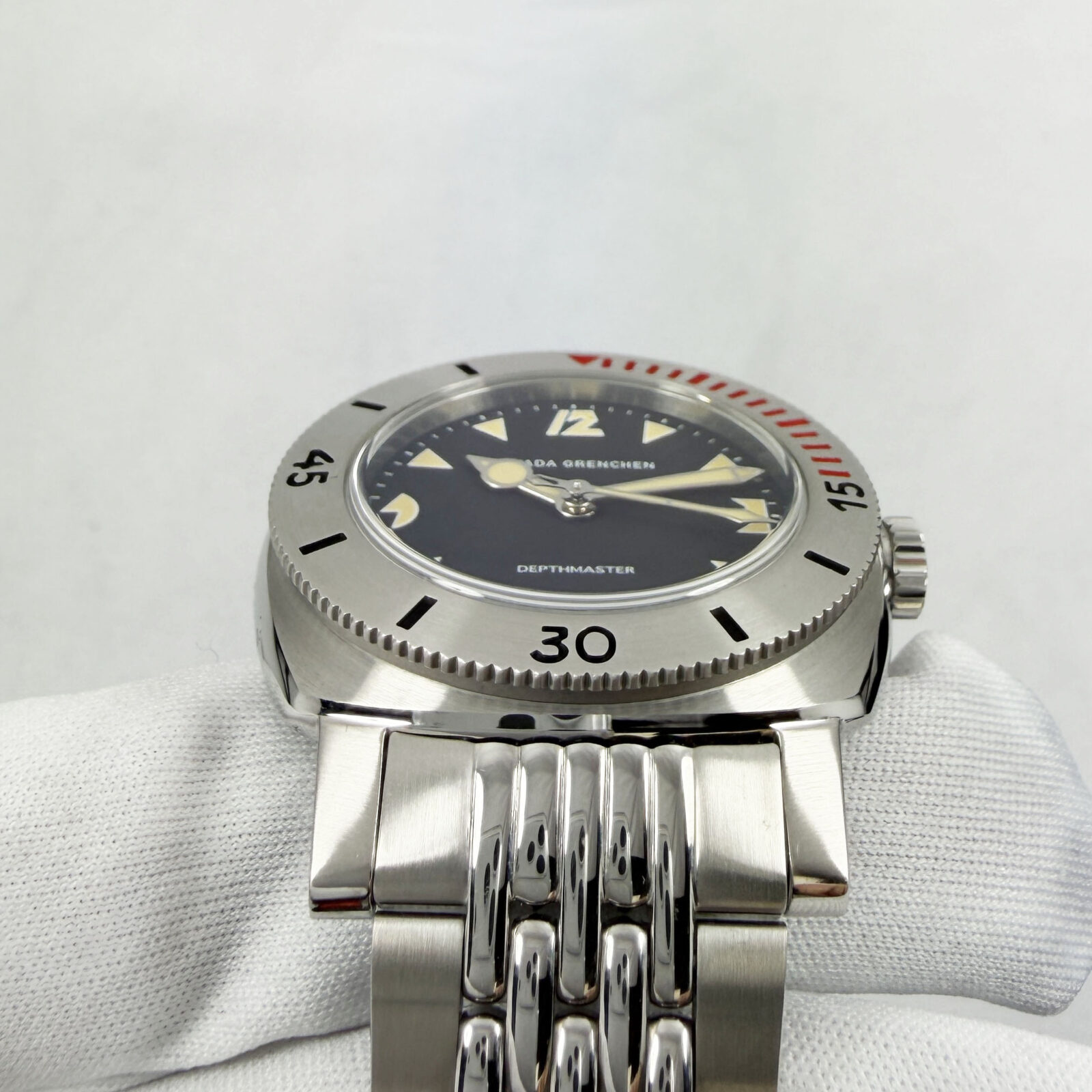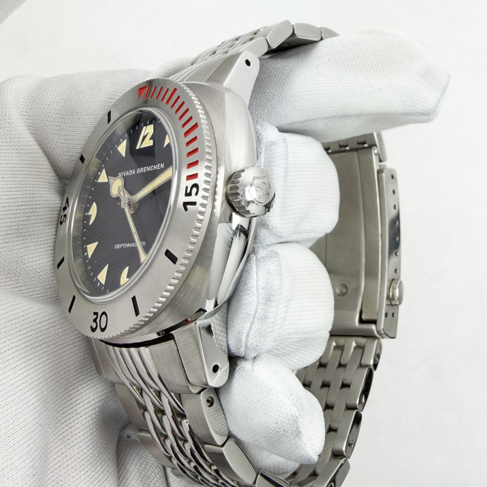 Nivada Grenchen Art Deco Depthmaster 39MM Black Stainless Steel Box Papers