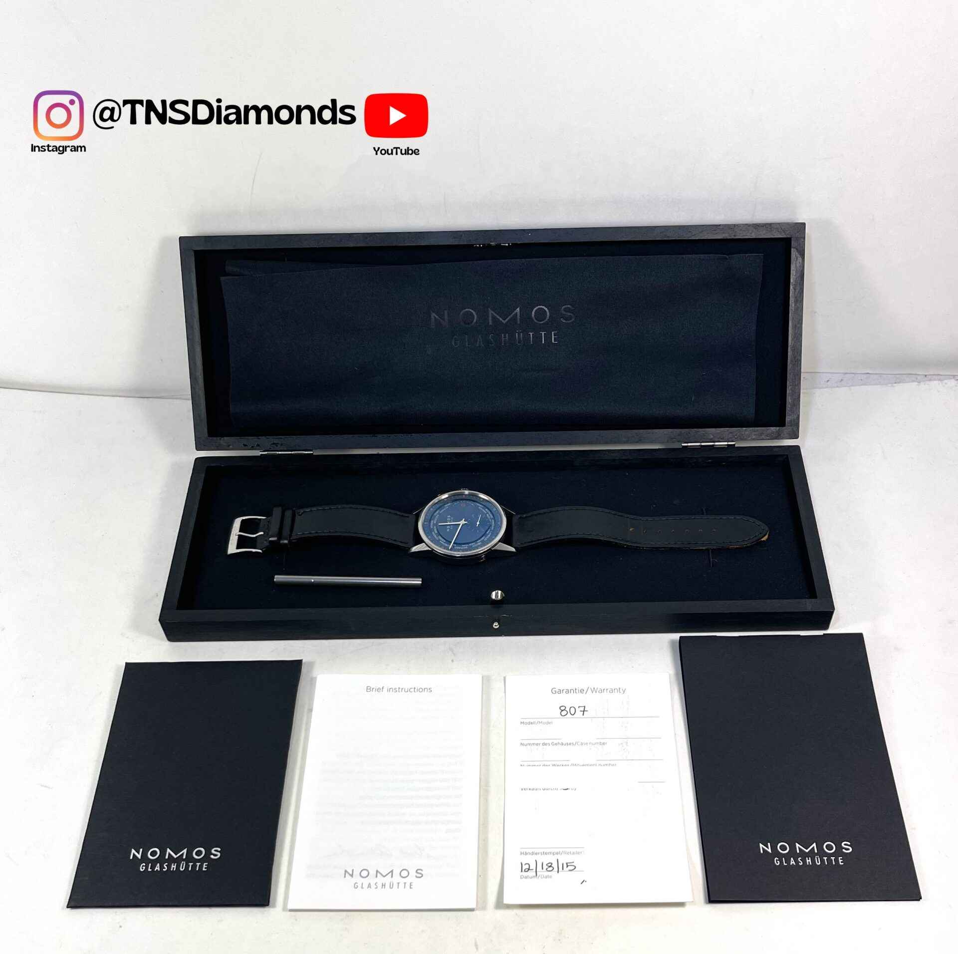Read Morethis nomos watch is in excellent condition and comes with its box, papers, and warranty papers dated december 18th, 2015. The leather strap on this watch does show some signs of use from the original owner but has plenty of life left to wear. This watch is in stock and available to ship immediately!