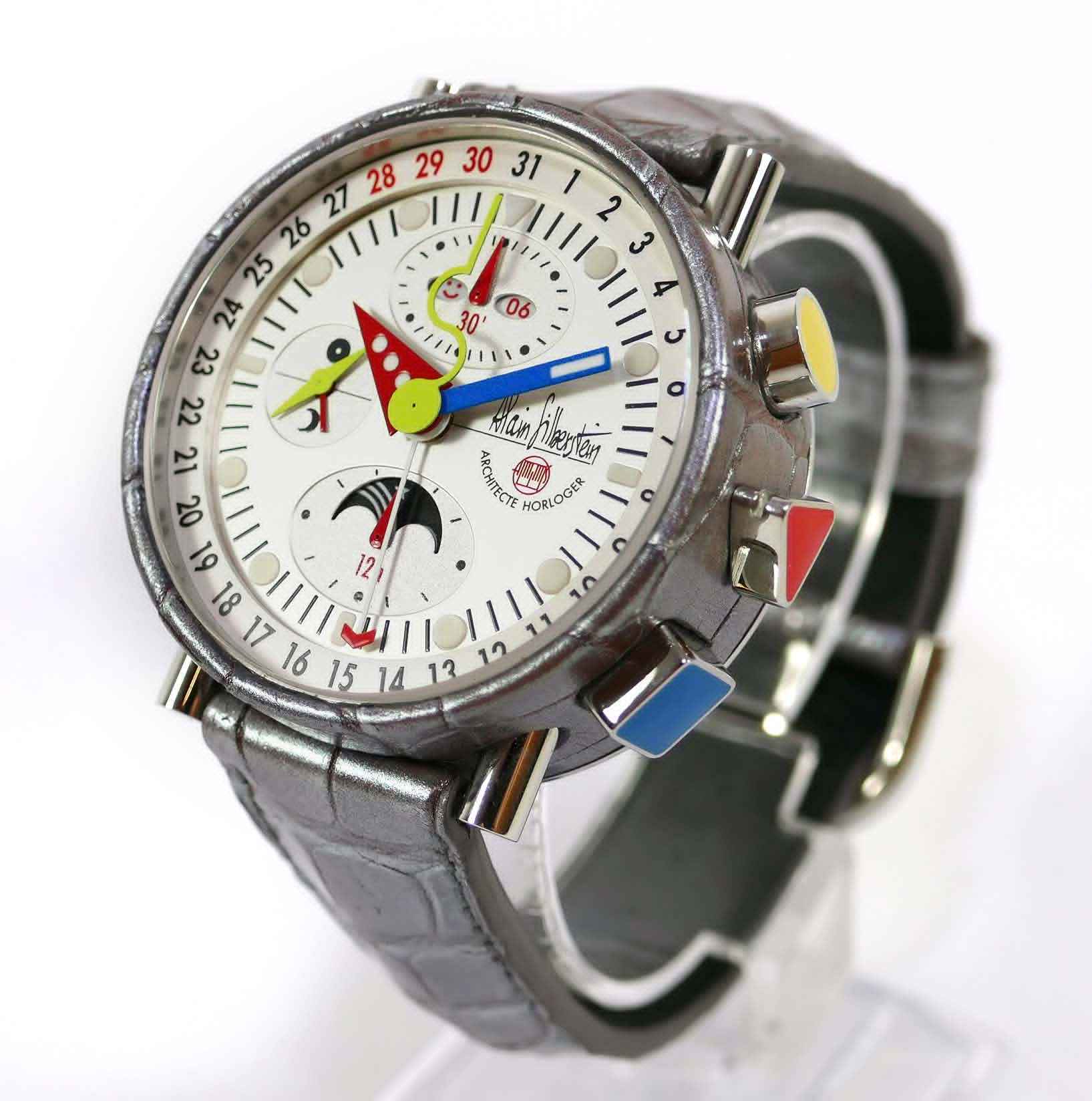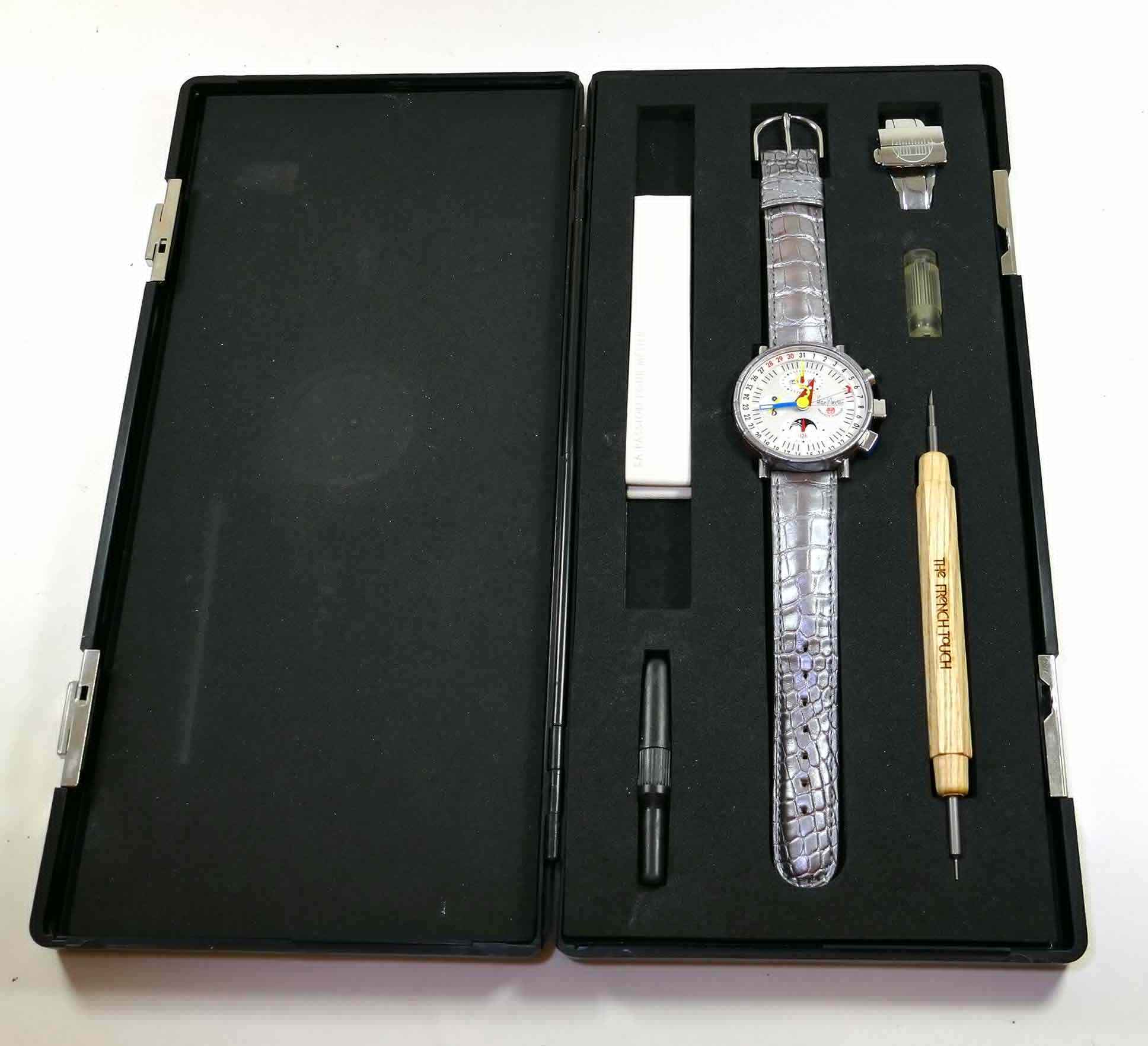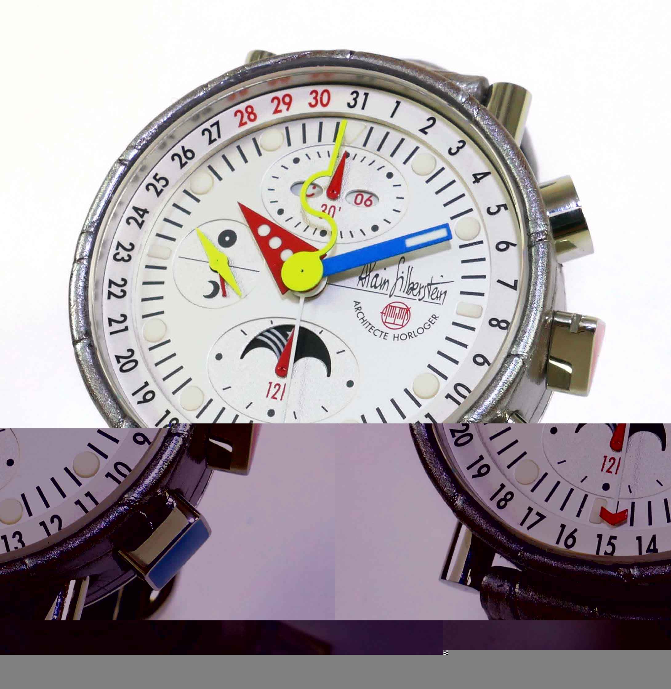 Read Morethis alain silberstein watch is a very rare and special piece. It is in unworn/new condition. It comes with its original box, extra white strap, winding tool, strap tool, and deployant clasp. The original warranty certificate is not included. This is number 222/999, quite a lucky number!