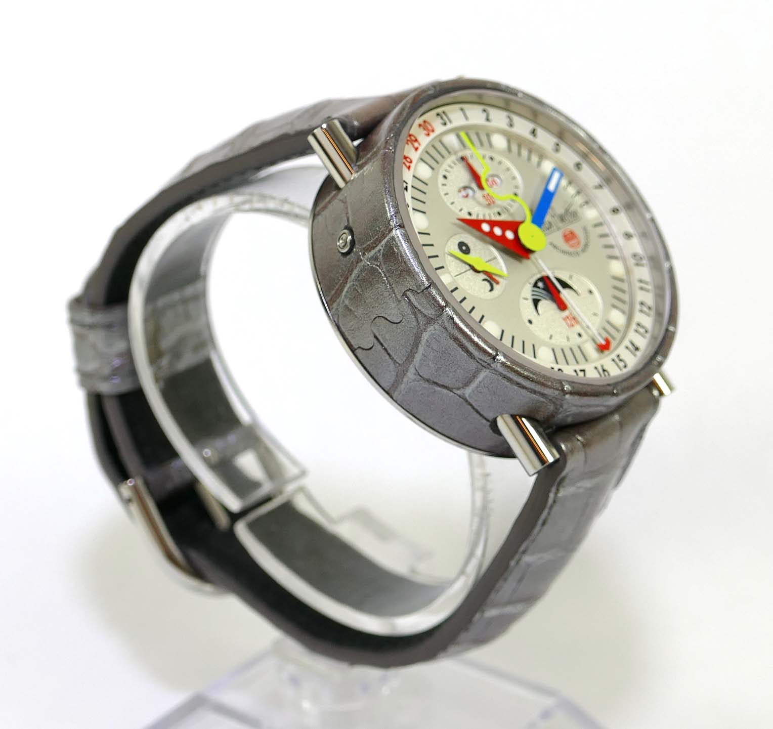 This Alain Silberstein watch is a very rare and special piece. It is in unworn/new condition. It comes with its original box, extra white strap, winding tool, strap tool, and deployant clasp. The original warranty ...
