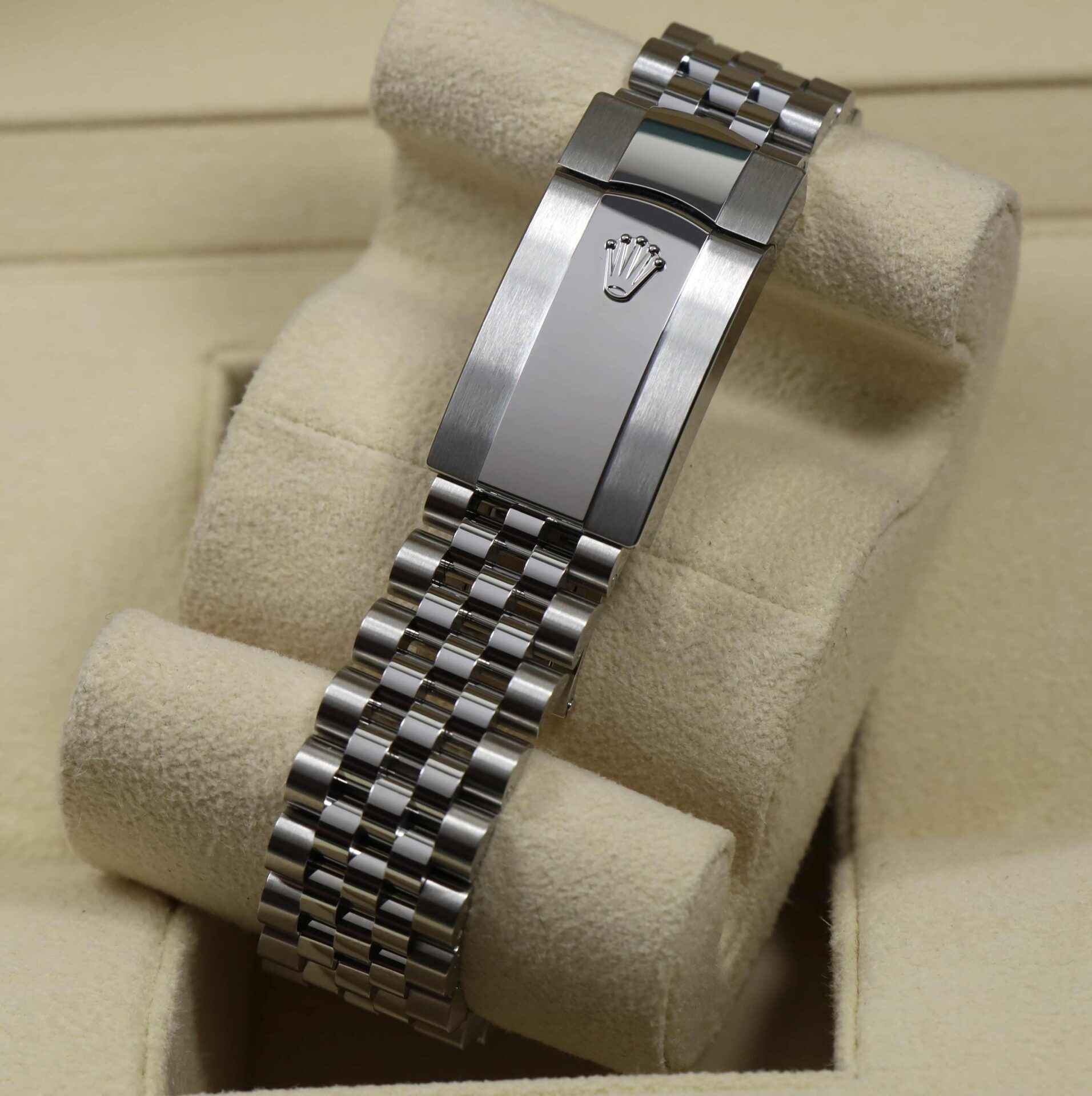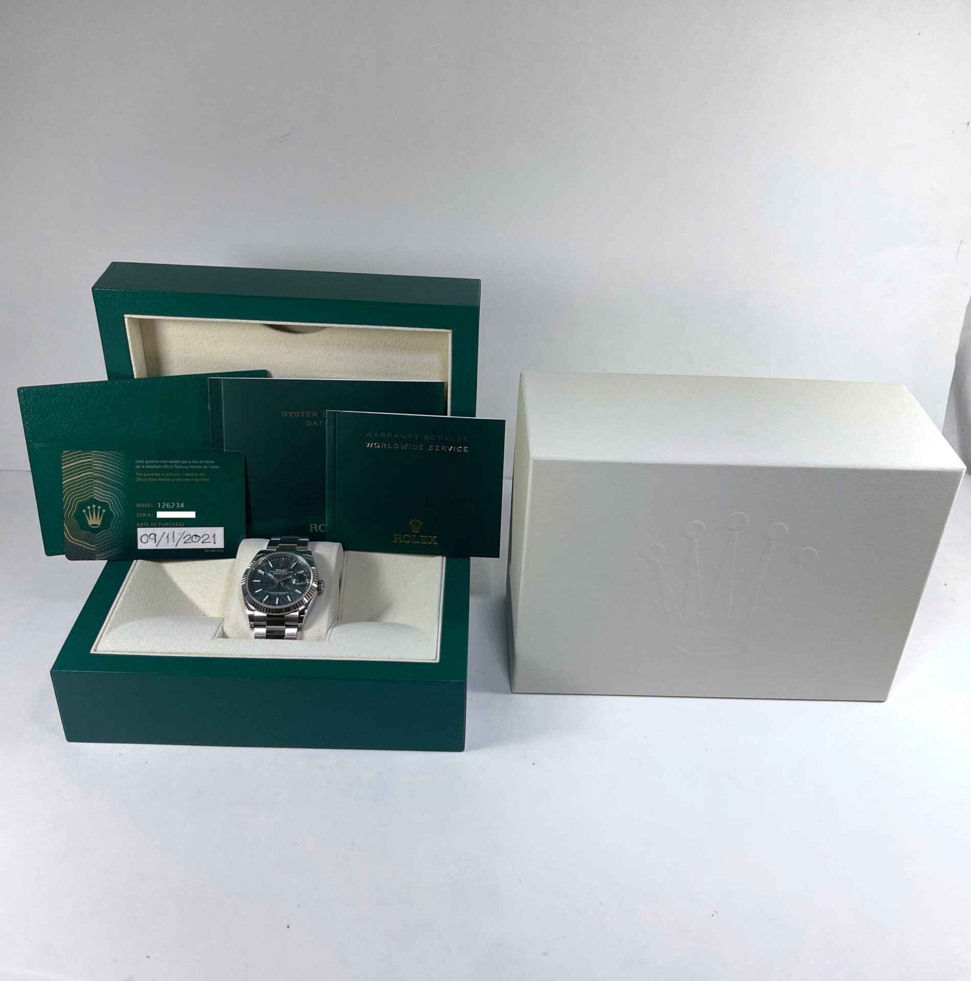 Read Morethis rolex is in excellent condition and comes with box, papers, and warranty card dated november 9th, 2021. This watch features a green motif palm dial with a stainless-steel fluted bezel on a steel oyster band. This watch is in stock and available to ship immediately!