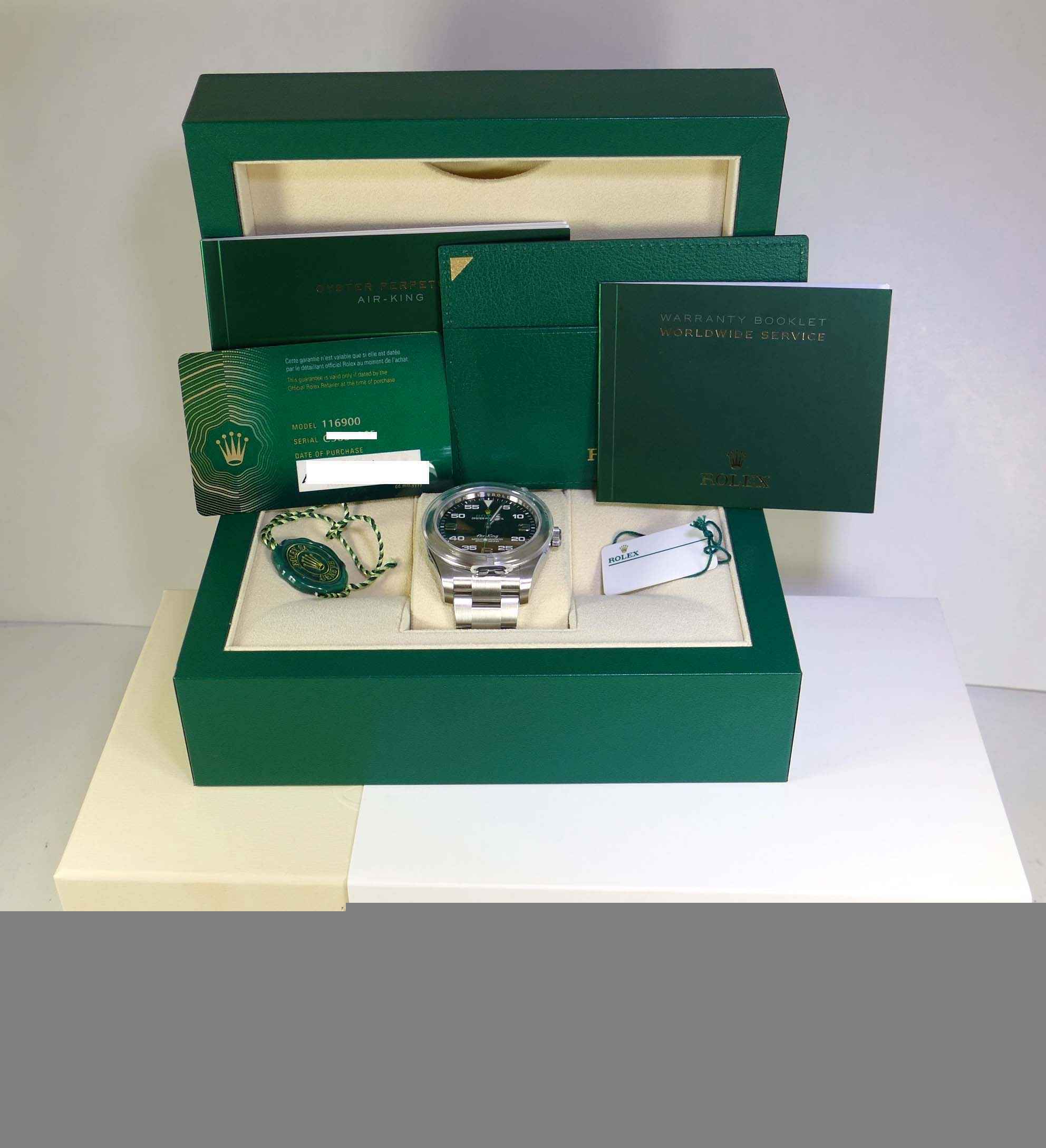 This watch is in unworn condition and comes with its box, papers, booklets, hang tags, and even bezel protector!