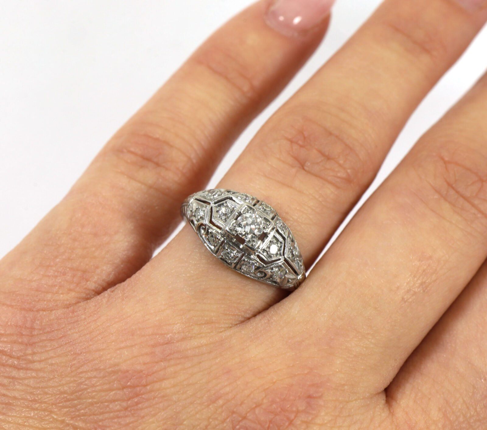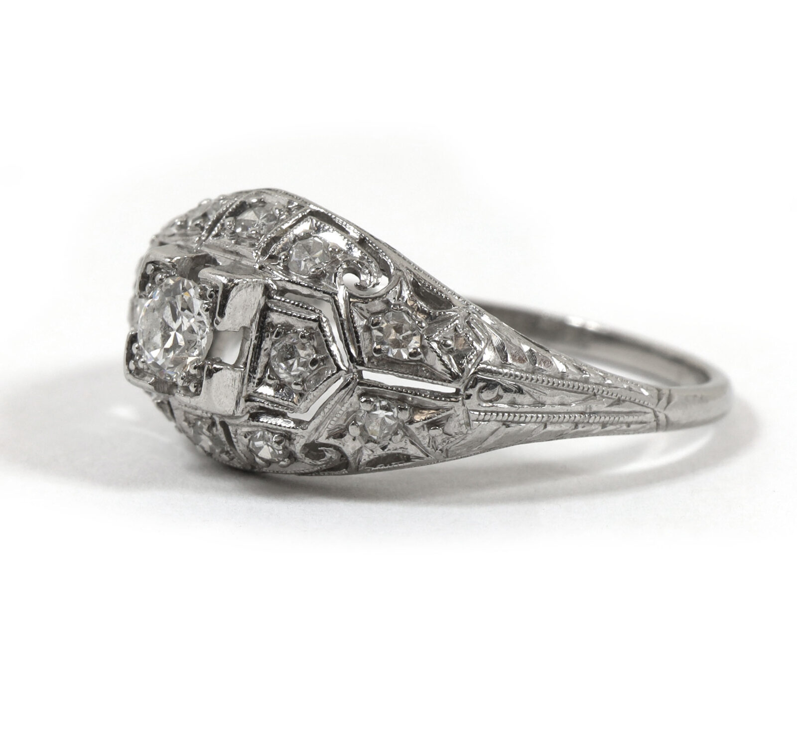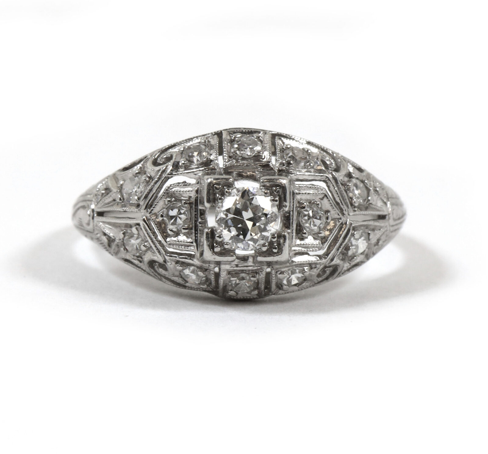 Old European Cut Diamond Platinum Vintage Antique Ring