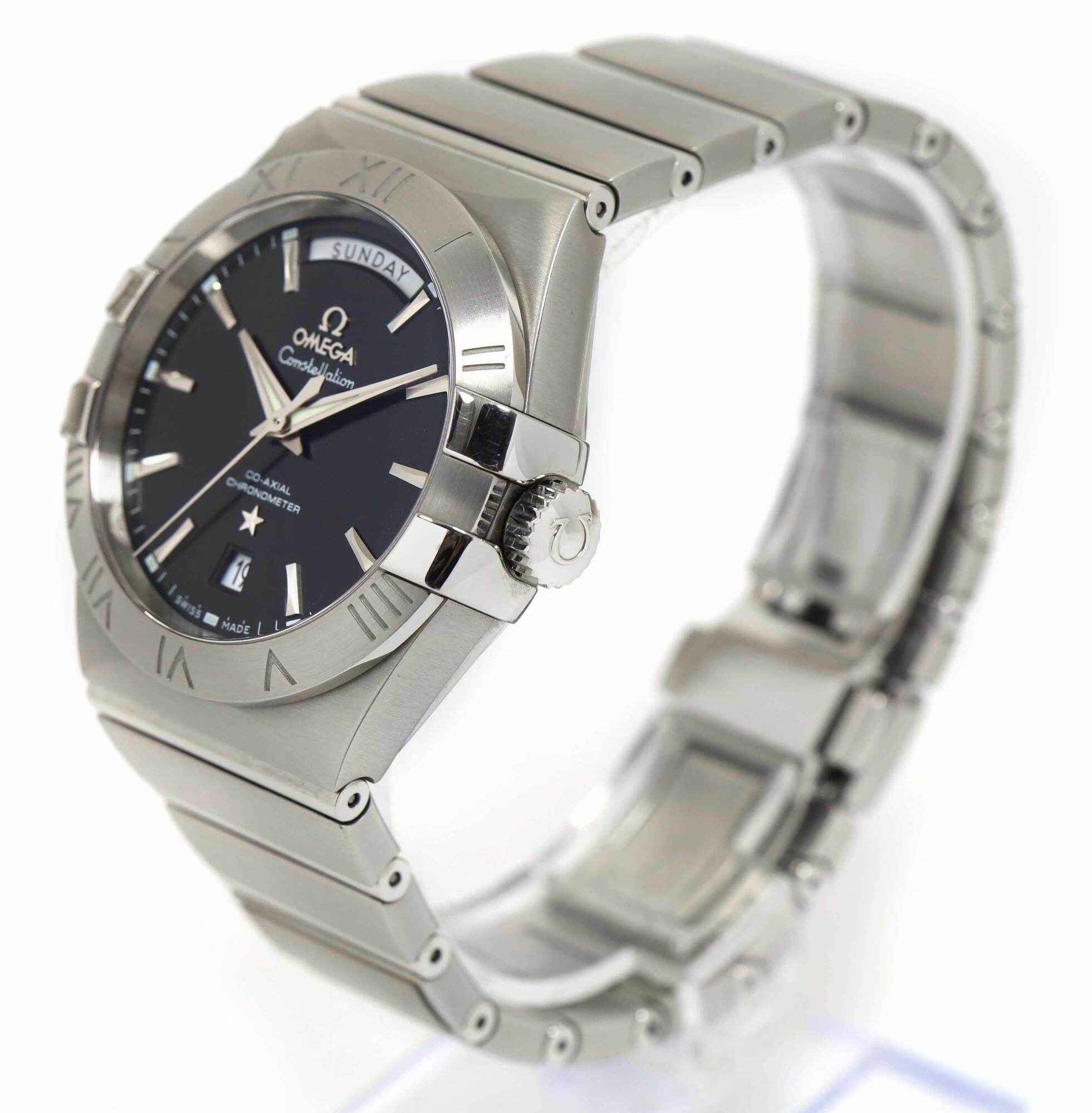 this omega is in excellent condition with some stickers on the case and comes with its box, booklet, and one additional link as shown in the pictures attached. This watch is in stock and available to ship immediately!