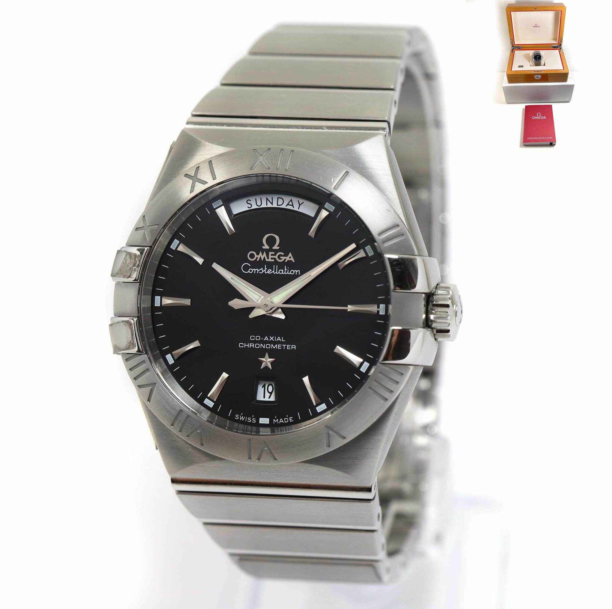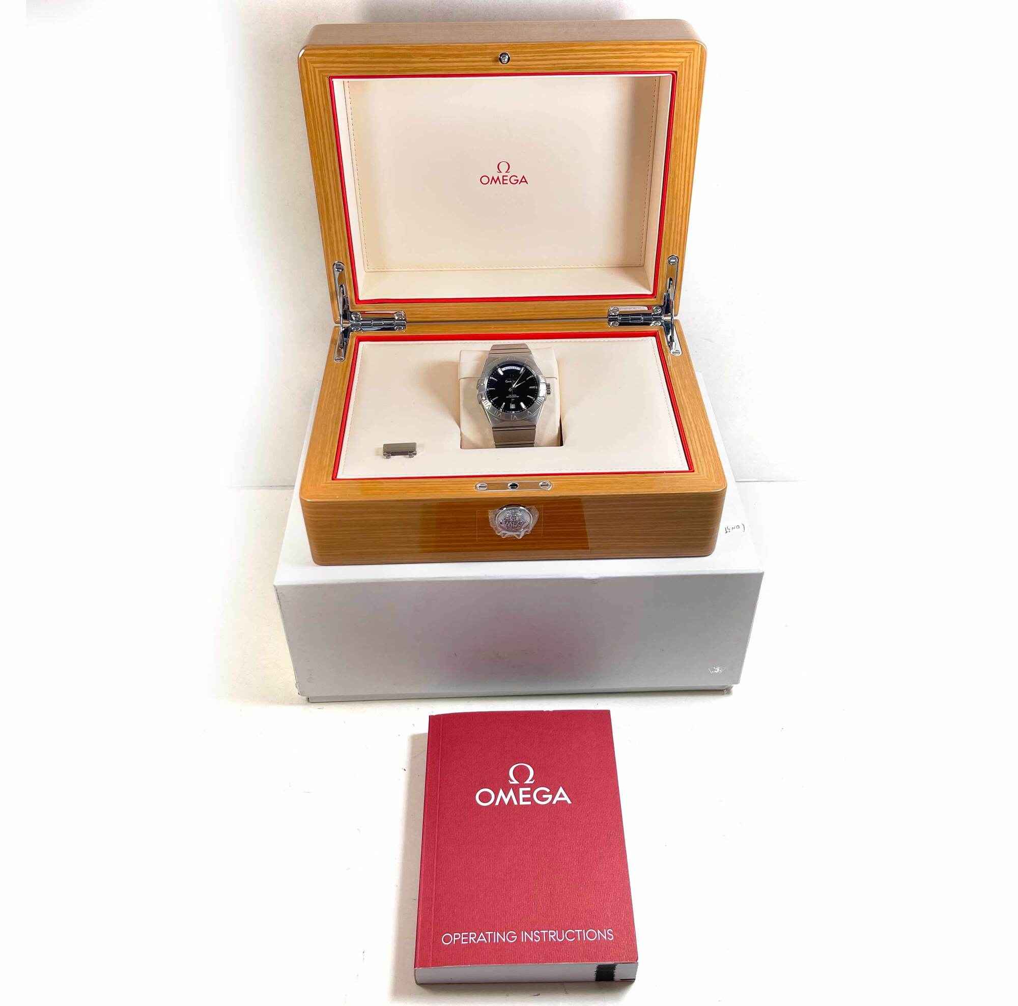 THIS OMEGA IS IN EXCELLENT CONDITION WITH SOME STICKERS ON THE CASE AND COMES WITH ITS BOX, BOOKLET, AND ONE ADDITIONAL LINK AS SHOWN IN THE PICTURES ATTACHED. THIS WATCH IS IN STOCK AND AVAILABLE TO SHIP IMMEDIATELY!