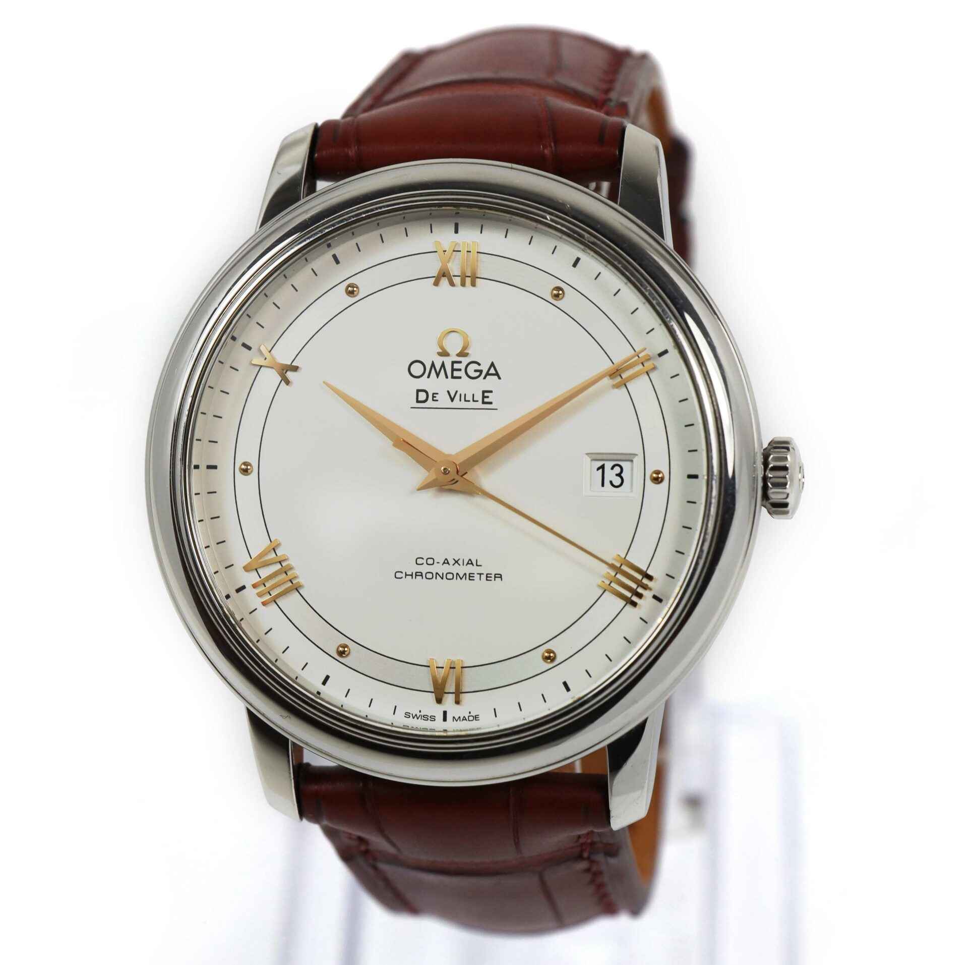 Read Morethis omega watch is in excellent overall condition and comes as watch only as shown in the pictures attached. This watch features a 39.5mm stainless steel case surrounding a silver dial and comes on a leather strap with a stainless steel tang buckle. The watch functions include hours, minutes, seconds and date. This watch is in stock and available to ship immediately!