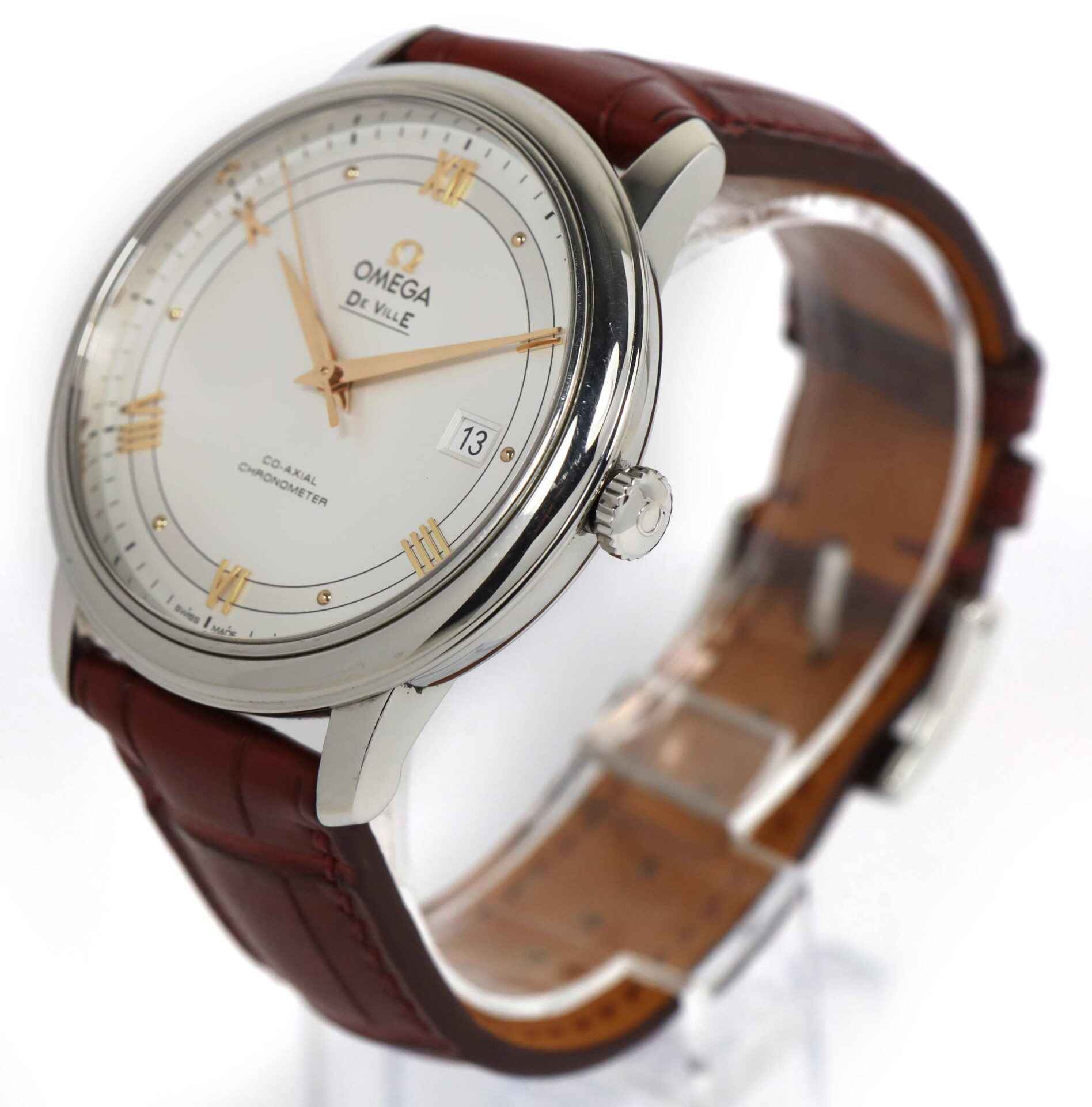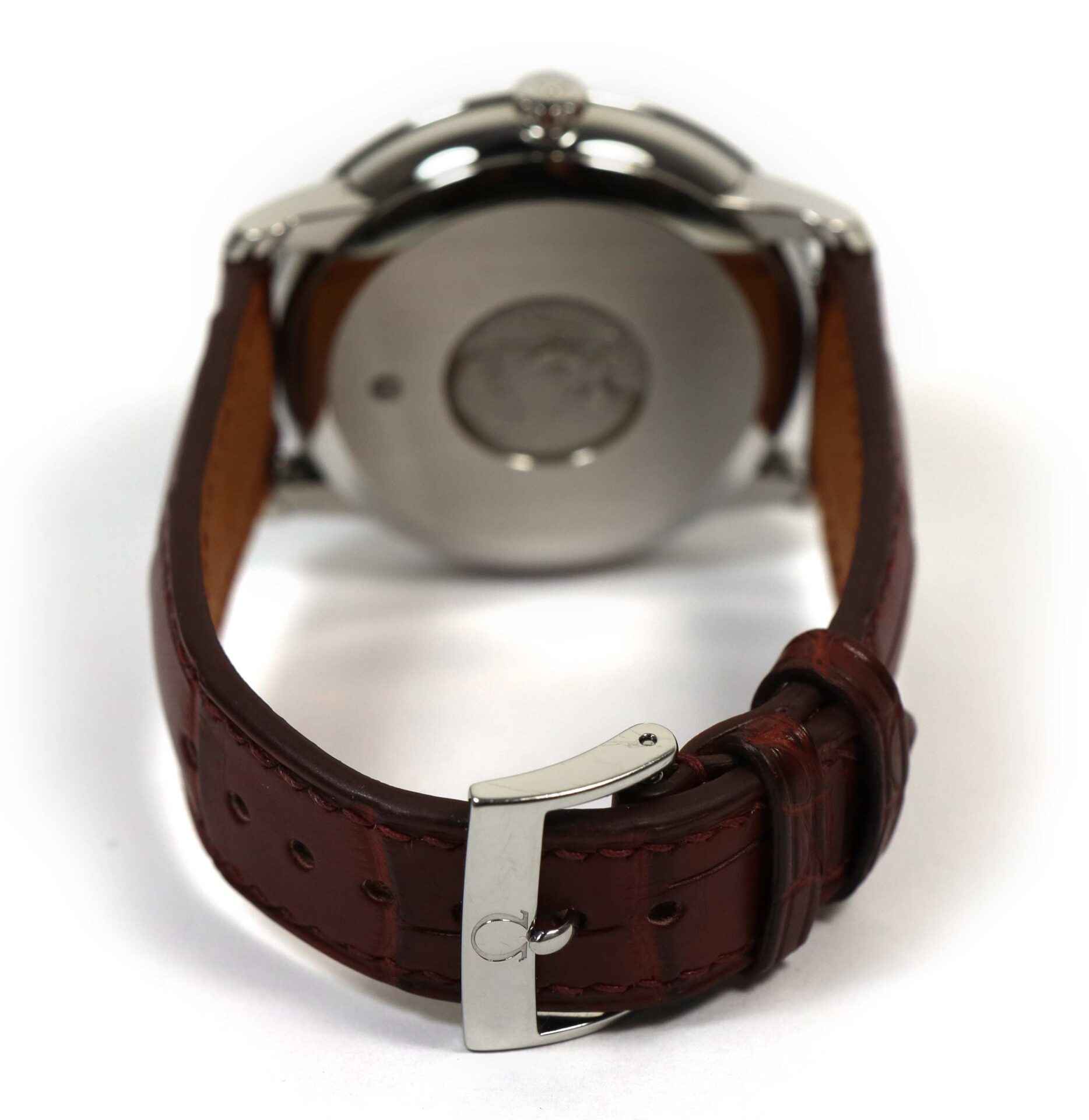 This Omega watch is in excellent overall condition and comes as watch only as shown in the pictures attached. This watch features a 39.5mm stainless steel case surrounding a silver dial and comes on a leather strap with ...