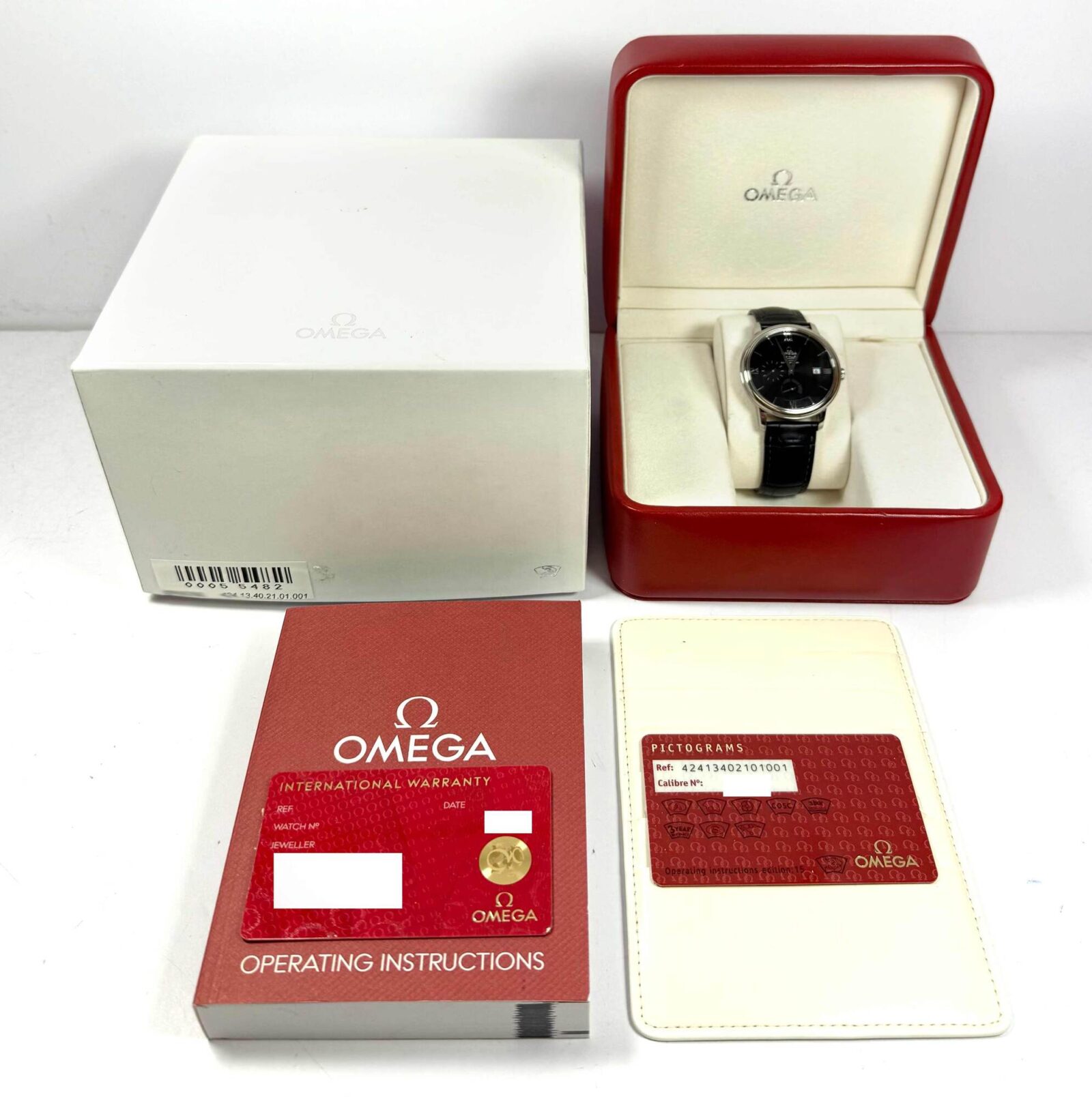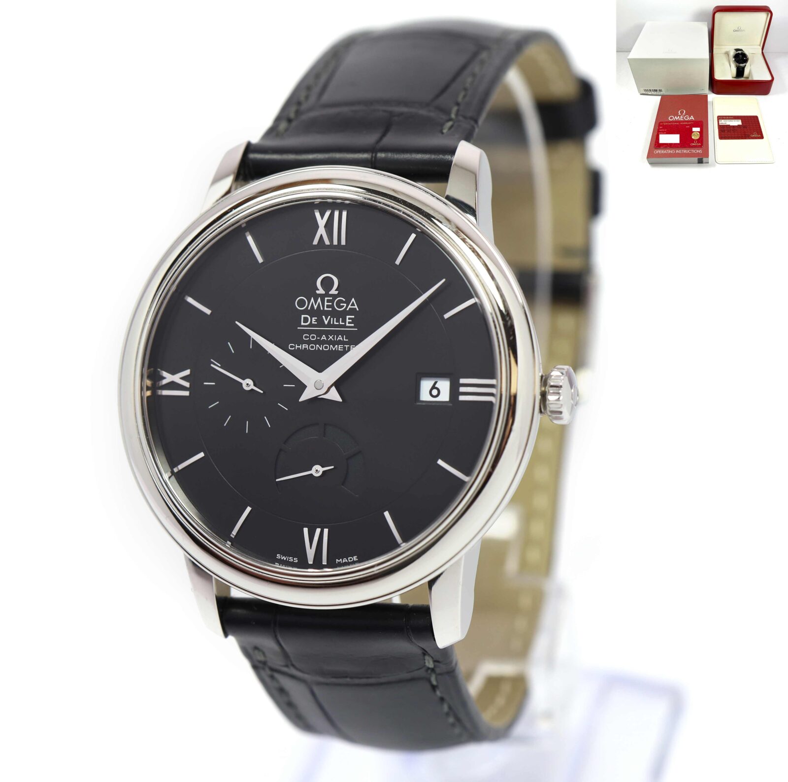 THIS OMEGA WATCH IS IN EXCELLENT OVERALL CONDITION SHOWING SOME LIGHT SURFACE WEAR CONSISTENT WITH PREOWNED WATCHES. THIS COMES WITH ITS BOX, BOOKLET, AND WARRANTY CARDS AS SHOWN IN THE PICTURES ATTACHED. THIS WATCH IS IN STOCK AND AVAILABLE TO SHIP IMMEDIA...