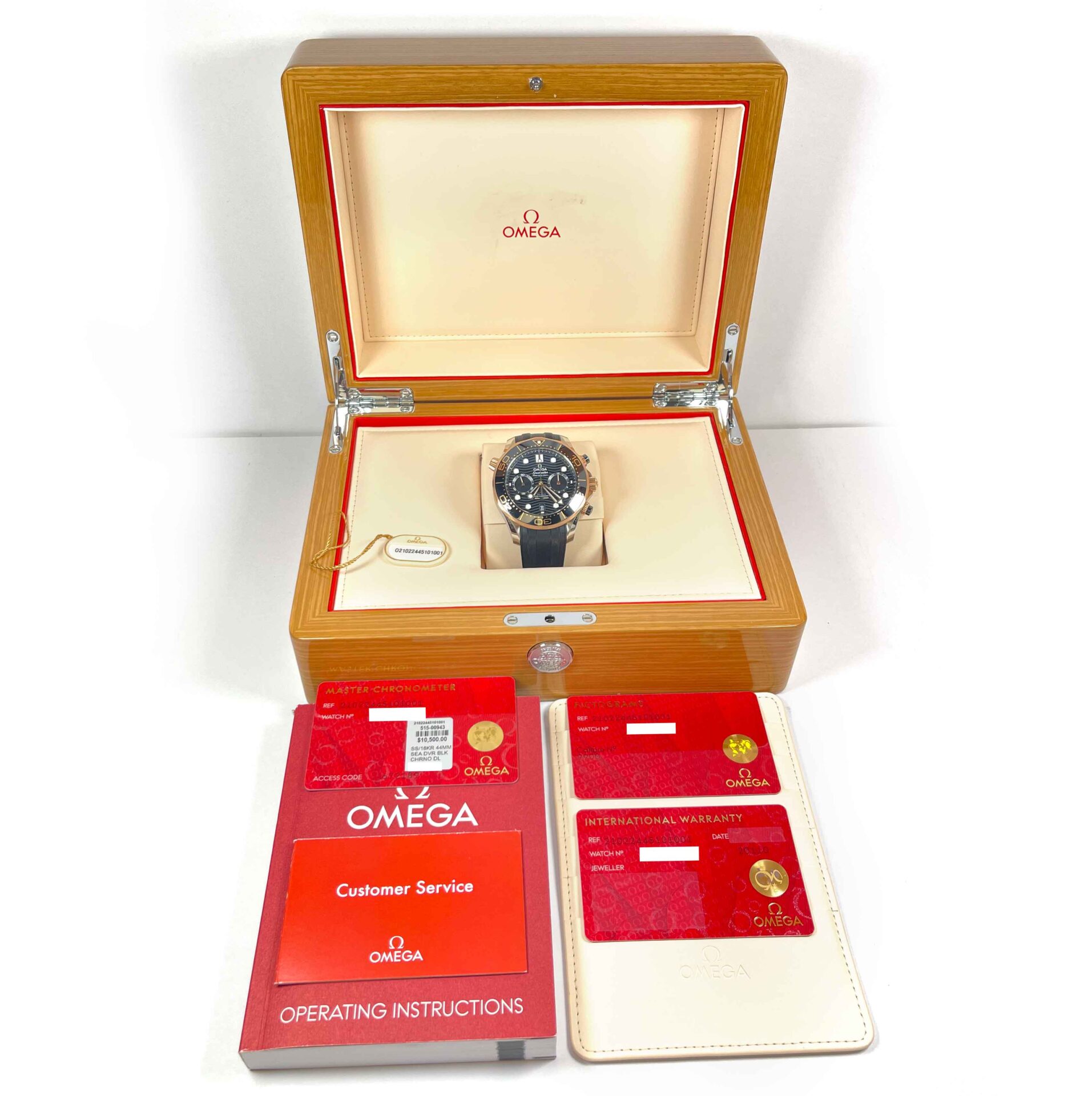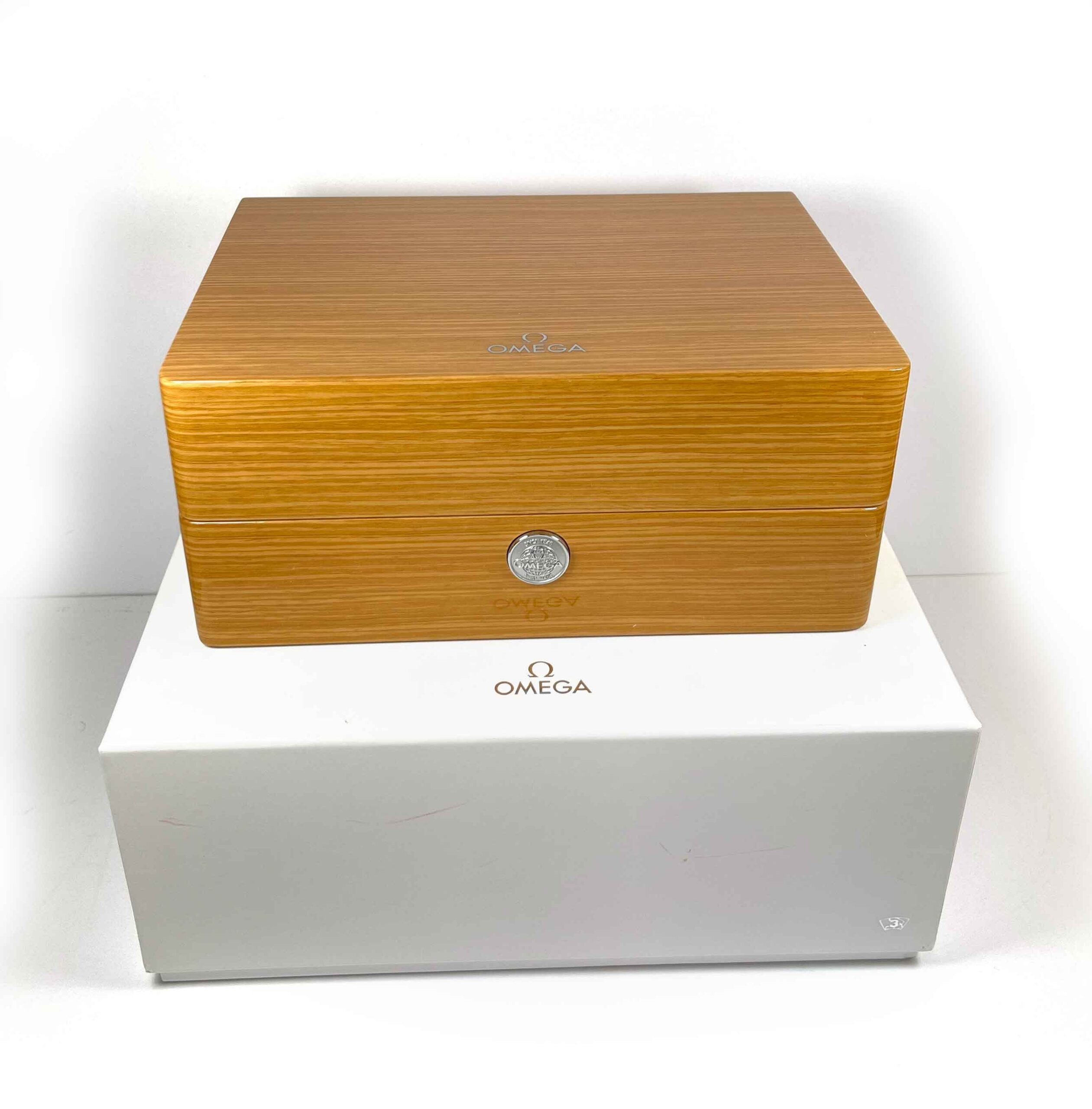 THIS OMEGA IS IN MINT UNPOLISHED CONDITION AND COMES WITH ITS BOX, BOOKLETS, HANG TAG, AND WARRANTY CARDS AS SHOWN IN THE PICTURES ATTACHED. THIS WATCH IS IN STOCK AND AVAILABLE TO SHIP IMMEDIATELY!