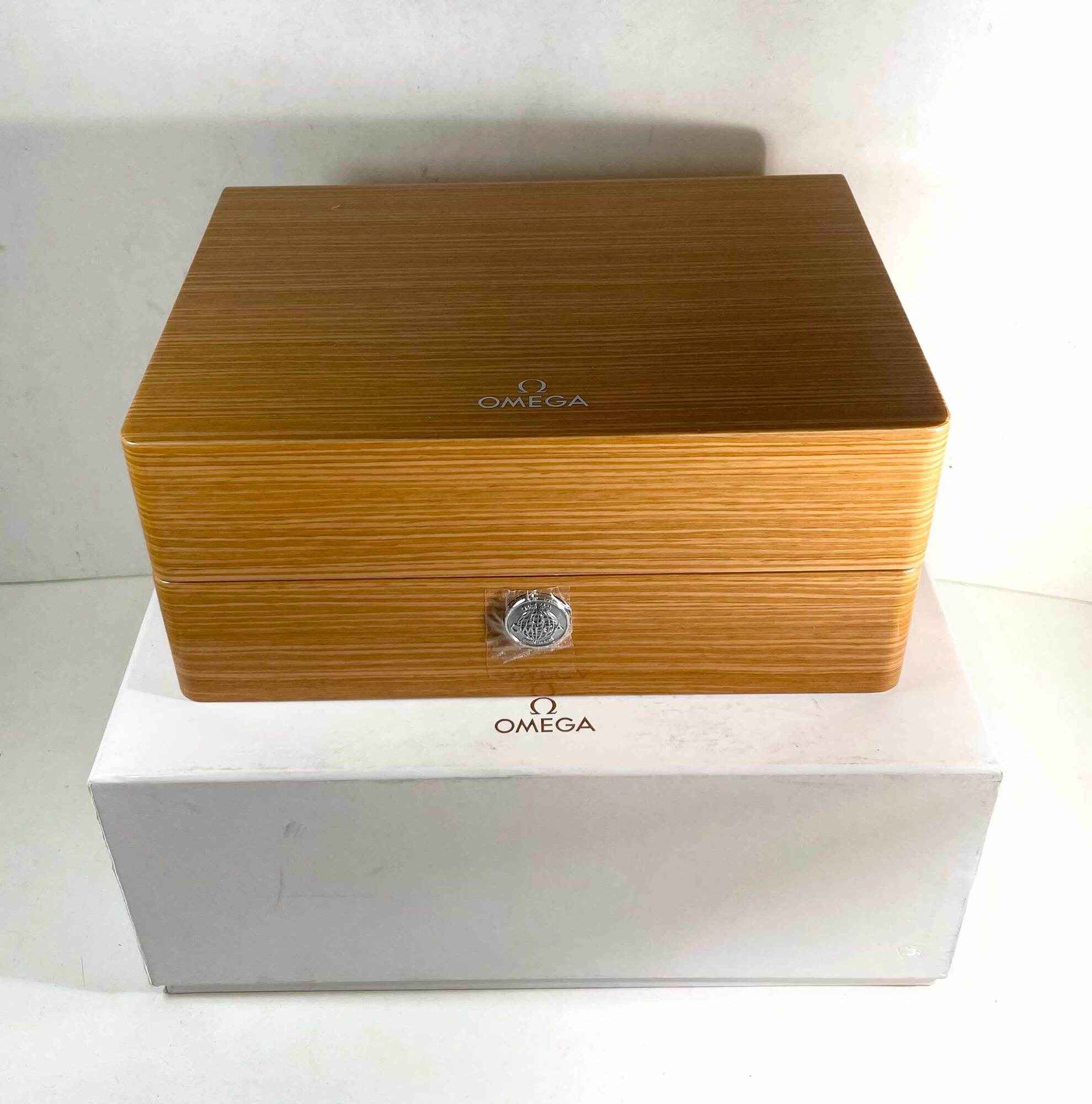 Read Morethis omega is in excellent overall condition showing some normal signs of wear on the case/bracelet consistent with preowned watches. This comes with its box, booklet, and warranty card dated september 29th, 2015 as shown in the pictures attached. This watch is in stock and available to ship immediately!