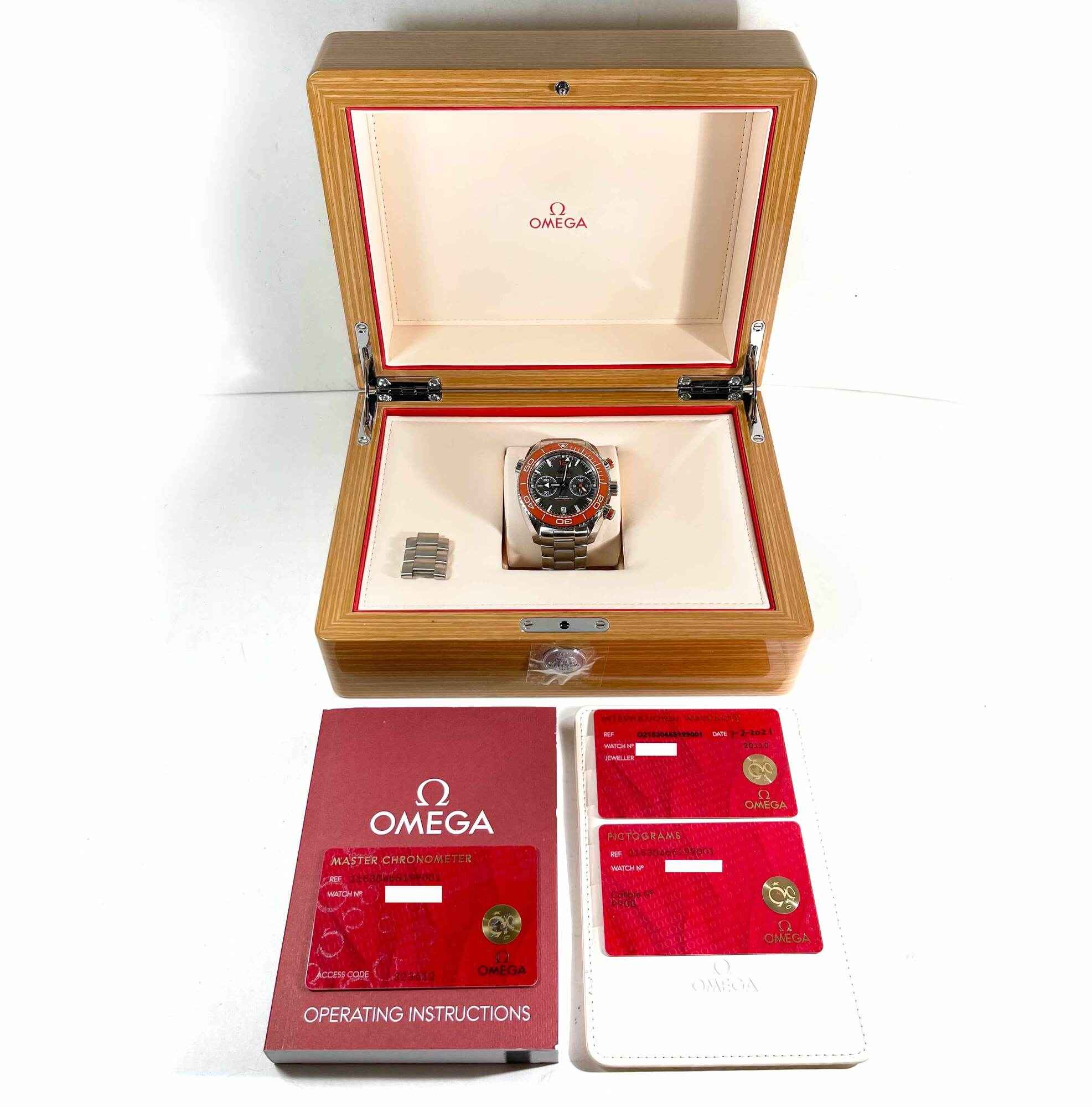 THIS OMEGA SEAMASTER IS IN EXCELLENT CONDITION AND COMES WITH ITS BOX, BOOKLETS, SPARE LINKS, AND WARRANTY CARDS DATED JULY 2ND, 2021 AS SHOWN IN THE PICTURES ATTACHED. THIS WATCH IS IN STOCK AND AVAILABLE TO SHIP IMMEDIATELY!