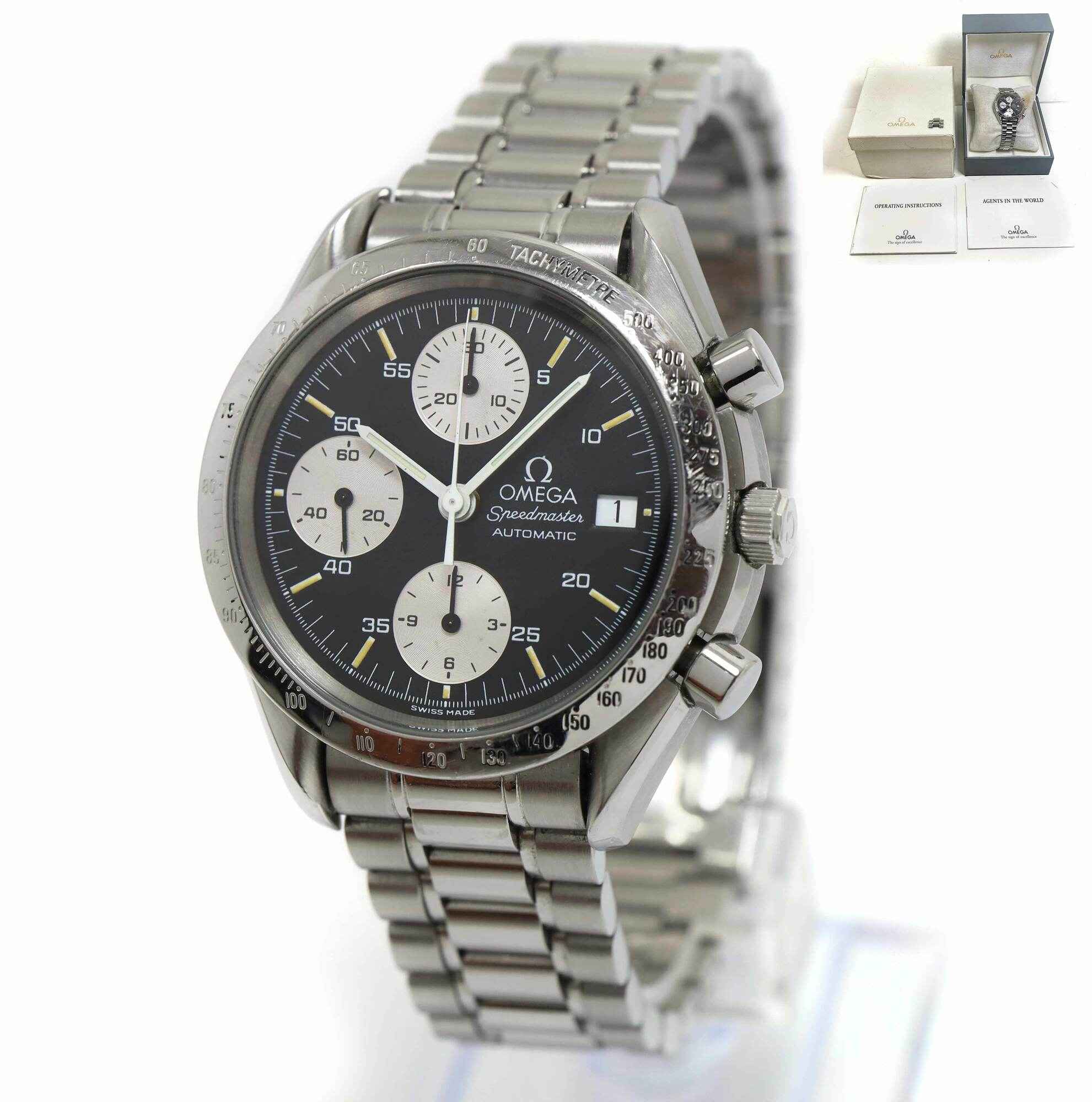 THIS OMEGA SPEEDMASTER IS IN GOOD OVERALL CONDITION SHOWING SIGNS OF WEAR ON THE CASE/BRACELET CONSISTENT WITH PREOWNED WATCHES. THIS COMES WITH ITS BOX AND BOOKLETS AS SHOWN IN THE PICTURES ATTACHED. THIS WATCH IS IN STOCK AND AVAILABLE TO SHIP IMMEDIATELY...