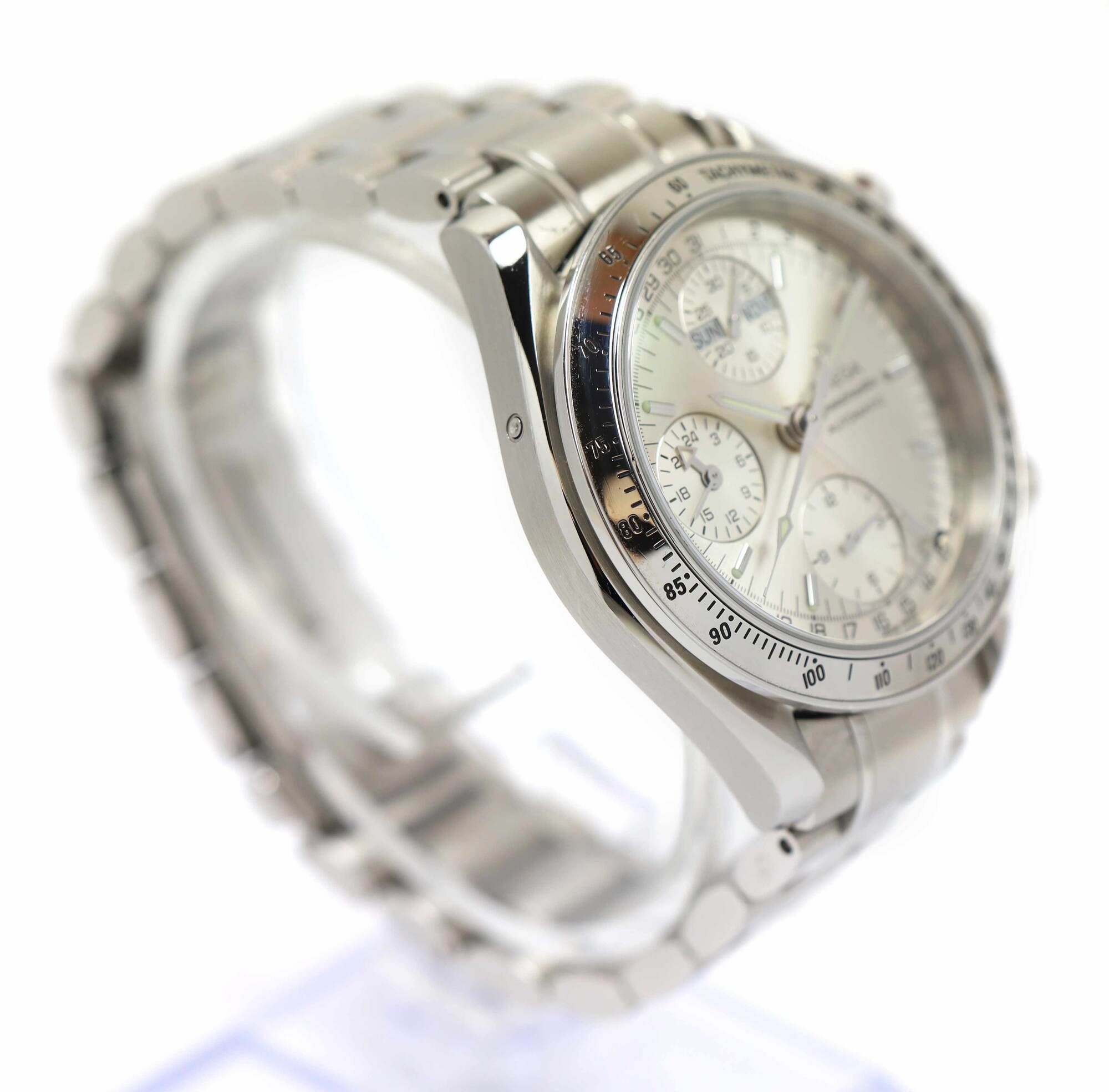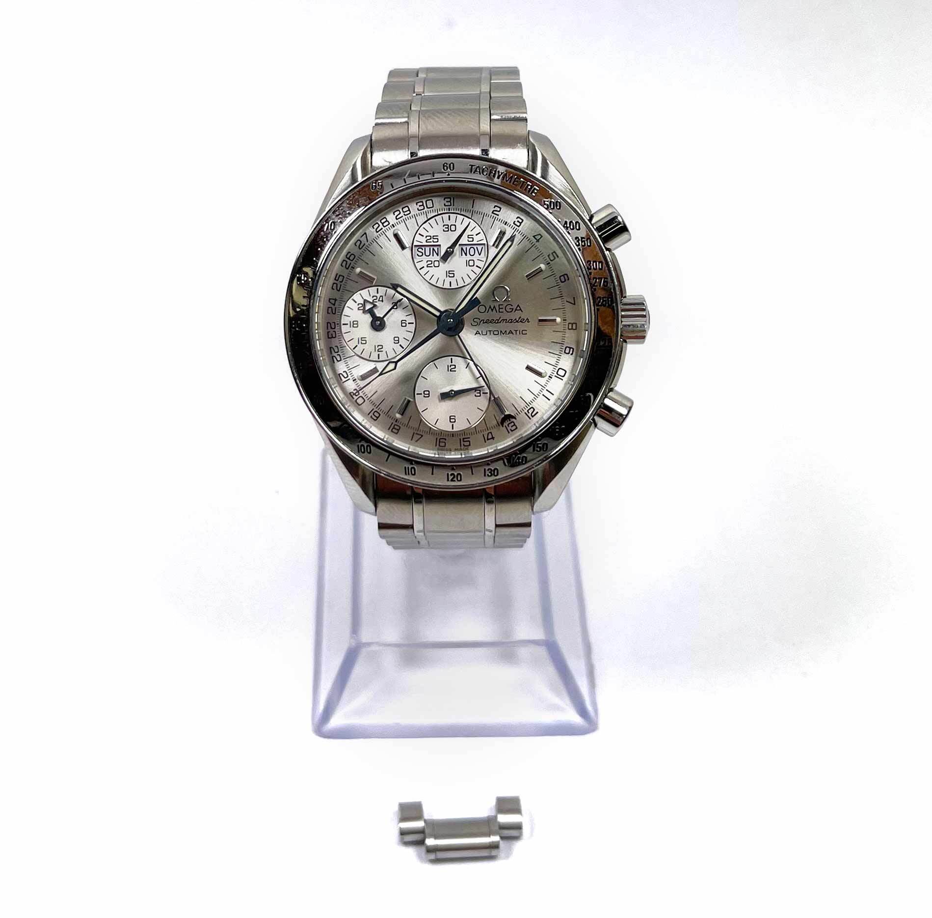 THIS OMEGA IS IN GREAT OVERALL CONDITION SHOWING SIGNS OF WEAR ON THE CASE AND BRACELET CONSISTENT WITH PREOWNED WATCHES. THIS COMES AS WATCH ONLY WITH ONE SPARE LINK AS SHOWN IN THE PICTURES ATTACHED. THIS WATCH IS IN STOCK AND AVAILABLE TO SHIP IMMEDIATEL...