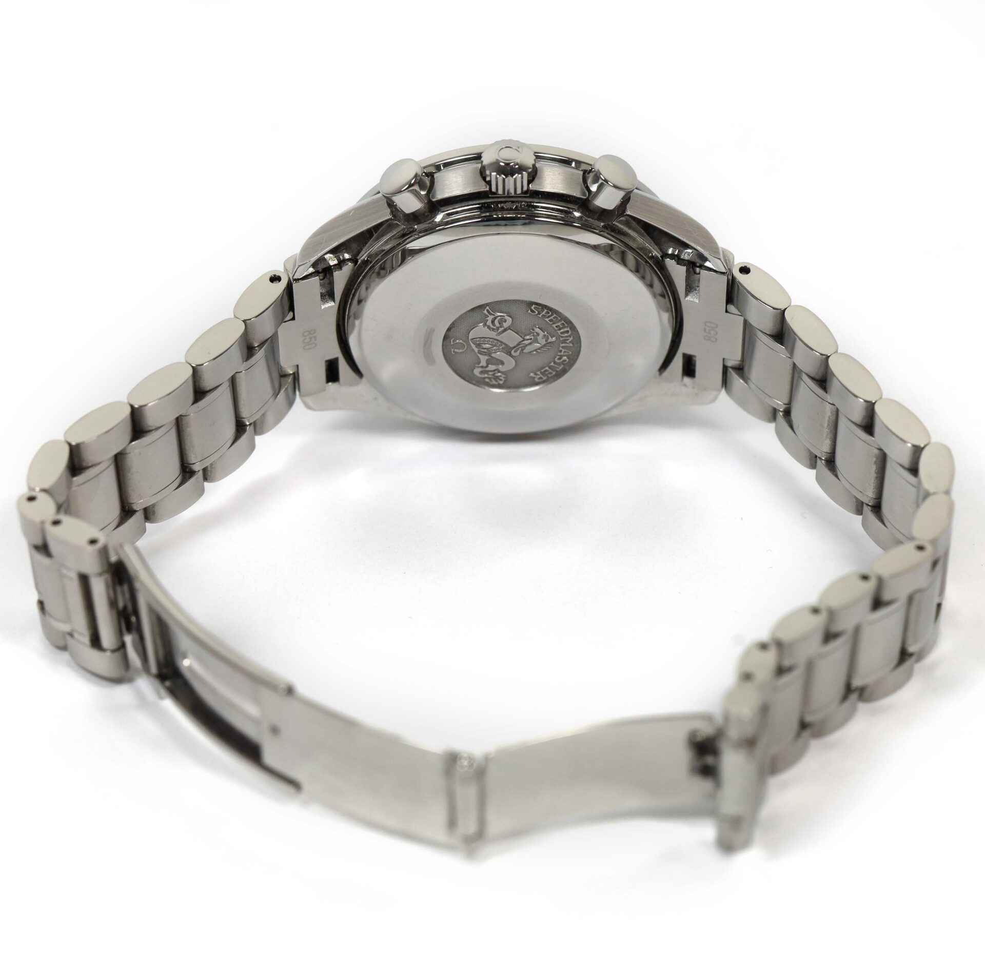 This Omega Speedmaster is in excellent condition showing some normal surface wear consistent with pre-owned watches. This set comes with its box, papers, hang tag, spare link, and warranty card as shown in the pictures a...
