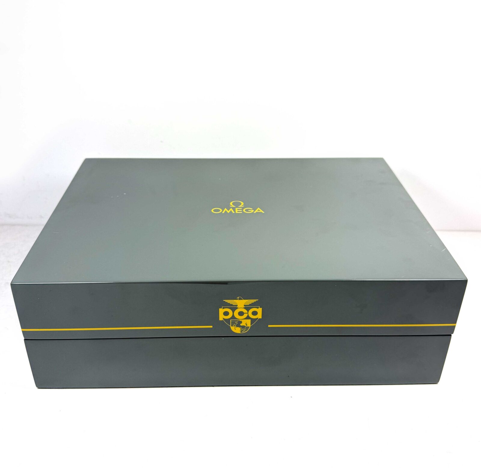 this omega is in excellent overall condition and comes with its box, booklets, hang tag, and warranty card dated december 15th, 2017 as shown in the pictures attached. This watch is part of a very limited edition of only 99 total pieces produced for the porsche club of america. This watch is in stock and available to ship immediately!