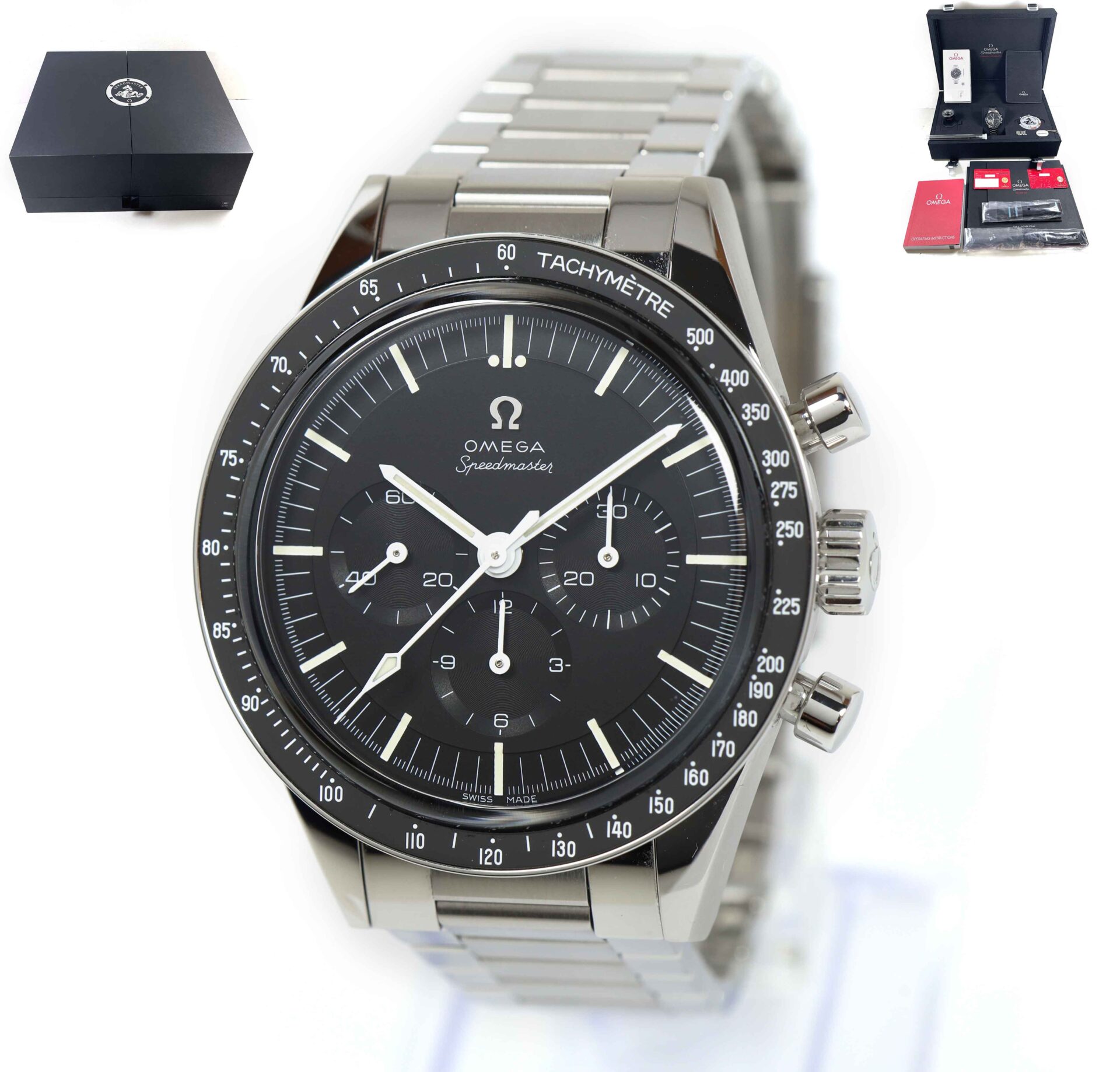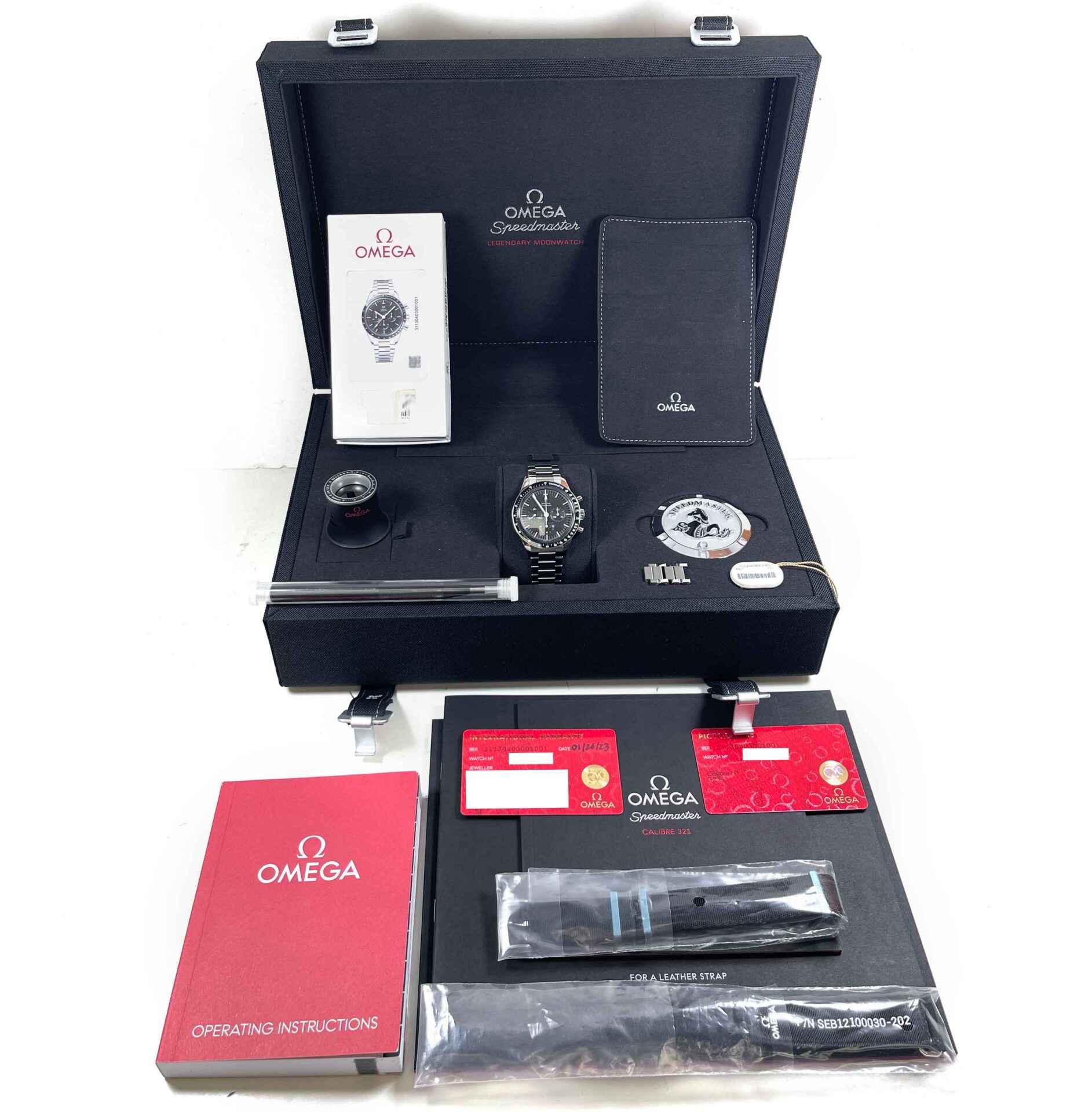 THIS OMEGA SPEEDMASTER WATCH IS LNIB AND COMES WITH ITS BOX, BOOKLETS, OMEGA BRANDED LOUPE, OMEGA TOOL, SPARE LINKS, 2 ADDITIONAL OMEGA STRAPS, HANG TAG, AND WARRANTY CARD DATED JANUARY 26TH, 2023 AS SHOWN IN THE PICTURES ATTACHED. THIS WATCH IS IN STOCK AN...