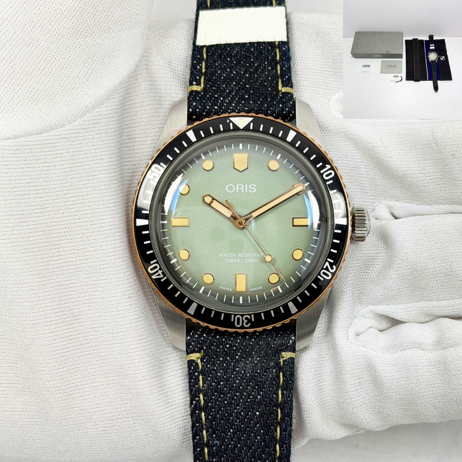 This Oris watch comes with its box, hangtag, and warranty card. The photos shown are of the exact watch being sold and accurately represent its condition. This watch is in stock and ready to ship immediately!