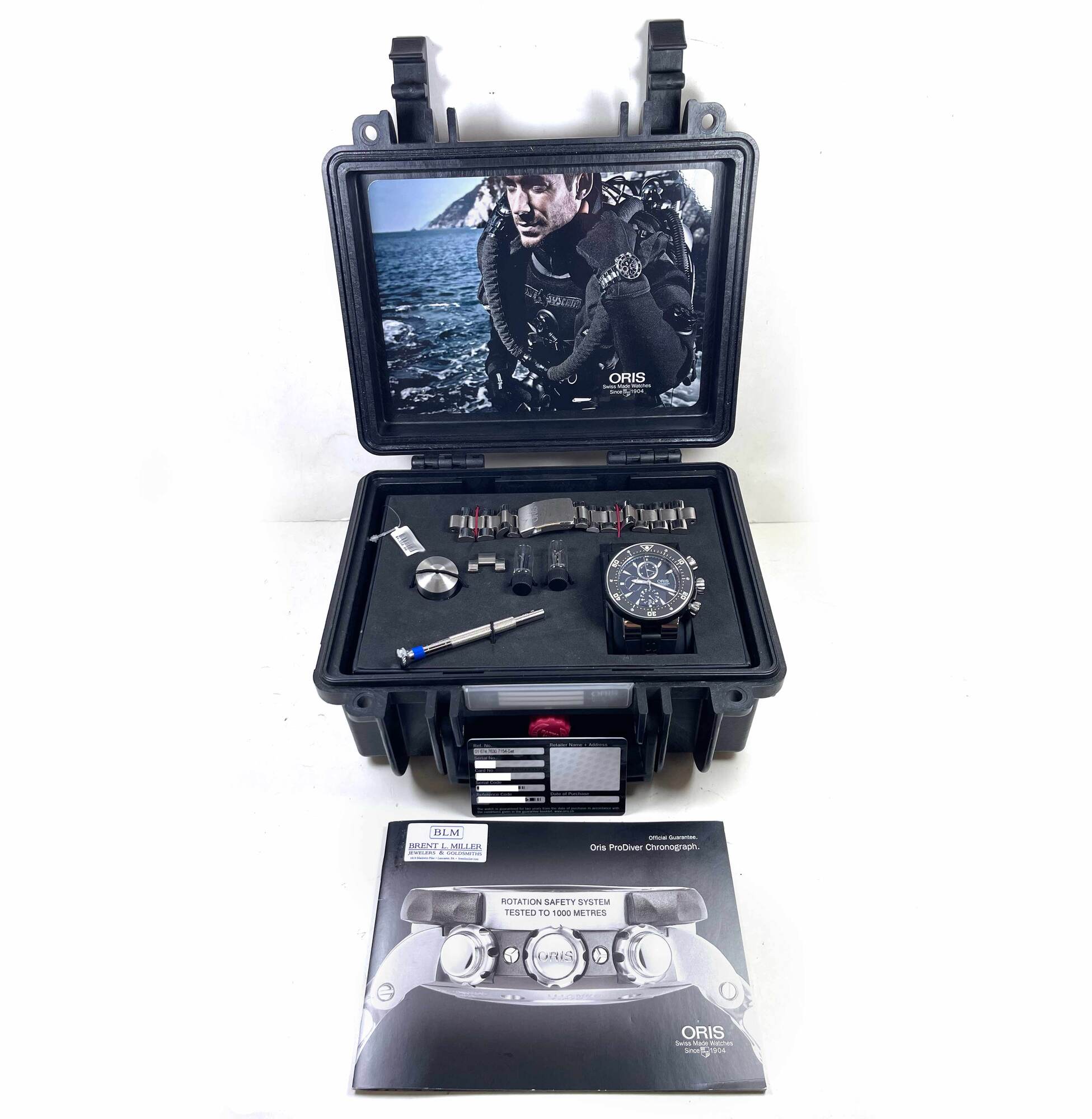 THIS ORIS WATCH IS IN GREAT OVERALL CONDITION SHOWING SOME LIGHT SIGNS OF WEAR CONSISTENT WITH PREOWNED WATCHES. THIS COMES WITH ITS BOX, BOOKLETS, WATCH TOOLS, ONE ADDITIONAL STEEL ORIS BRACELET, AND WARRANTY CARD AS SHOWN IN THE PICTURES ATTACHED. THIS WA...