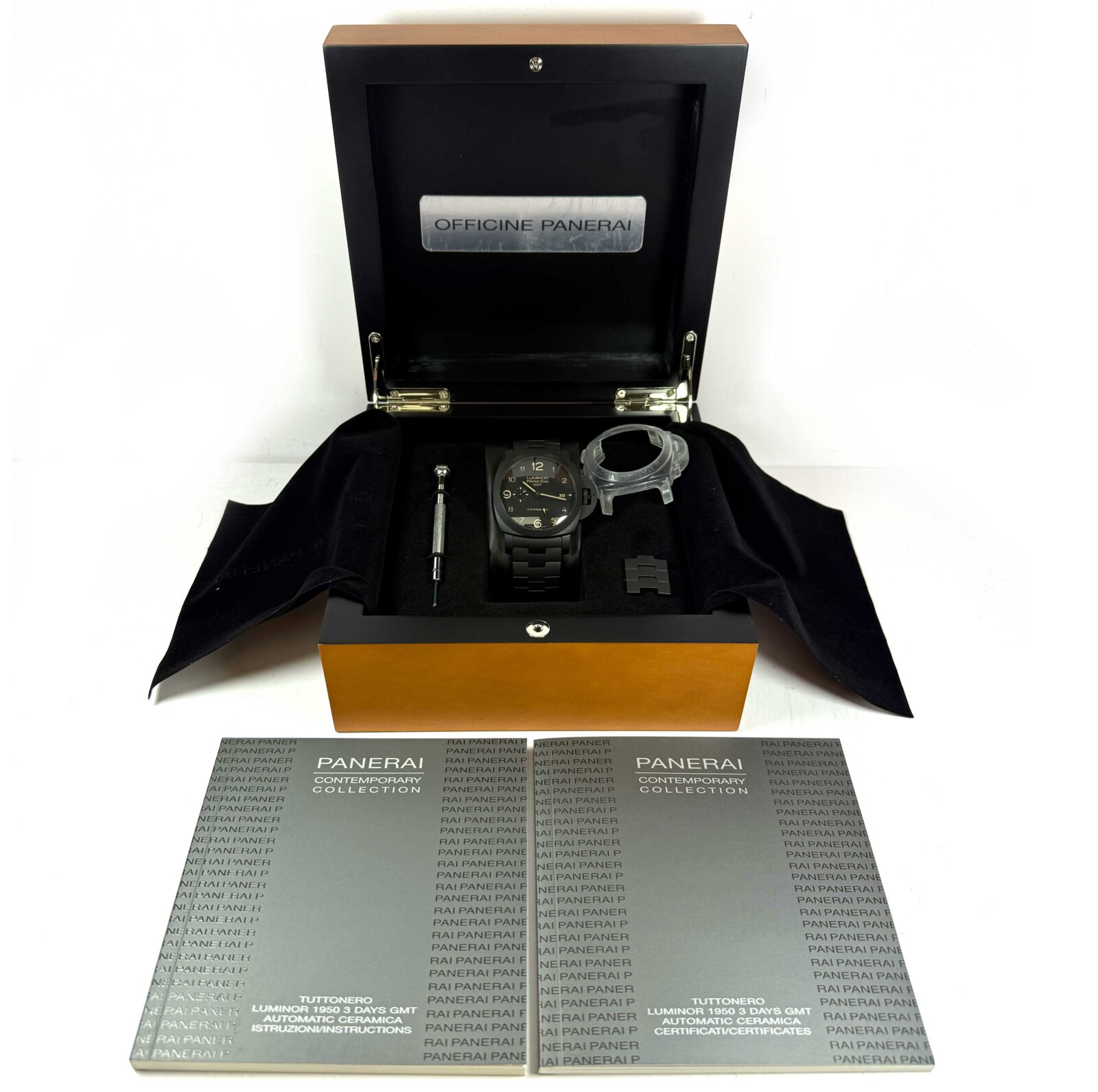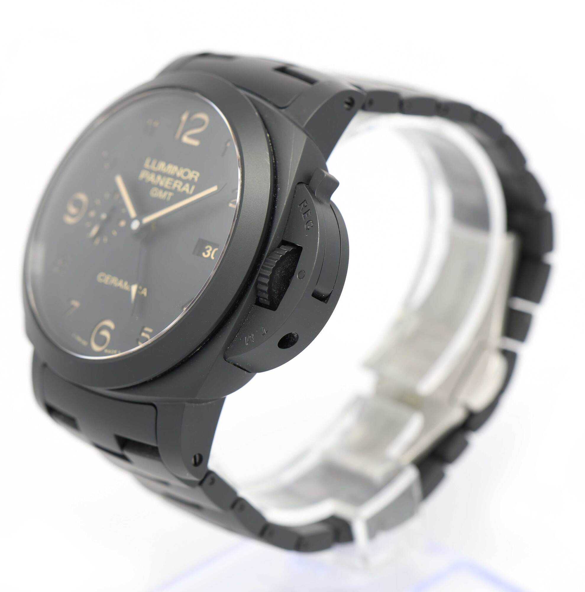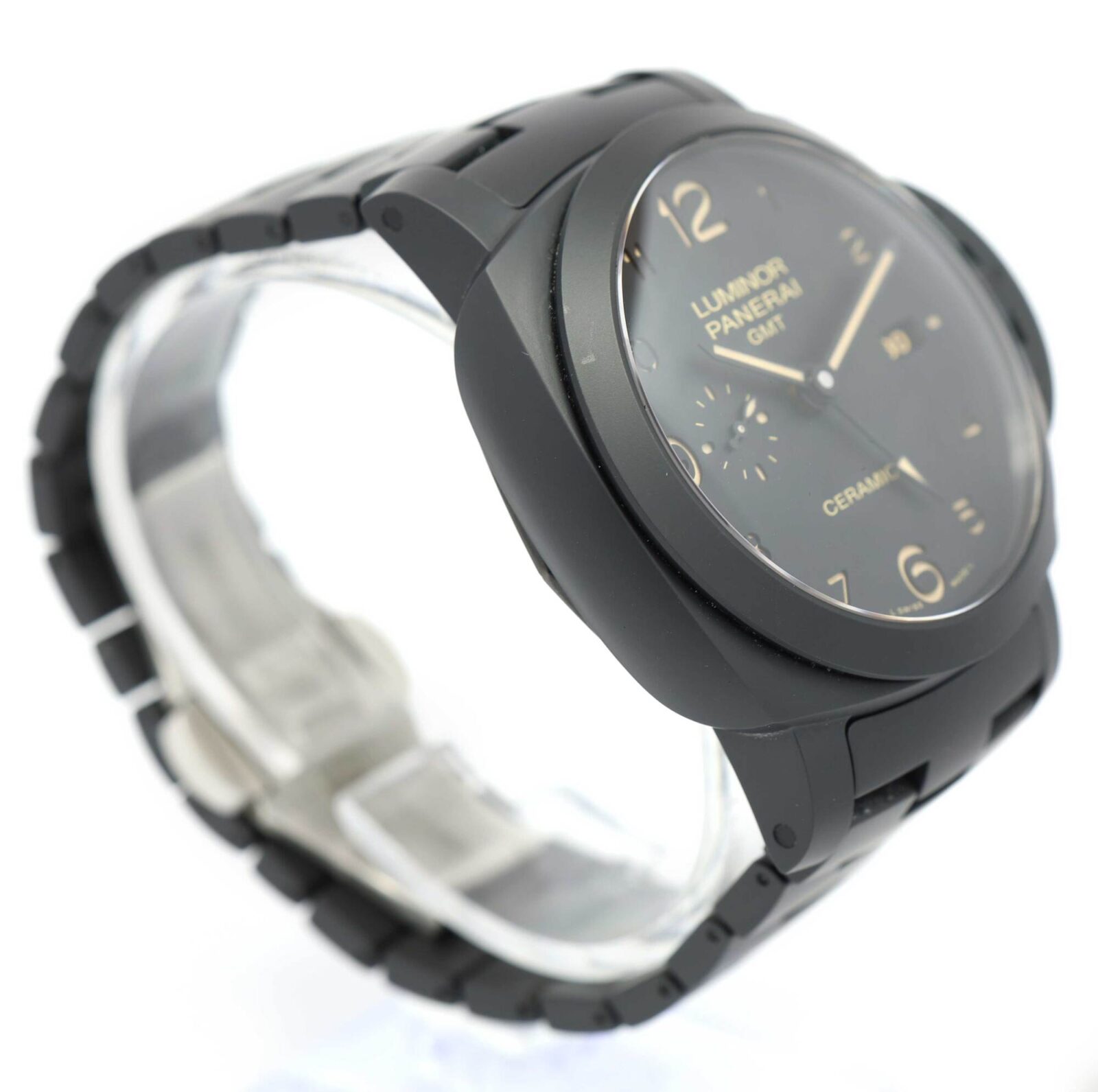 Read Morethis panerai watch is in excellent overall condition showing some signs of surface wear consistent with preowned watches. This comes with its box, booklets, spare links, panerai tool, bezel protector, and warranty paper dated november 17th, 2014 as shown in the pictures attached. This watch is in stock and available to ship immediately!